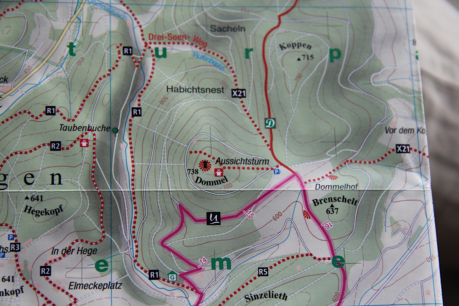 We besluiten ook vandaag een wandeling te maken. Deze keer zo’n 8 km rondom de locale heuvel met de uitdagende naam: Dommelkopf. Wel erg mooi.