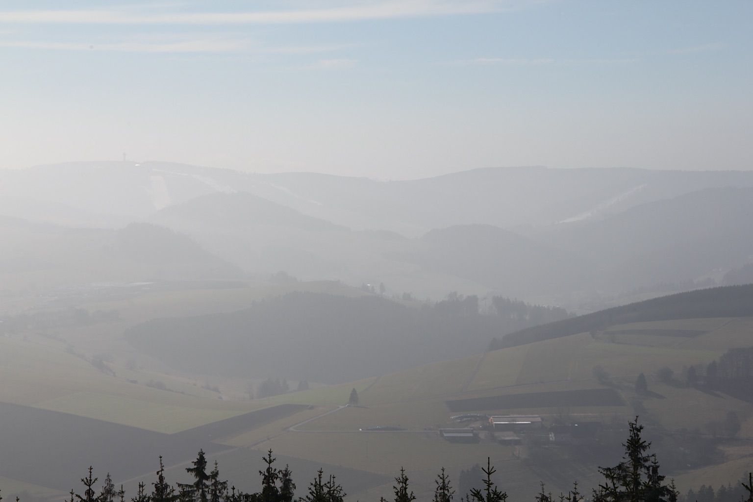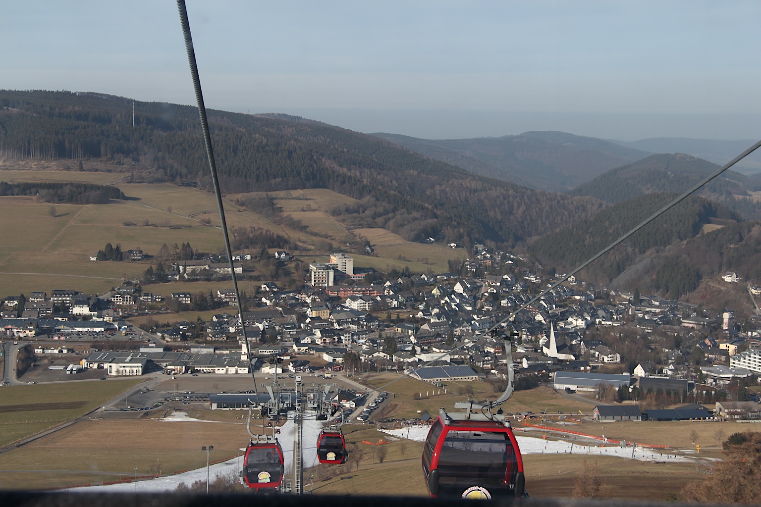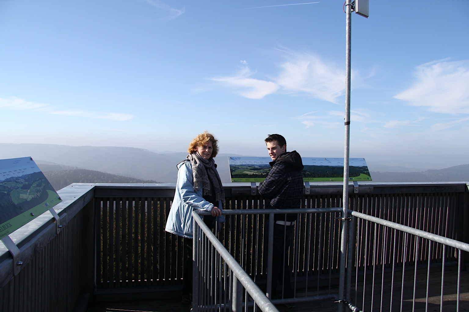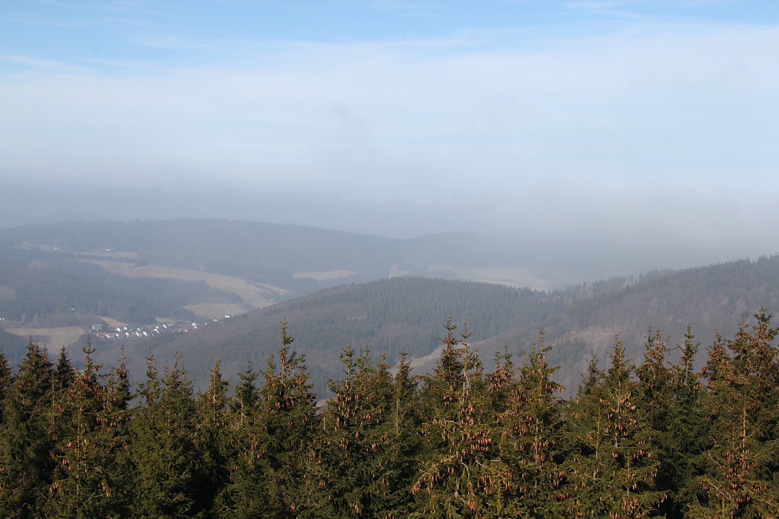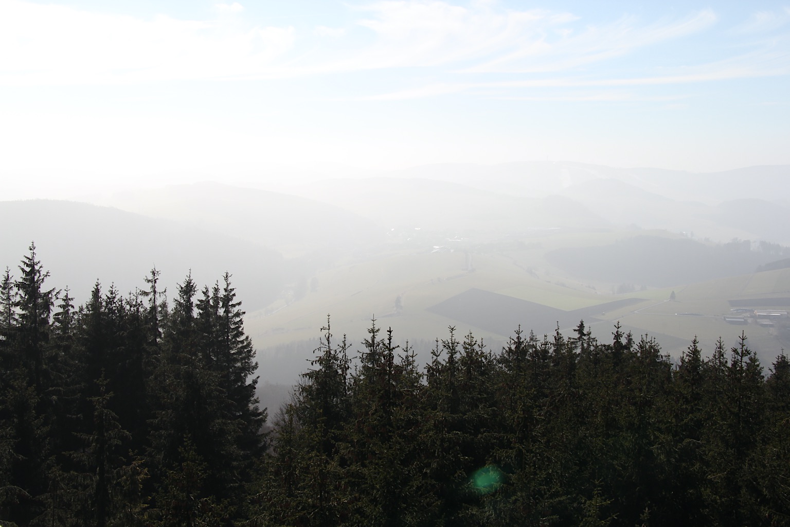 Mooier nog was het dat de nevel langzaam begon op te trekken. Genoeg reden de Dommelaussichtturm ook nog even te beklimmen. Een prachtig maar wel hier en daar heiig beeld van de omgeving. We besluiten na deze wandeling nog naar Willingen te rijden en met de kabelbaan omhoog te gaan.