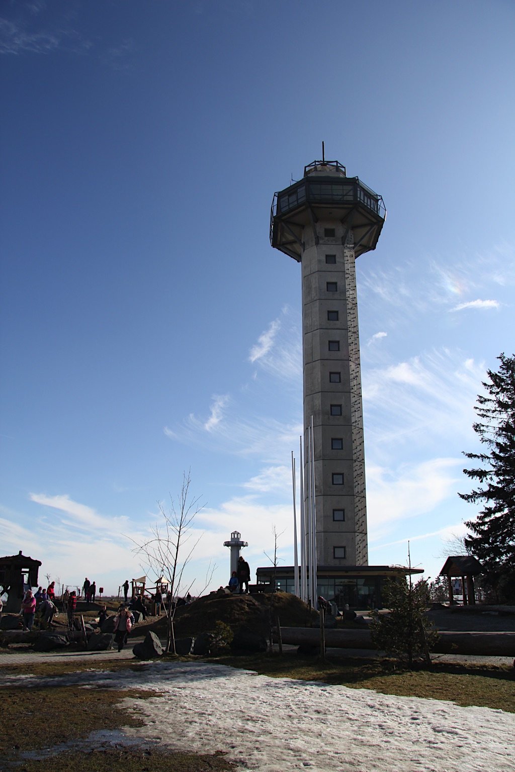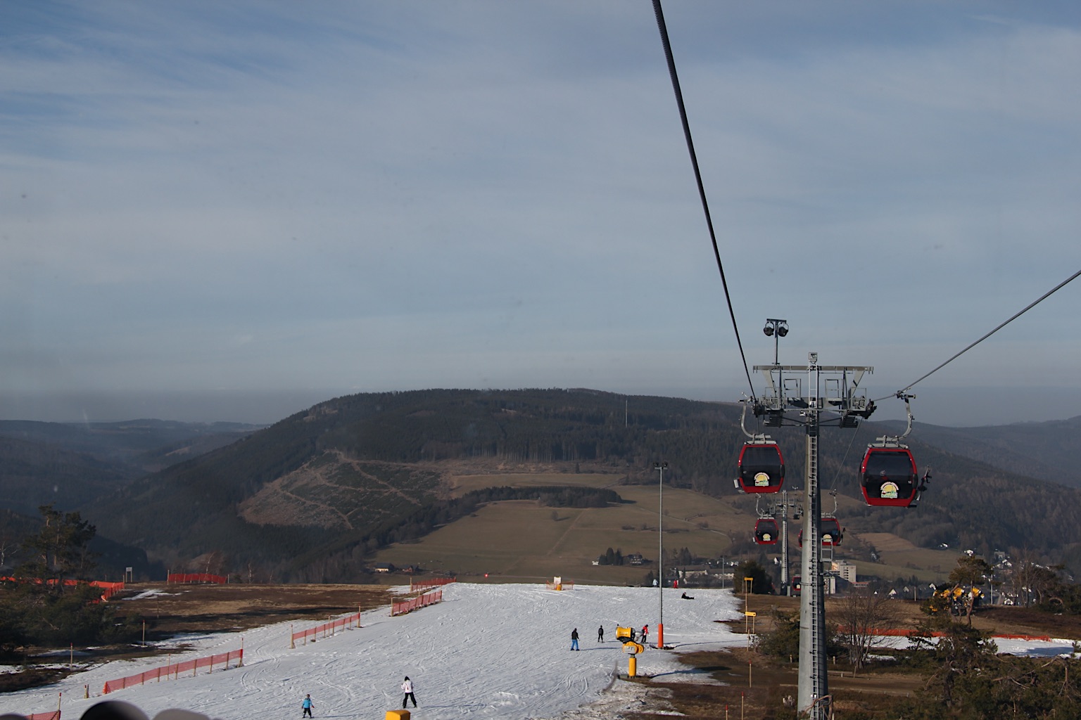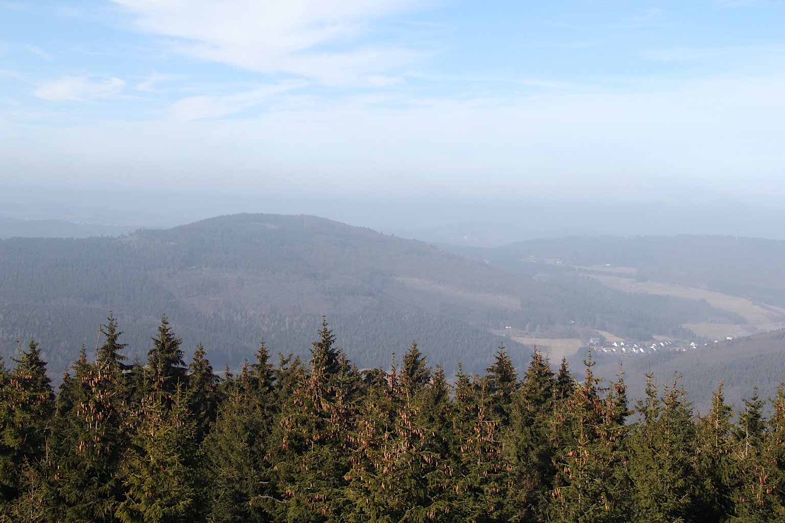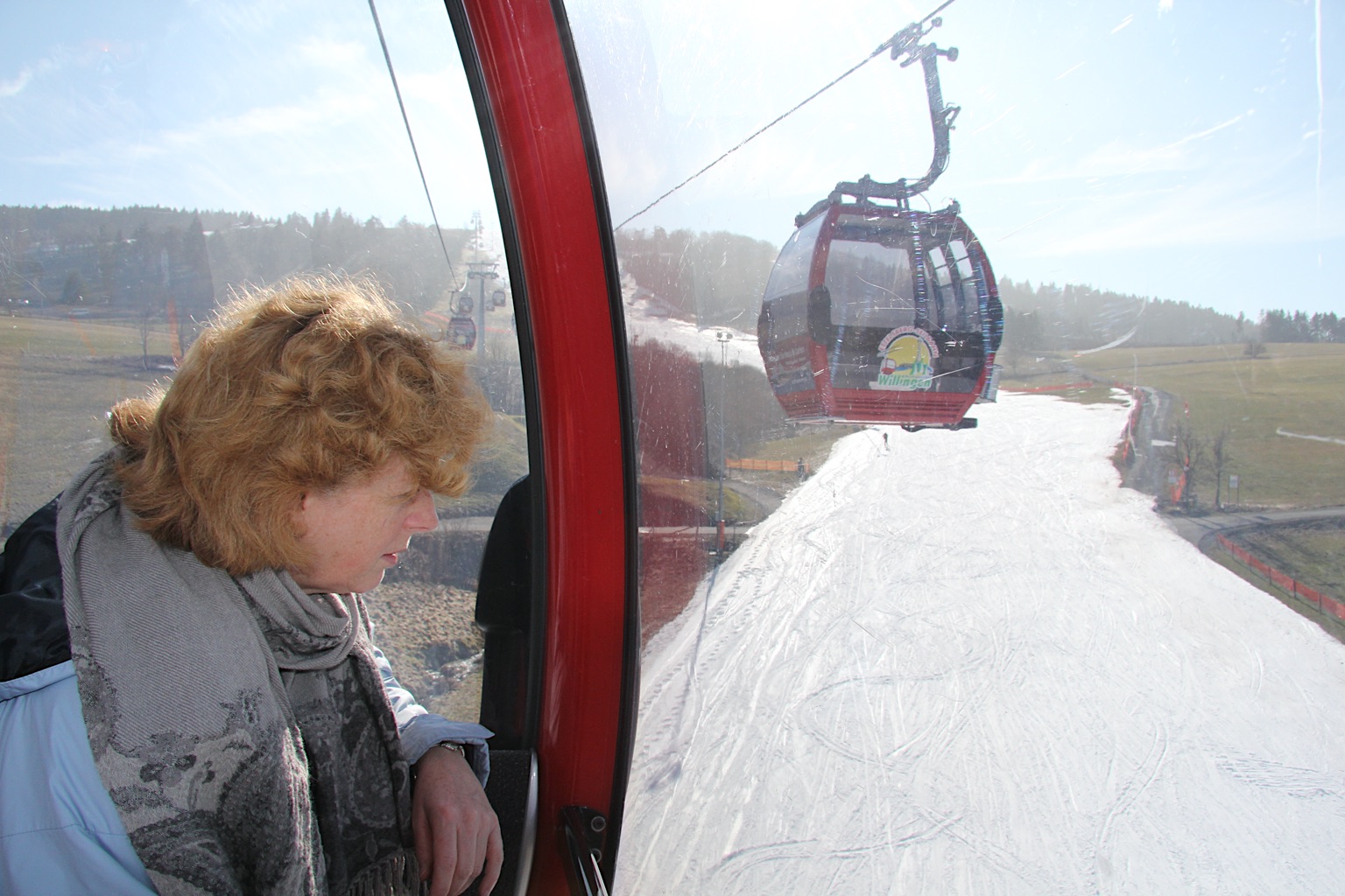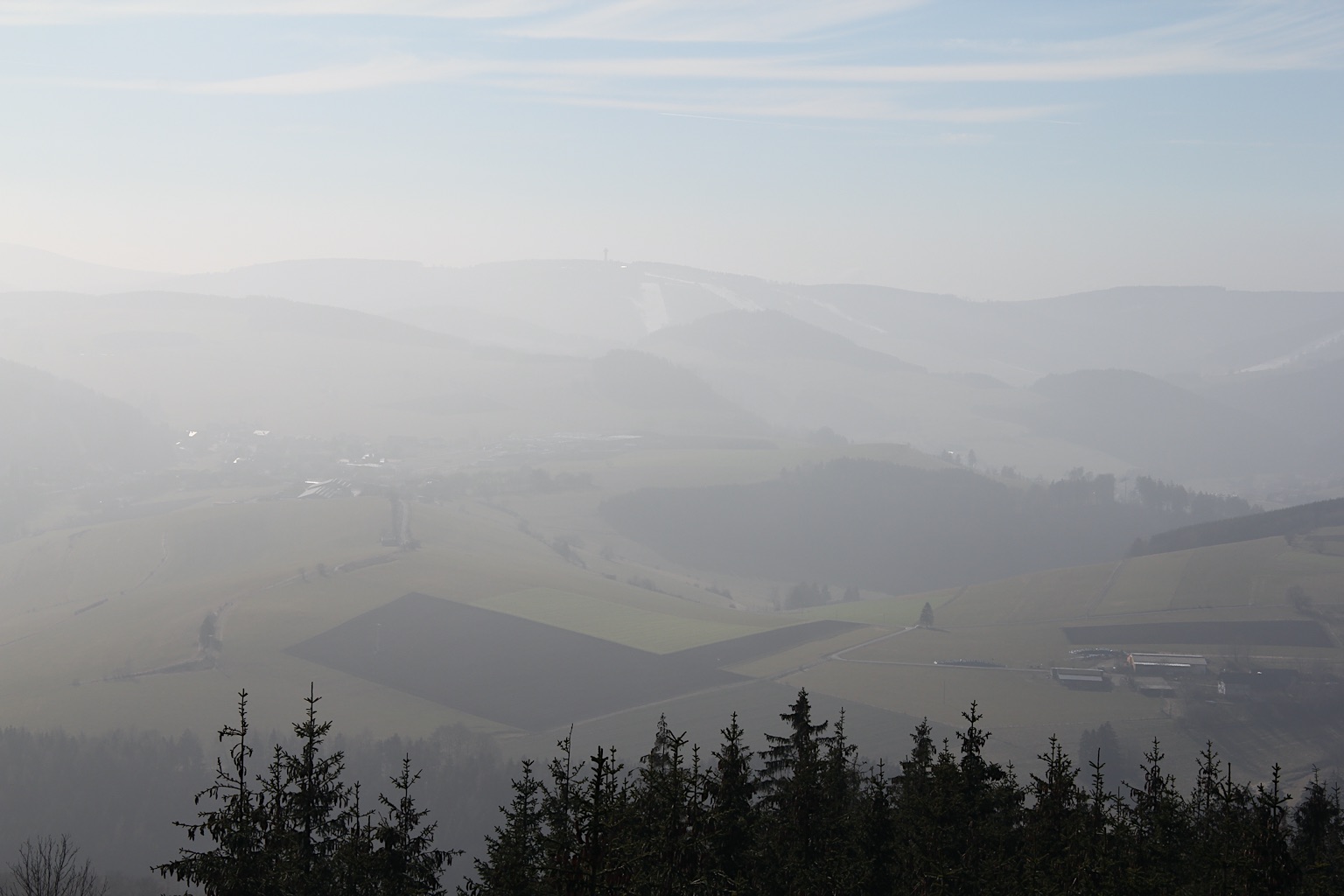 Mooier nog was het dat de nevel langzaam begon op te trekken. Genoeg reden de Dommelaussichtturm ook nog even te beklimmen. Een prachtig maar wel hier en daar heiig beeld van de omgeving. We besluiten na deze wandeling nog naar Willingen te rijden en met de kabelbaan omhoog te gaan.