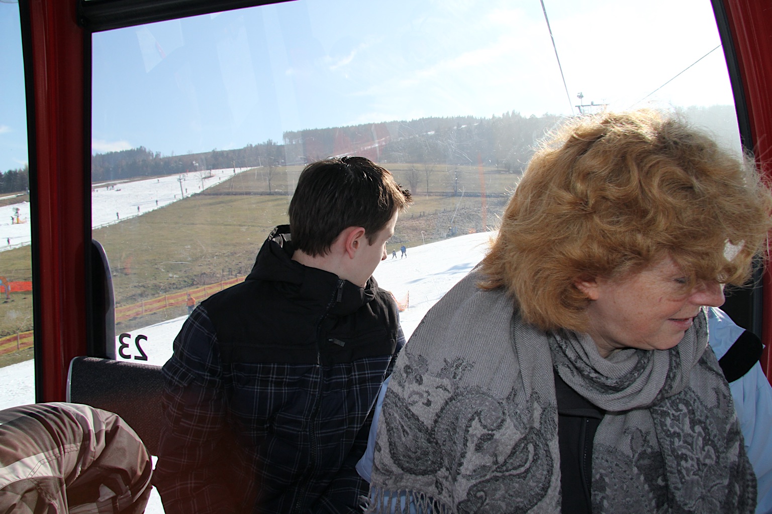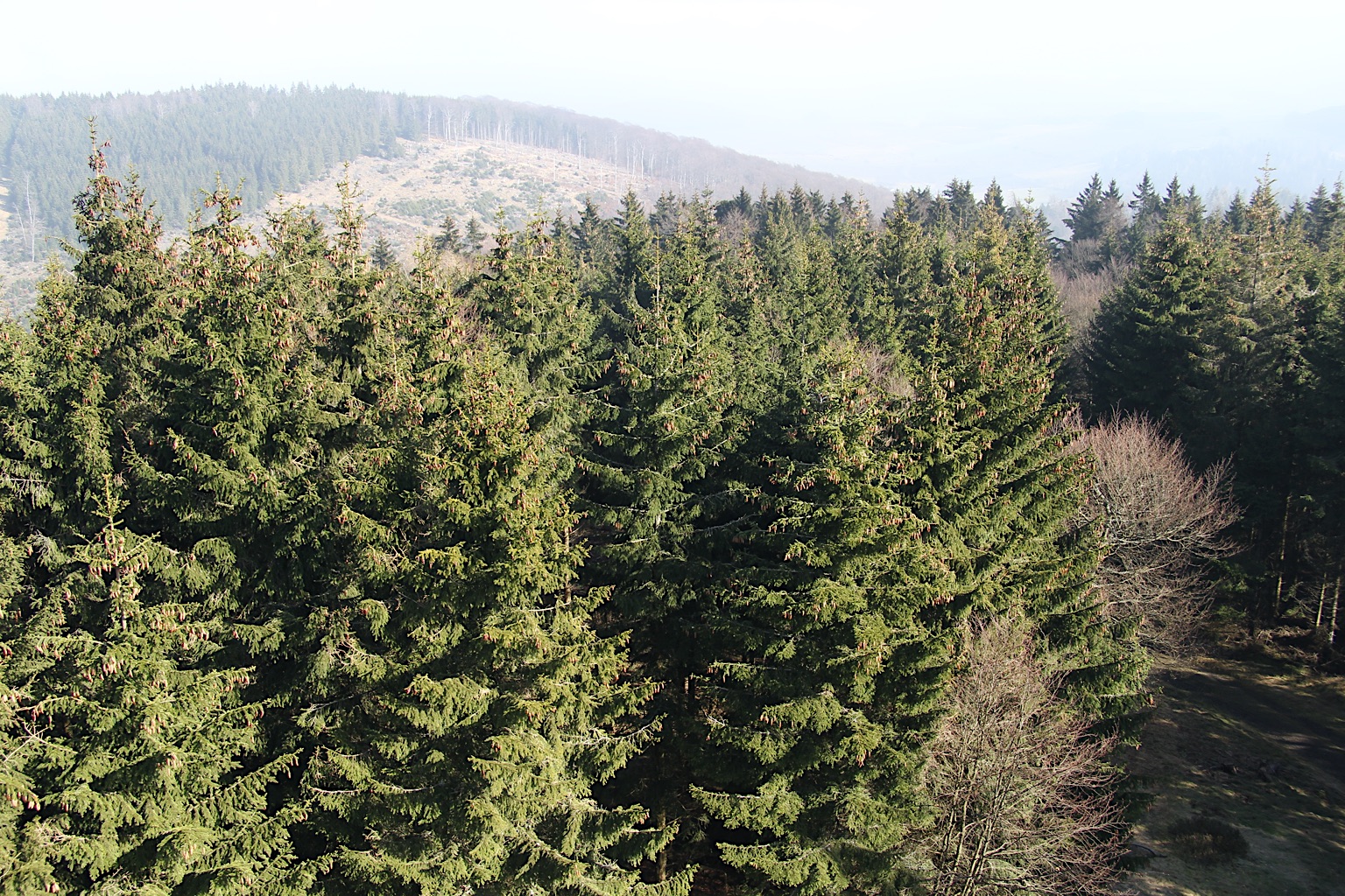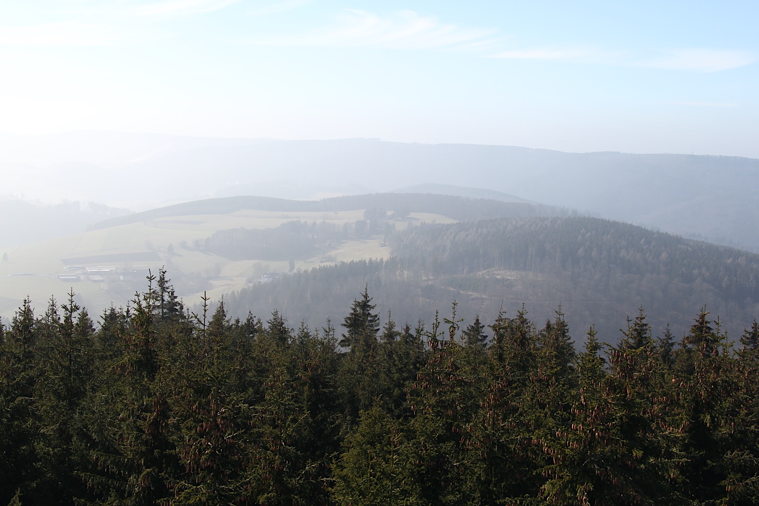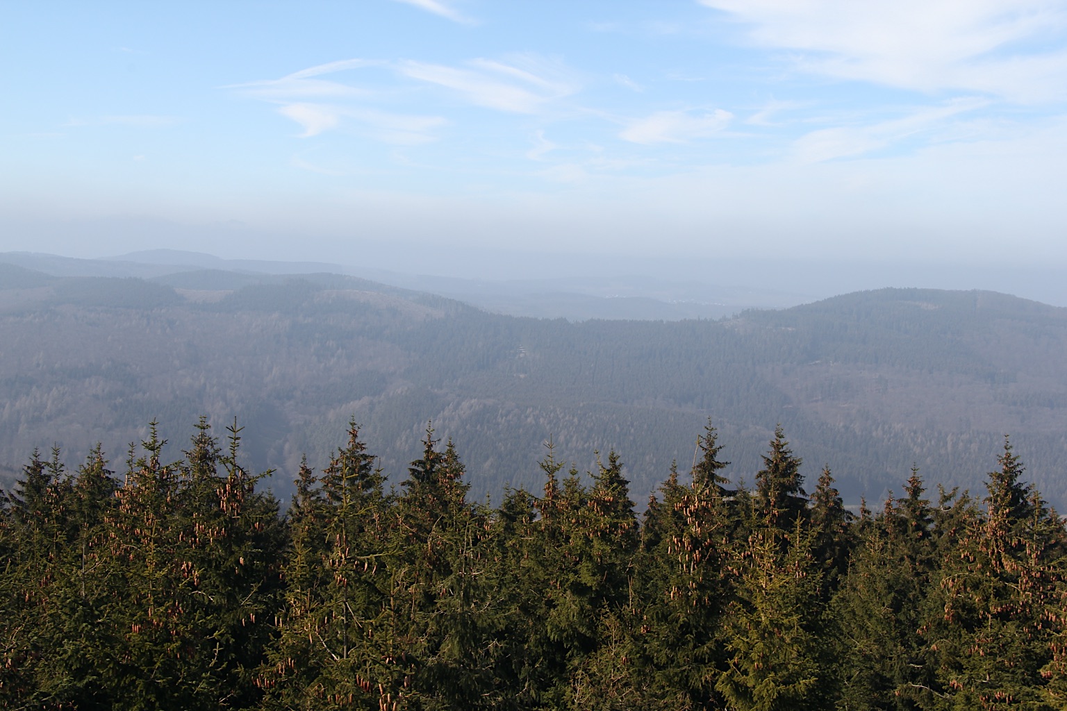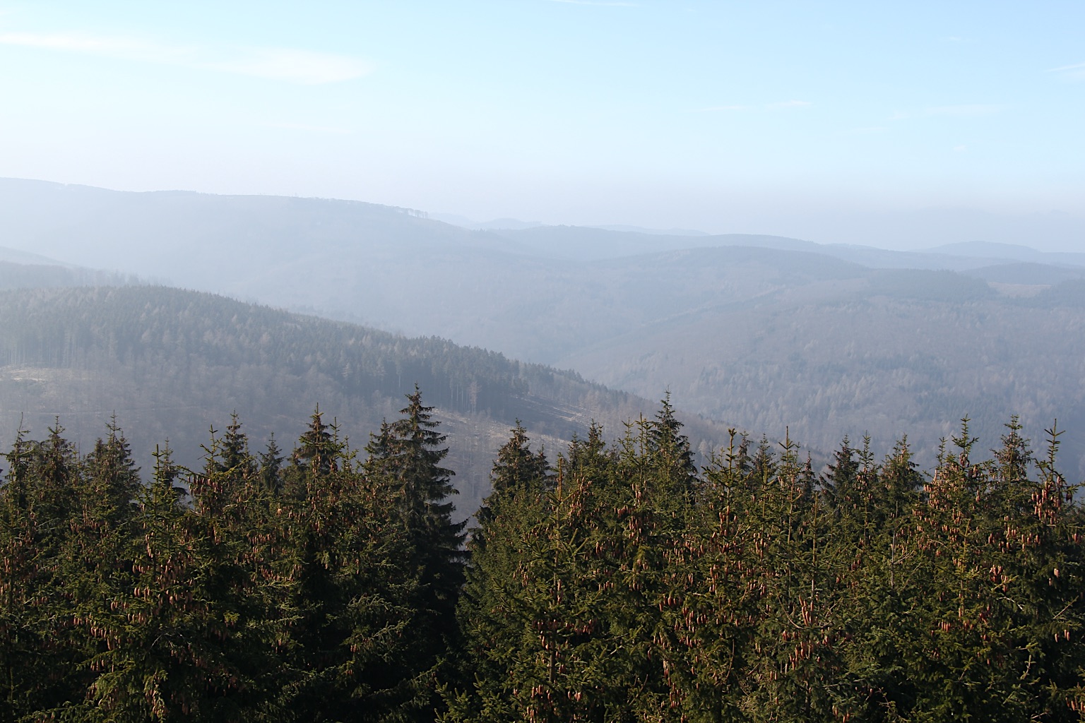 Mooier nog was het dat de nevel langzaam begon op te trekken. Genoeg reden de Dommelaussichtturm ook nog even te beklimmen. Een prachtig maar wel hier en daar heiig beeld van de omgeving. We besluiten na deze wandeling nog naar Willingen te rijden en met de kabelbaan omhoog te gaan.