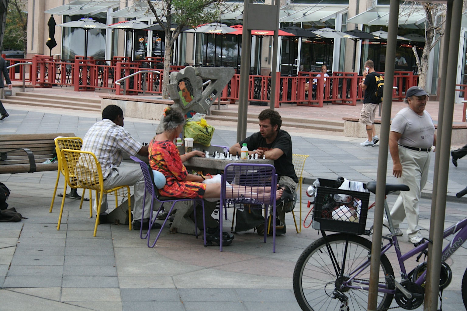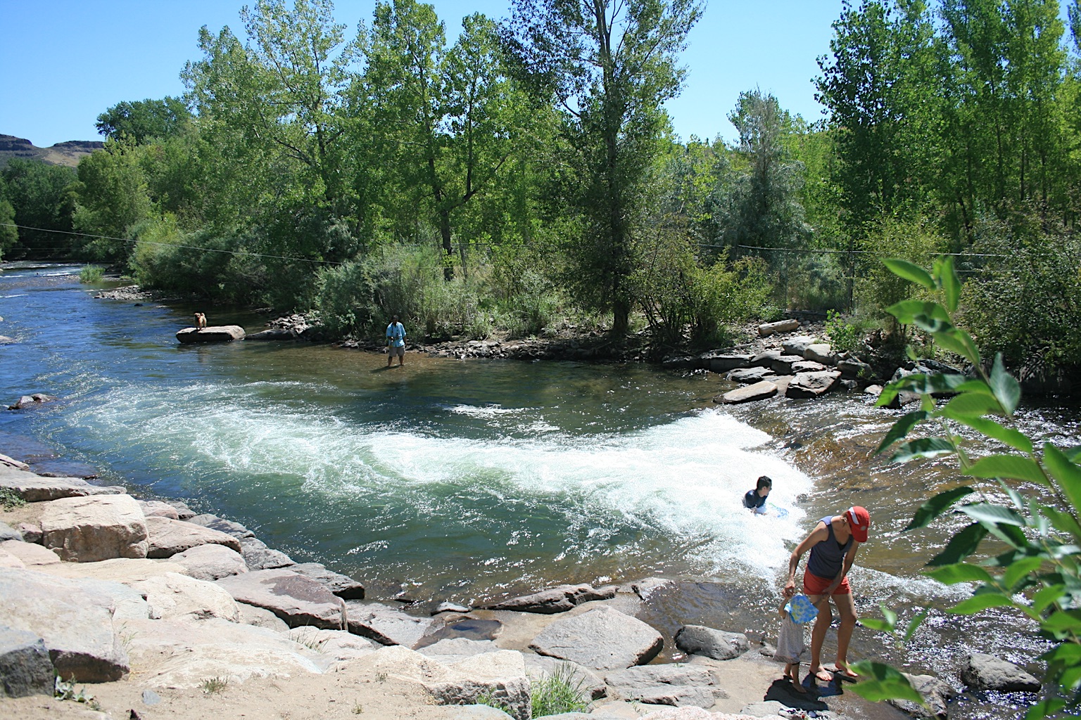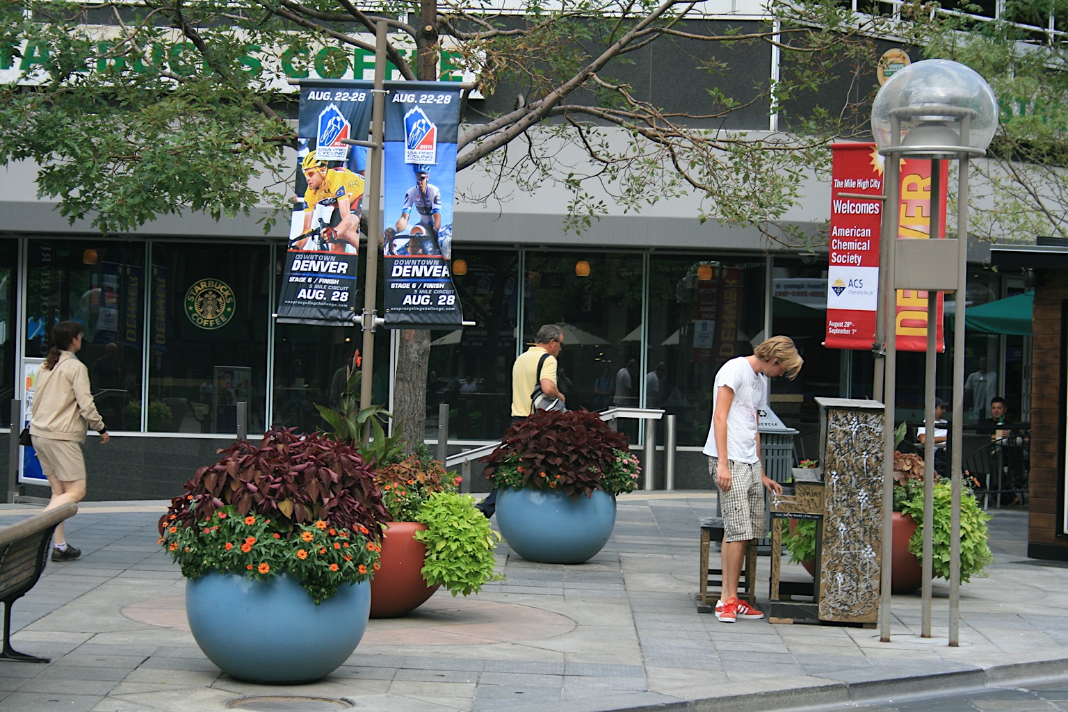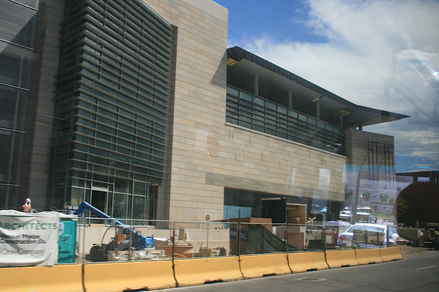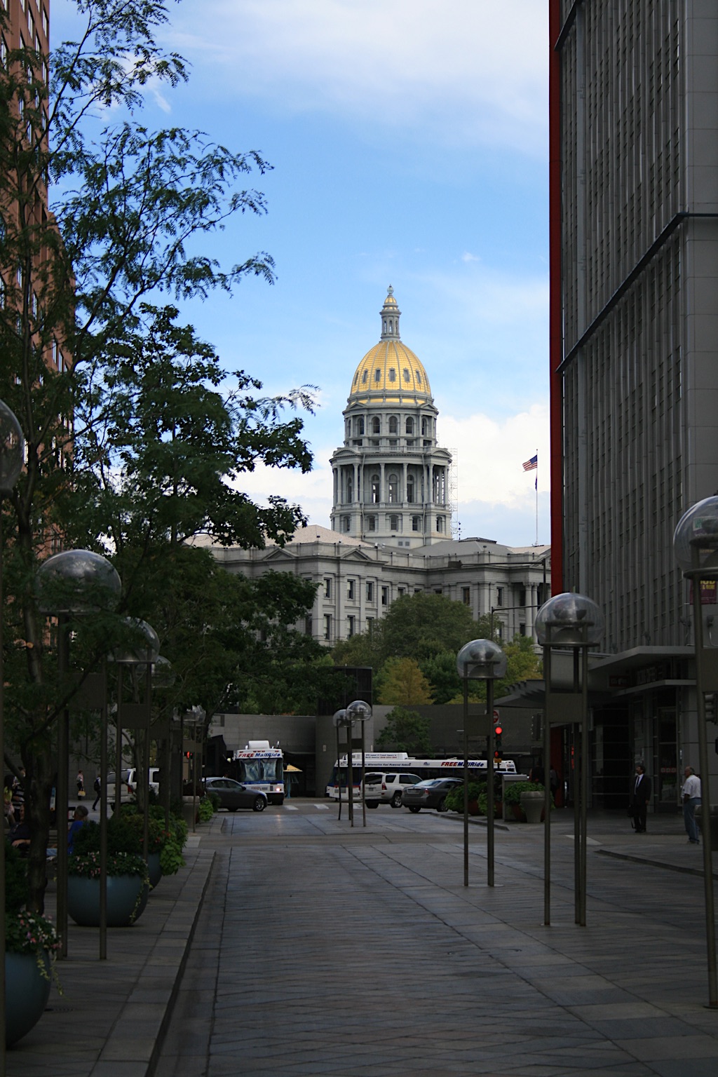 Vandaag toch maar om zeven uur gebeld met Clear Creek RV site ook hier in Golden. We kunnen terecht. We boffen want het is een klein park aan een grote beek pal bij het dorpje Golden, een gezellig voorstadje van Denver. Na onze tocht van 6km er naar toe besluiten we met de bus naar Denver te gaan. een iPhone is toch wel erg handig, even de busroutes van Denver erin zetten en we kunnen gaan. Het is wel een ritje van anderhalf uur. Bij aankomst in Denver eerst maar eens gewinkeld in de modernste Mall van Denver. Tineke koopt een mooie bikini en Chris een paar Vans.