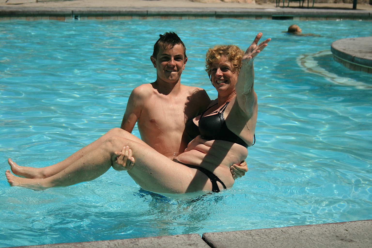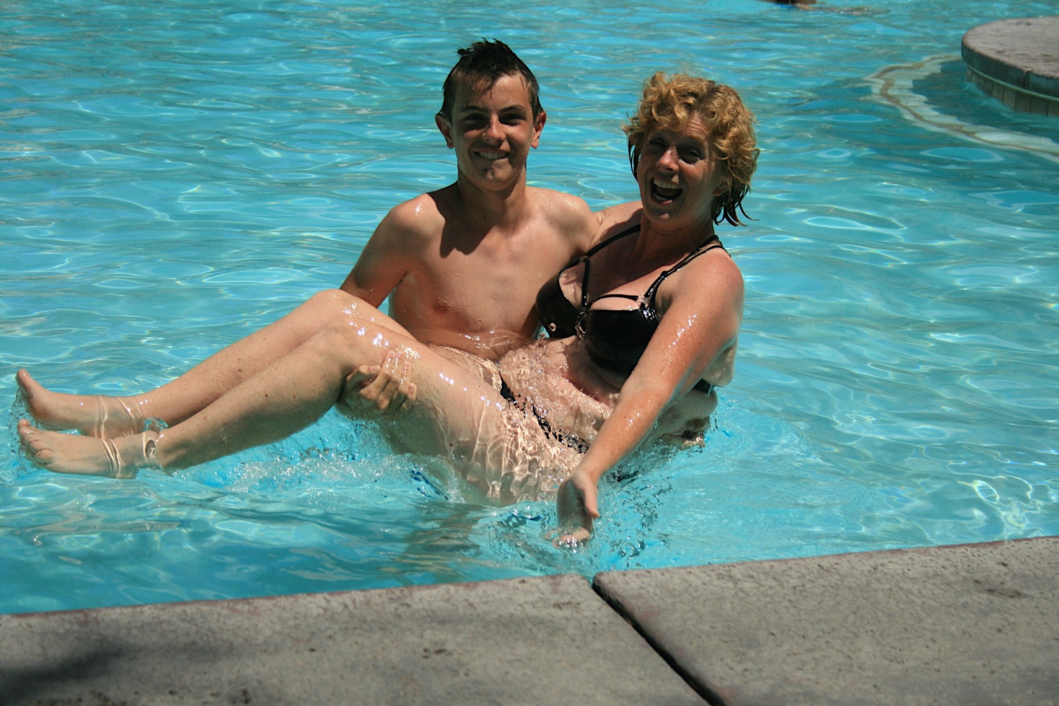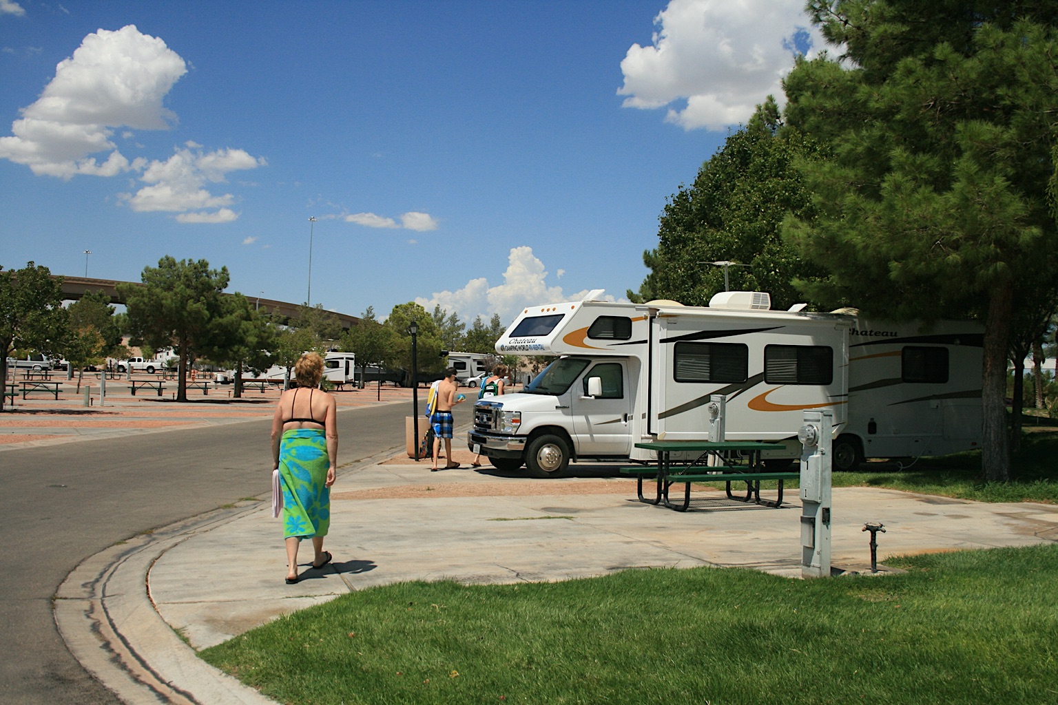 Goede hamburger gegeten bij BTL en per taxi terug naar het RV Resort. Heet, verhit en vermoeid, dus lekker verkoelen in het zwembad.