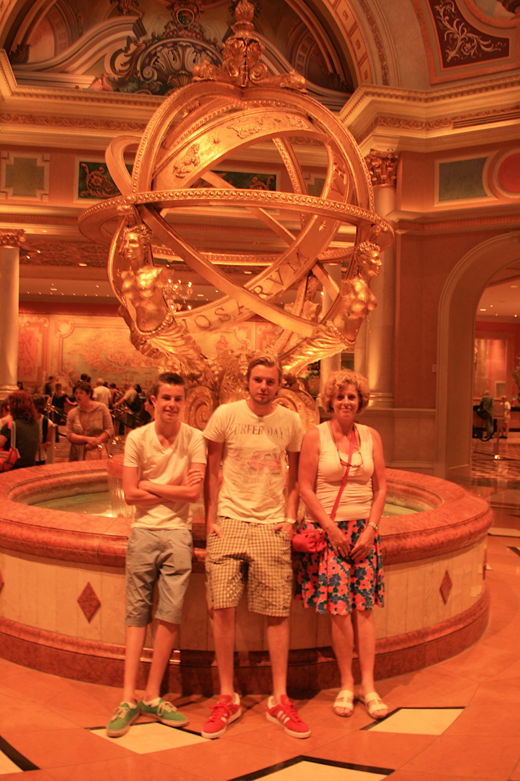 De wereld is toch klein. Naast ons staat de familie Van Bijsterveldt uit Gilze nota bene. ’s Middags zijn we nog per taxi (taxi chauffeur uit Polen) naar de strip (las Vegas Boulevard) gegaan. We wilden de Venetian (met de shops en een echt Canal met gondeliers) en de Mirage nog wel eens bekijken. Dat hadden toch wel redelijk snel gezien.