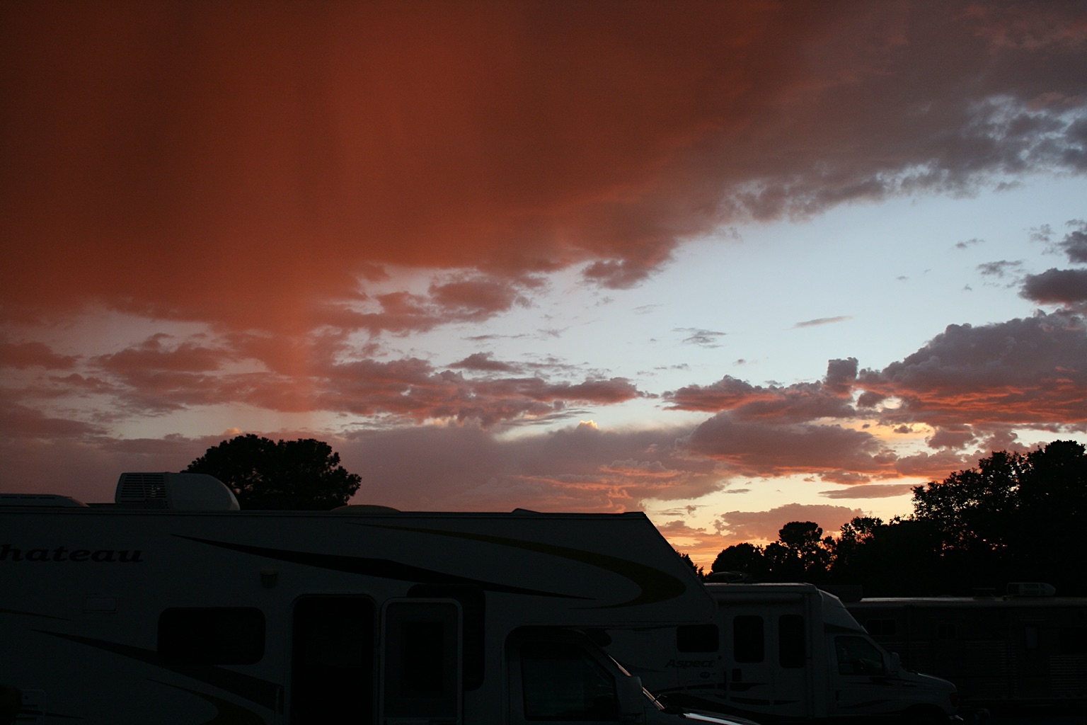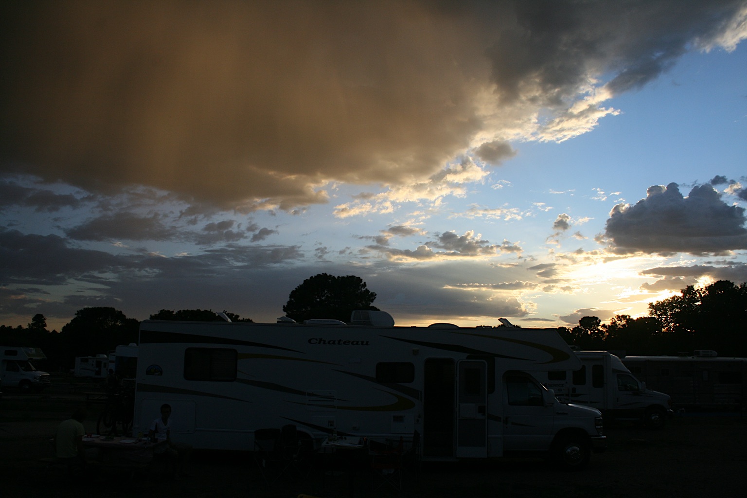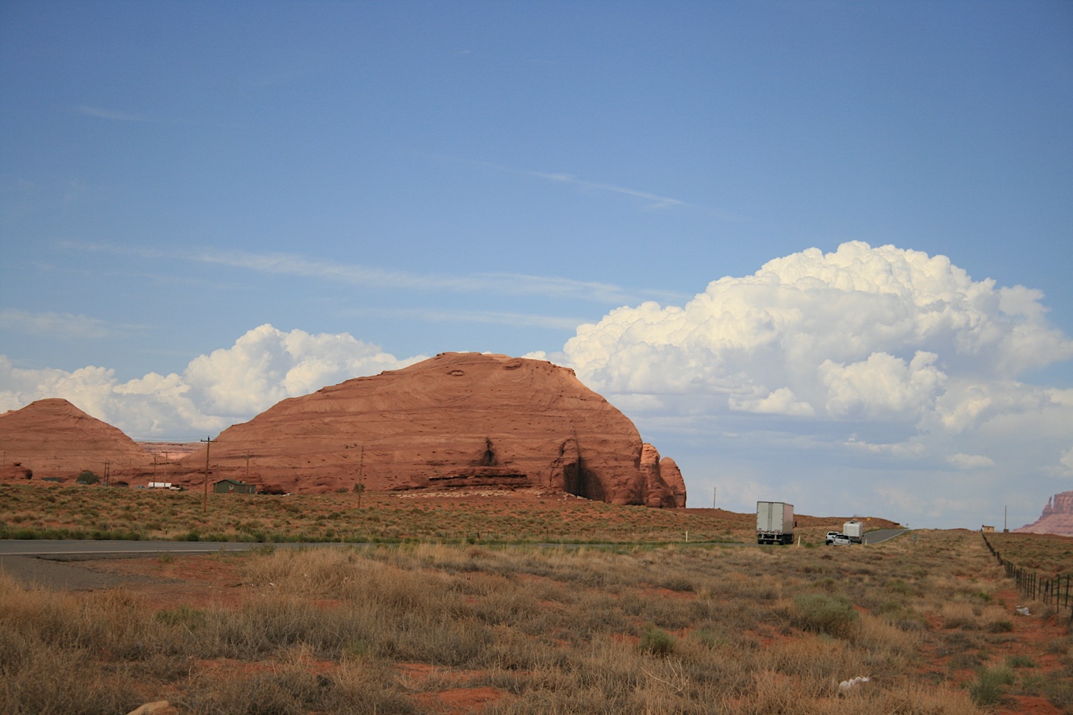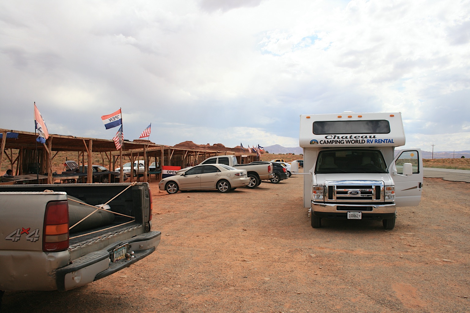 Dan in noord-oostelijke richting via Tuba en Kayenta naar Monument Valley. Gisteravond nog via internet een RV site gereserveerd in Gouldings midden in de Valley. Wisselend bewolkt, lekker warm.