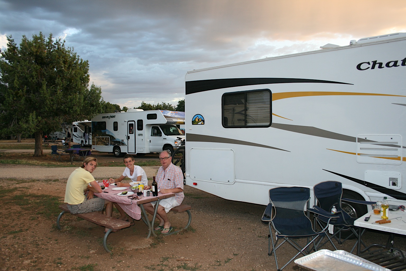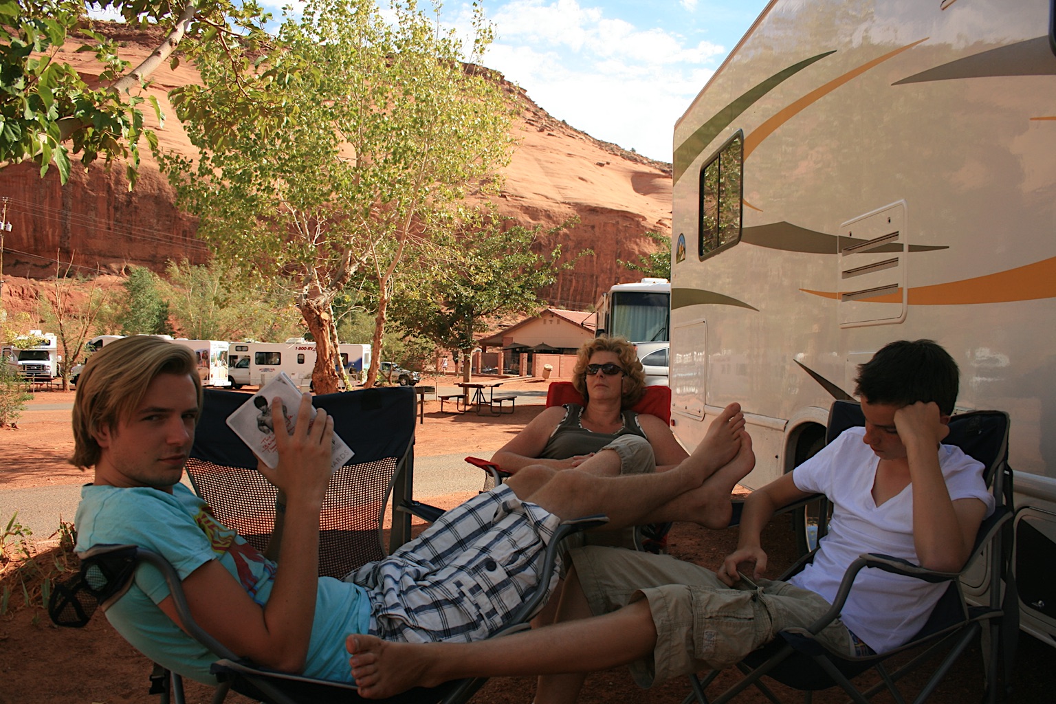 Ook WiFi is niet wat er wordt beloofd. Tineke zit te mopperen want er zijn maar 5 douches op 130 kampeerplaatsen, dus lange rijen. C’est ridi. ’s Avonds stevige wind en fiks onweer dus we eten in de camper. Morgenochtend vroeg op om Monument Valley Tribal Park eens goed te bekijken, daarna door naar Moab, Arches.