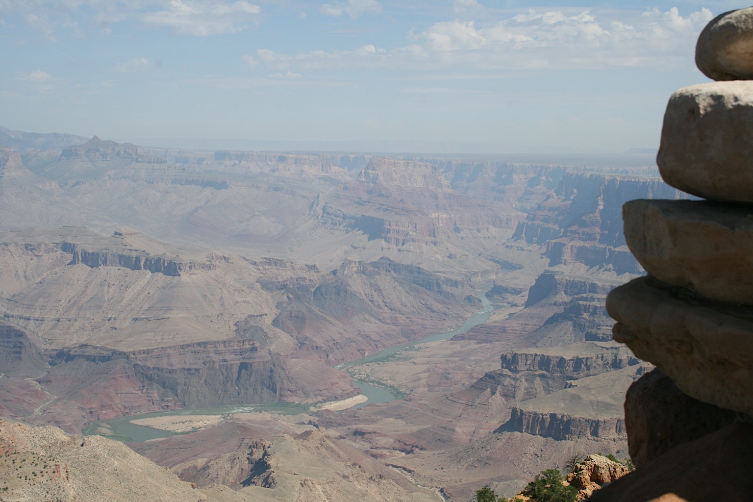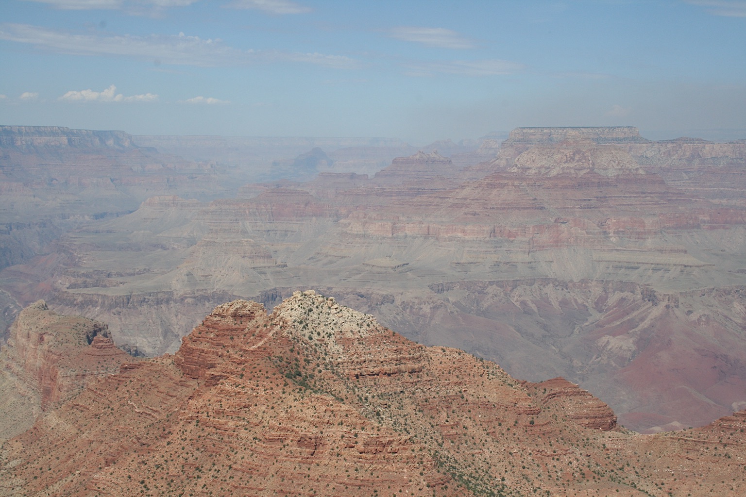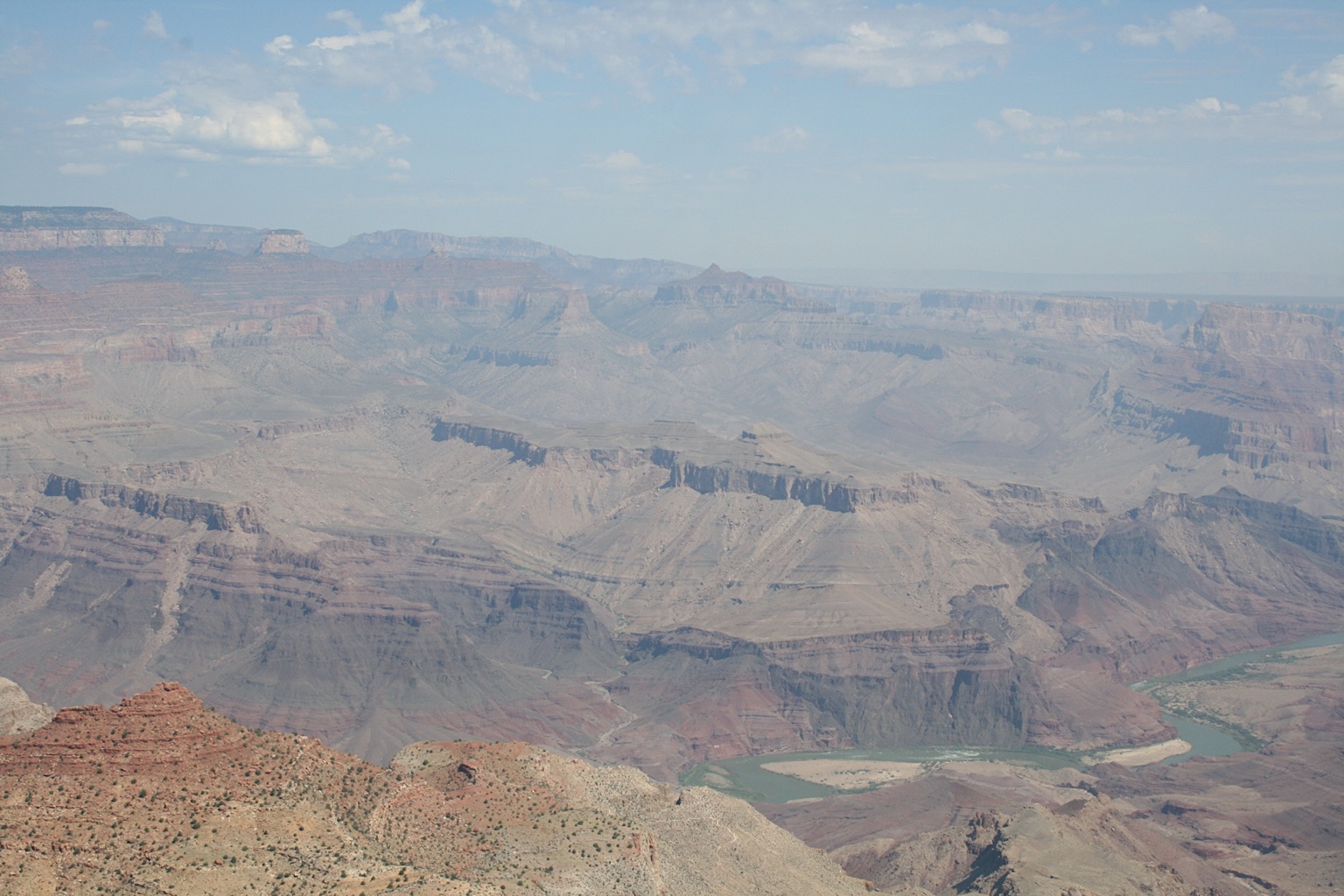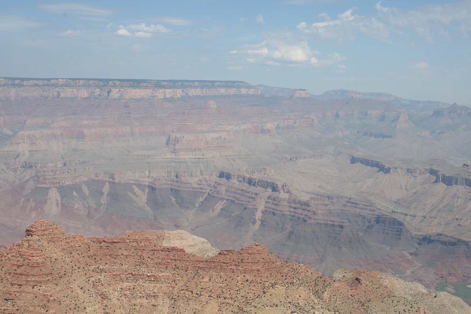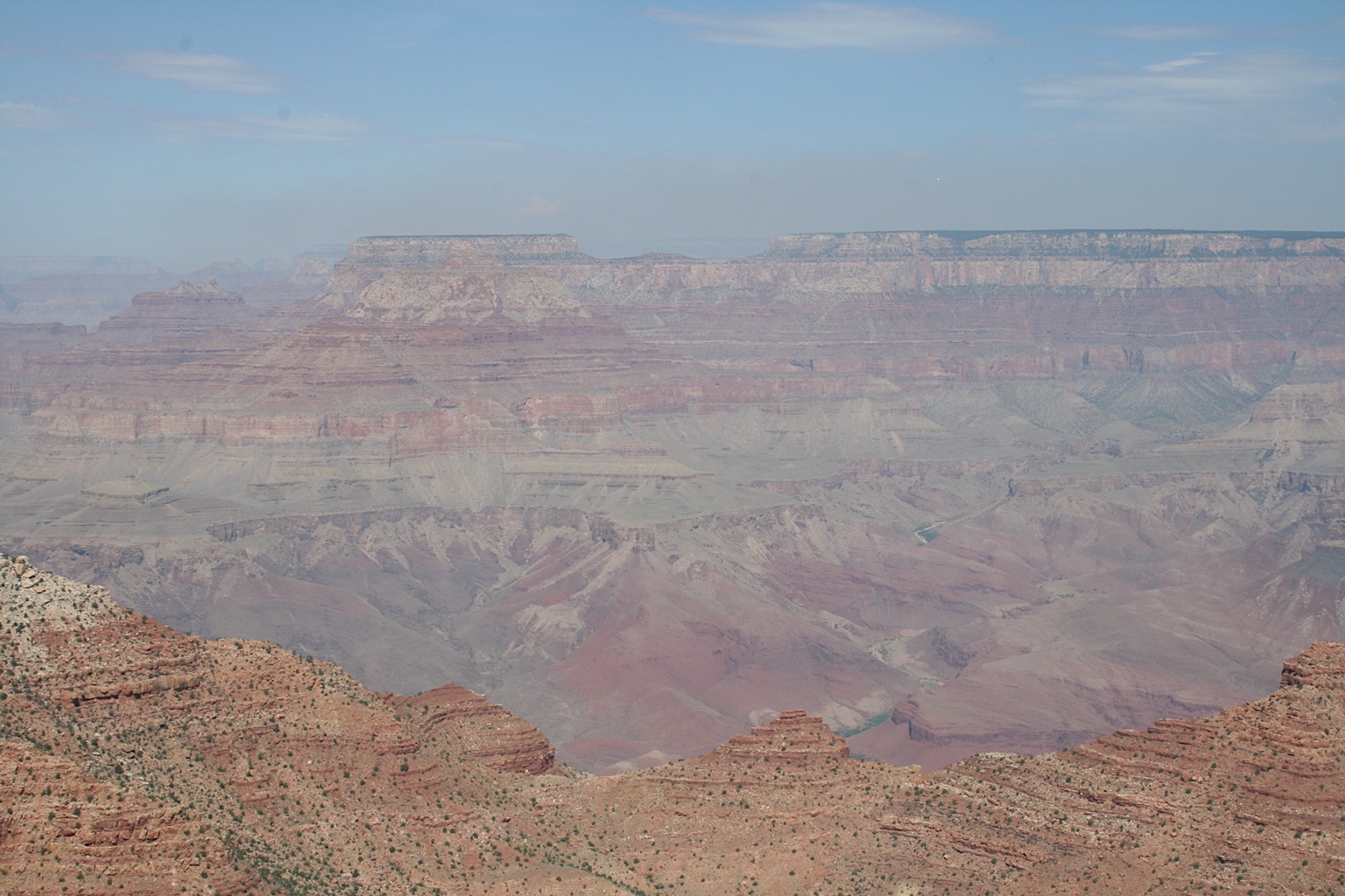 Het eerder opgevatte plan om Lake Powell te laten schieten hebben we concreet gemaakt. Vanochtend was het ietwat heiig in de grand Canyon. We besluiten om nog een paar boodschappen te doen en vervolgens te rijden via Desert View, met een uitzichttoren en een laatste prachtige blik op de Canyon, vervolgens de mooie weg naar Cameron en zo het nationale park uit.
