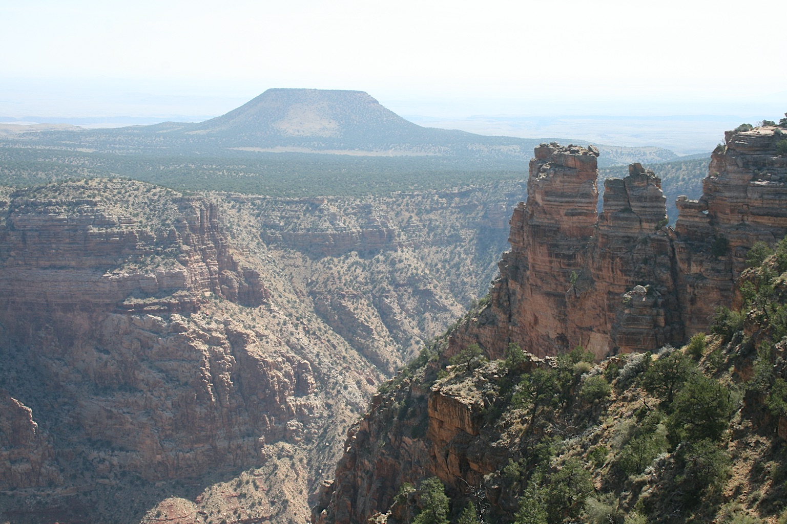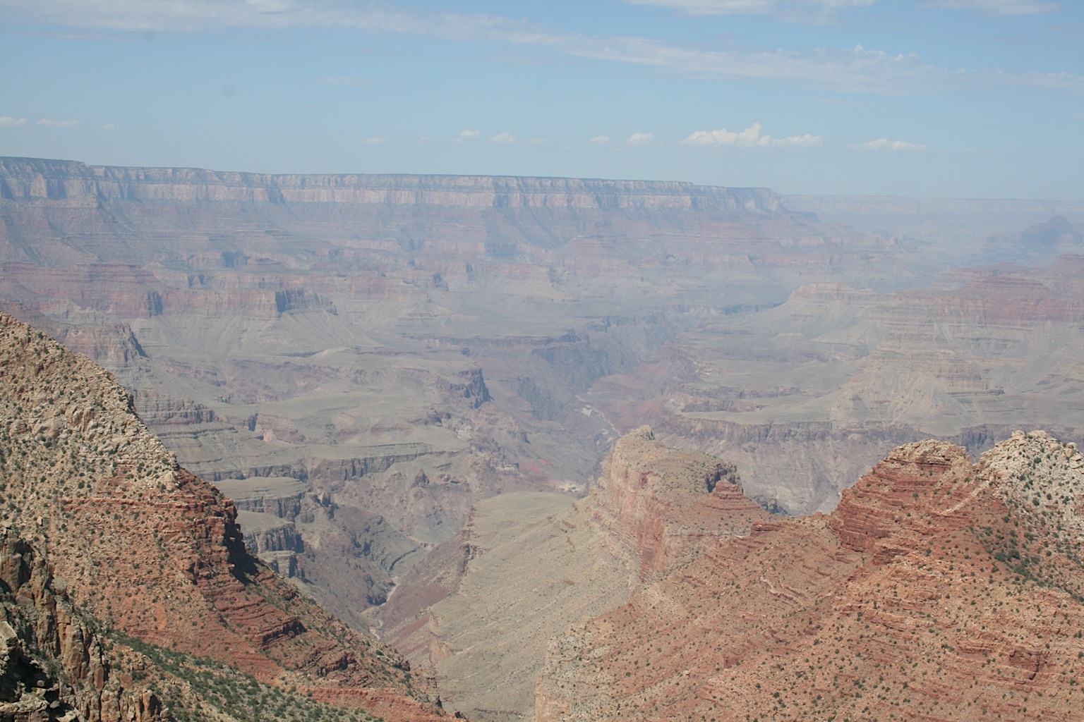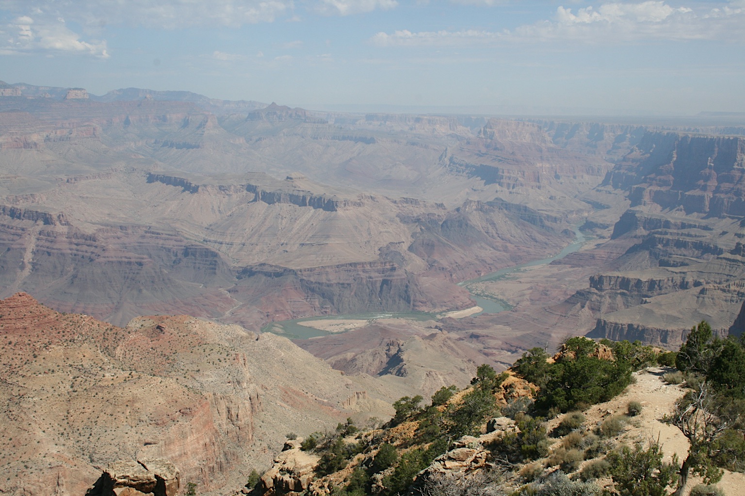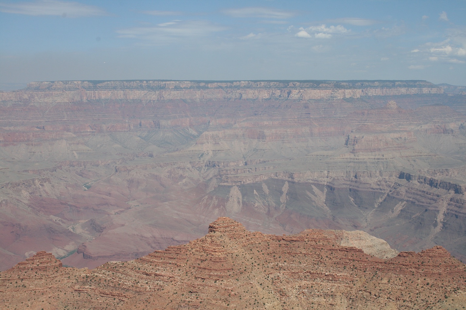 Het eerder opgevatte plan om Lake Powell te laten schieten hebben we concreet gemaakt. Vanochtend was het ietwat heiig in de grand Canyon. We besluiten om nog een paar boodschappen te doen en vervolgens te rijden via Desert View, met een uitzichttoren en een laatste prachtige blik op de Canyon, vervolgens de mooie weg naar Cameron en zo het nationale park uit.