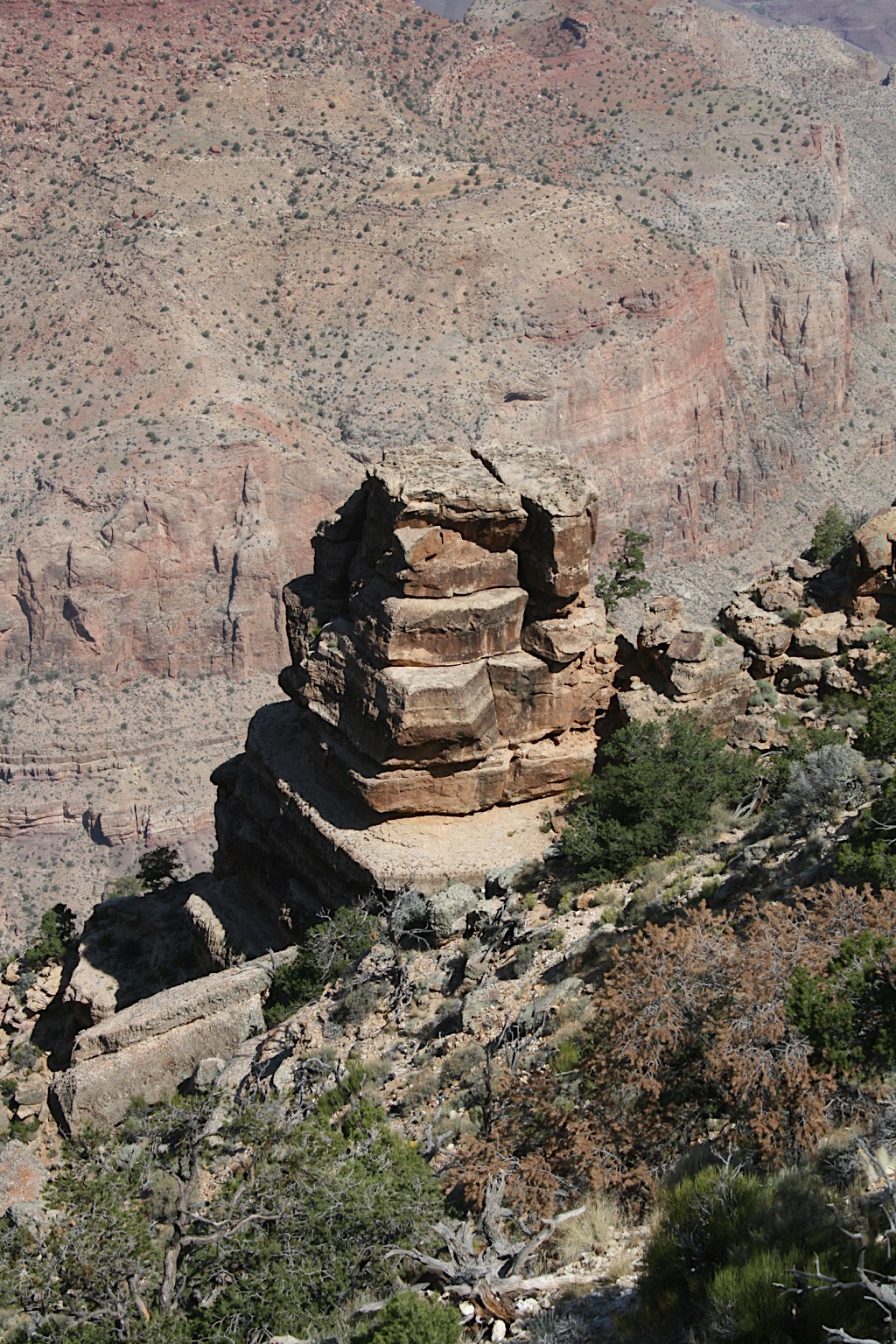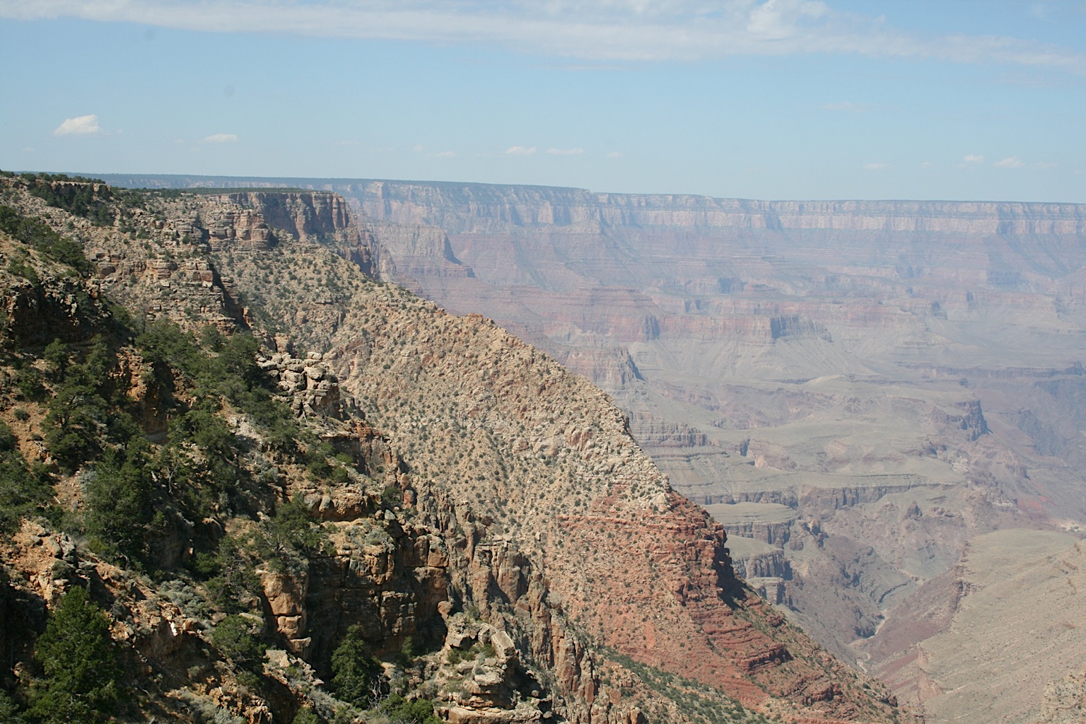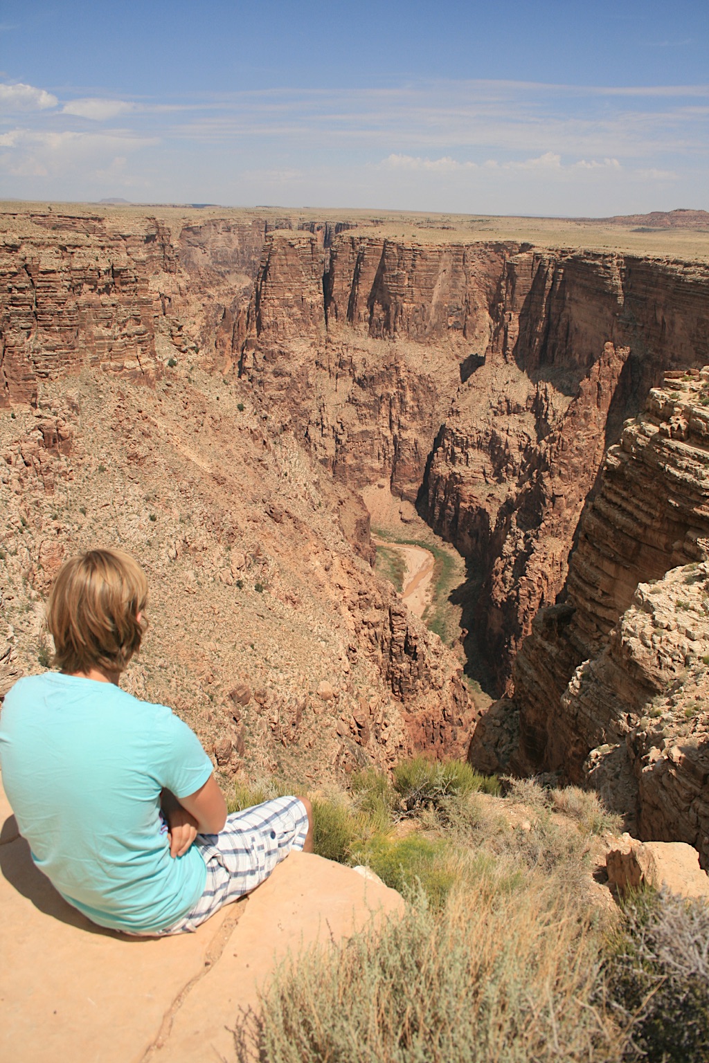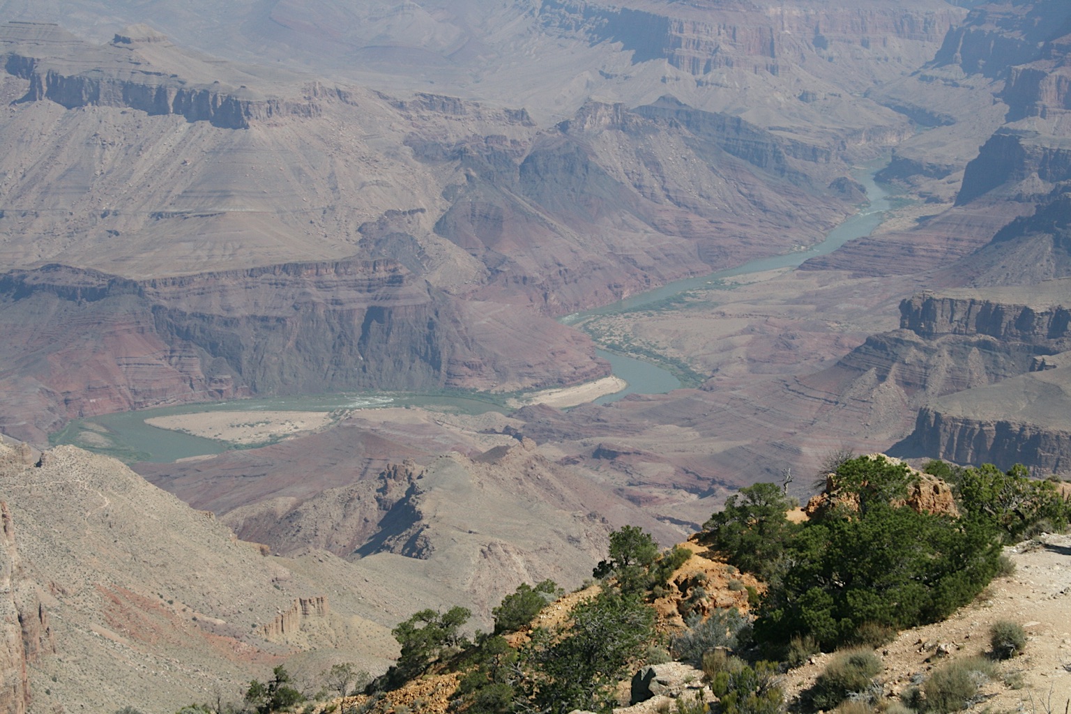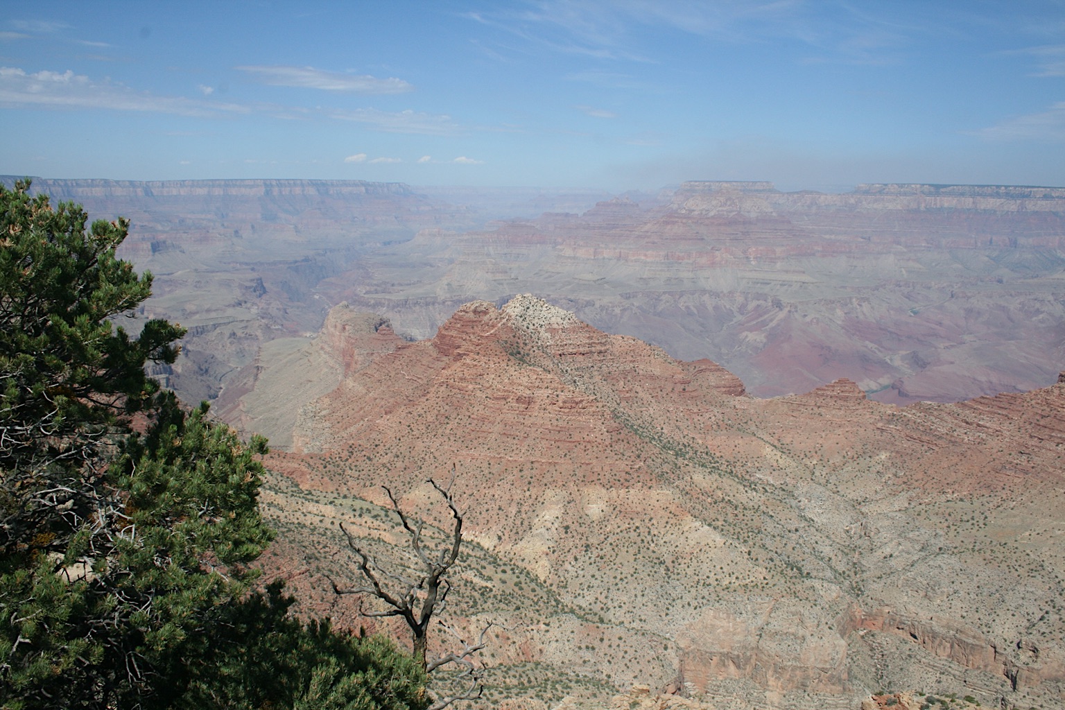 Het eerder opgevatte plan om Lake Powell te laten schieten hebben we concreet gemaakt. Vanochtend was het ietwat heiig in de grand Canyon. We besluiten om nog een paar boodschappen te doen en vervolgens te rijden via Desert View, met een uitzichttoren en een laatste prachtige blik op de Canyon, vervolgens de mooie weg naar Cameron en zo het nationale park uit.