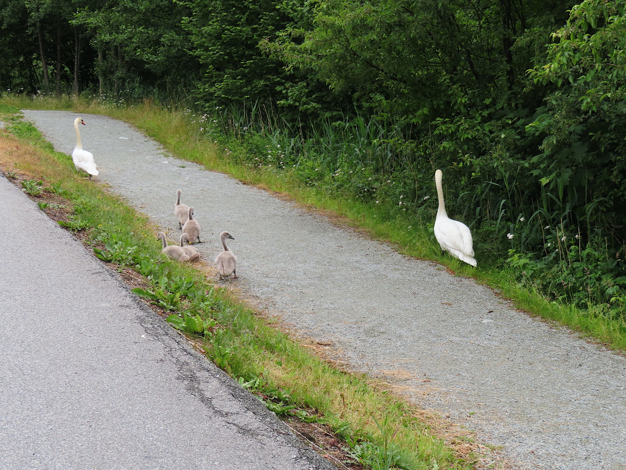 Vandaag doen we het een beetje rustig aan. Sambo is toe aan een lekkere wandeling na een paar lange autoritten en een lange boottocht. We wandelen van ons huisje langs het water naar het dorpje waar een paar winkels zijn. Langs de waterkant is een heerlijk pad voor voetgangers. We laten Sambo graag los lopen. Dat is volgens een Noorse man die we tegenkomen streng verboden. Hij moet vast (it’s the law you know) want zijn bij hem spelende kinderen kunnen bang worden en hij kan wel bijten. We doen het maar voor de lieve vrede. Het pad leidt ons langs vele boot/vissershuisjes zoals je ze hier veel ziet hier. Tegenwoordig worden ze voornamelijk gebruikt voor toerisme. Het pad eindigt bij een prachtig park. Een stel knobbelzwanen met 5 jongen kwamen sissend voorbij. Aan het einde van het park lag de doorgaande weg met een aantal winkels waaronder een supermarkt. We haalden daar enkele benodigdheden en liepen de zelfde route terug. Op de terugweg kwamen we de spelende kinderen van de man weer tegen. Ze kwamen naar Sambo toe aaiden hem en spraken lieve woordjes. Huh?