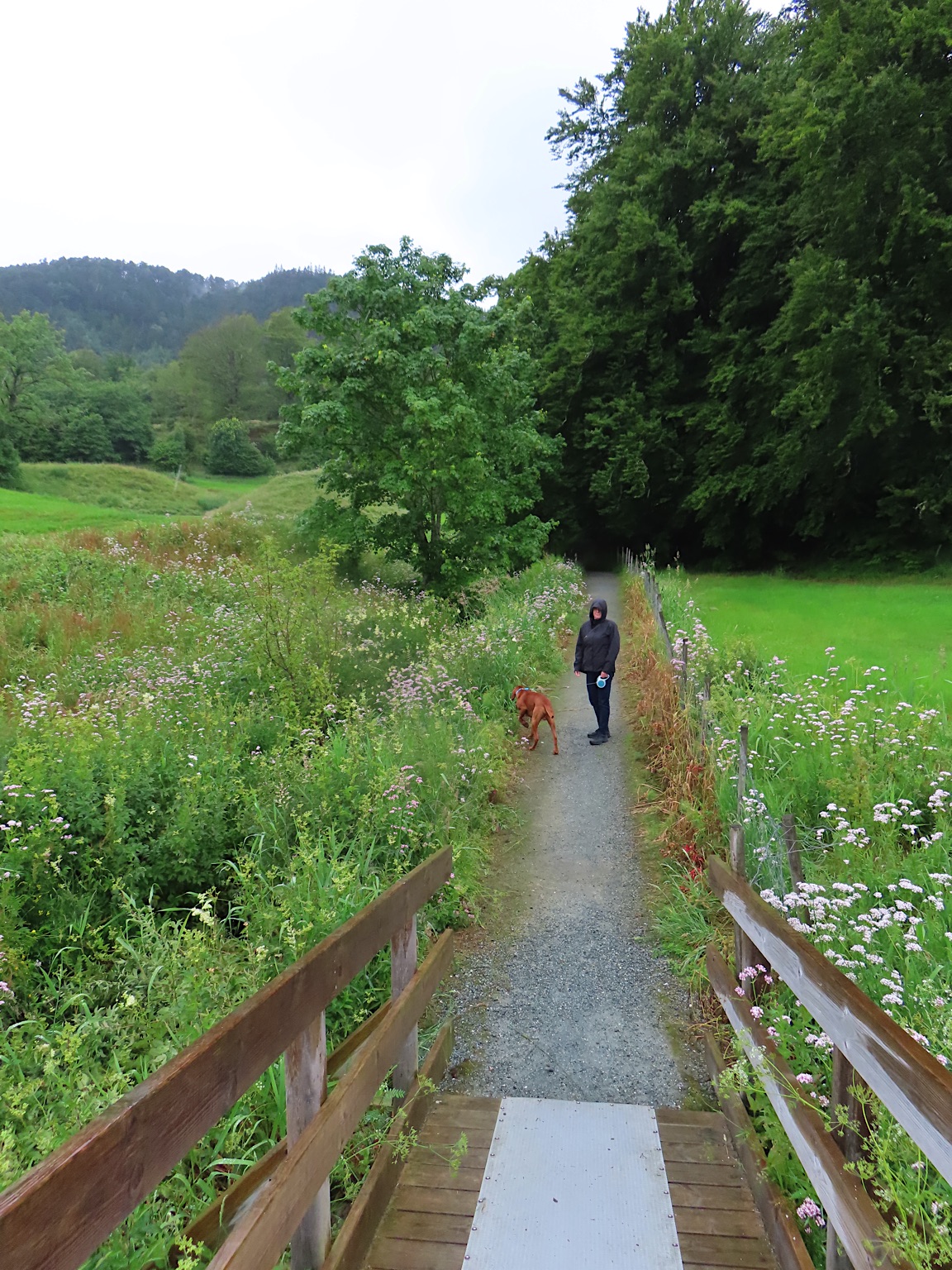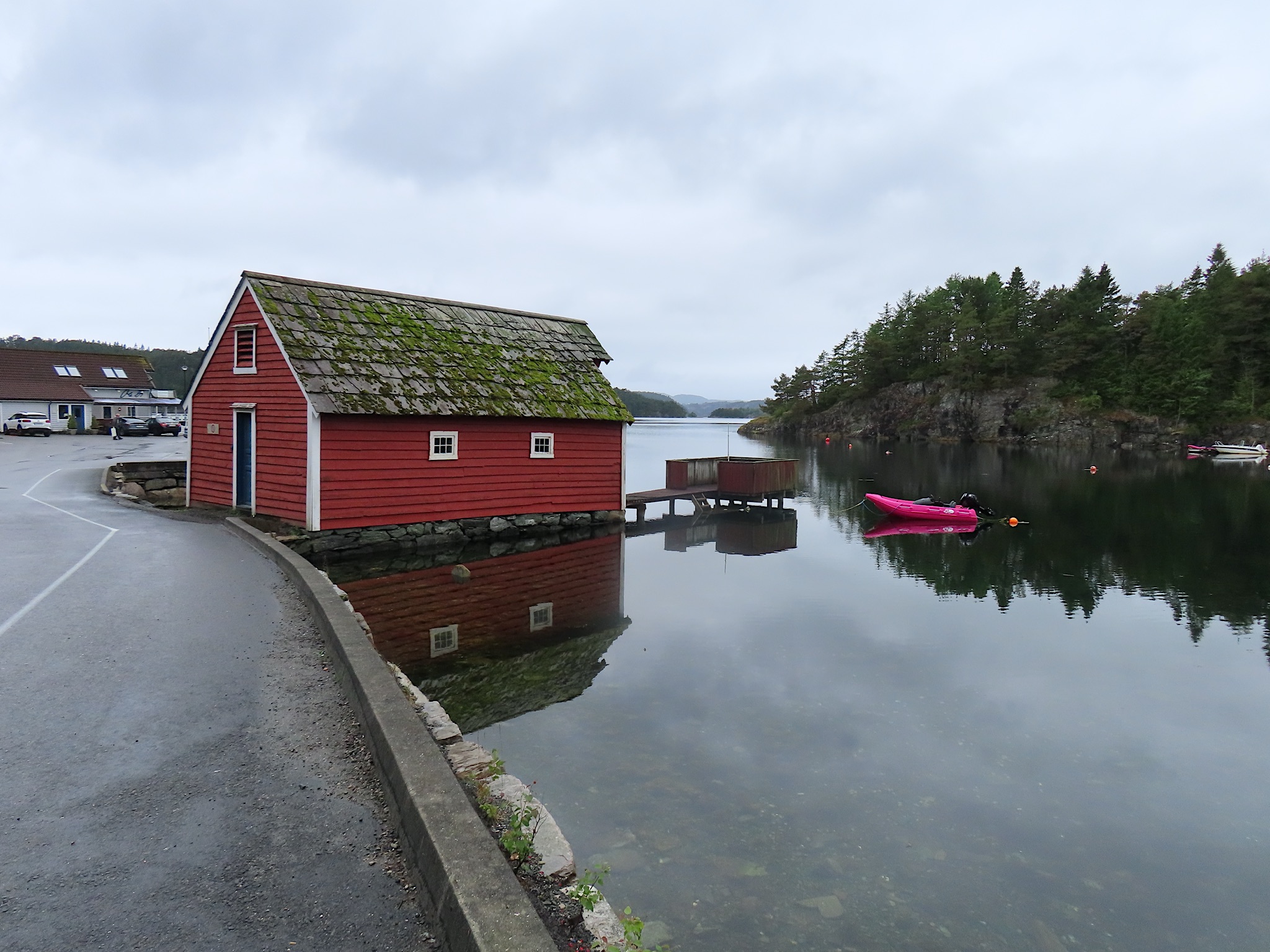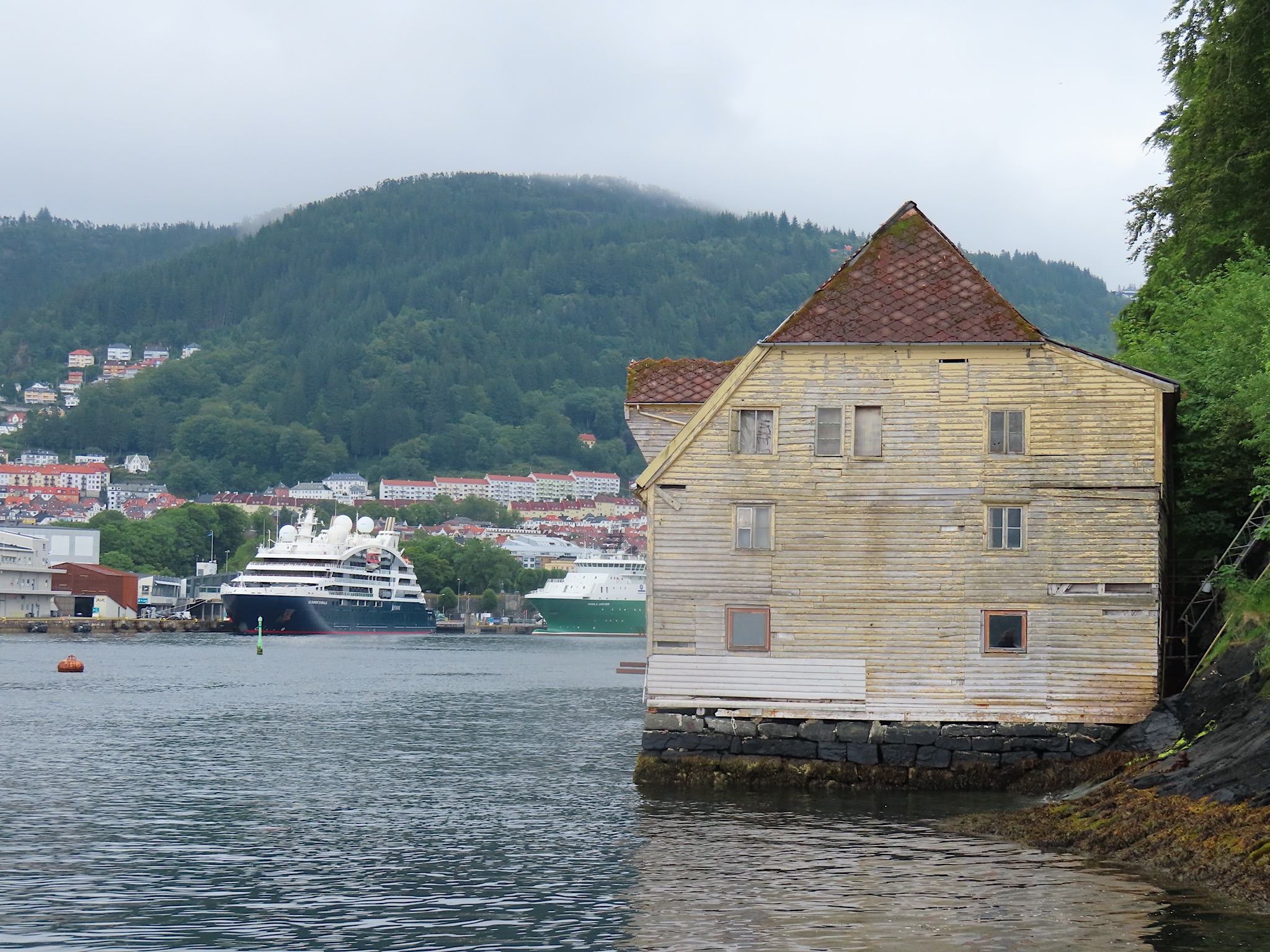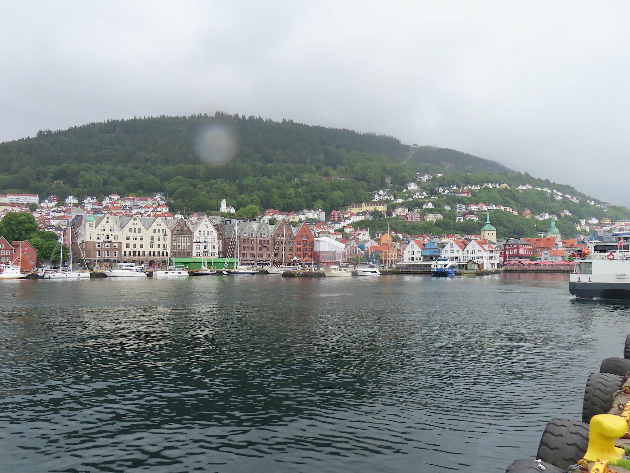 Als we wakker worden regent het licht. We besluiten na het ontbijt ten zuiden van Bergen te gaan wandelen in een bosrijk gebied. We bewonderen onderweg de rudimenten van een oud Cisterciënzerklooster uit 1160. Onderweg ontmoeten we een gezellige oudere Noorse dame die honderduit vertelt. Ze heeft connecties met Nederland via de voorvaderen van haar man (van Erpecum) vertelt ze vol trots.