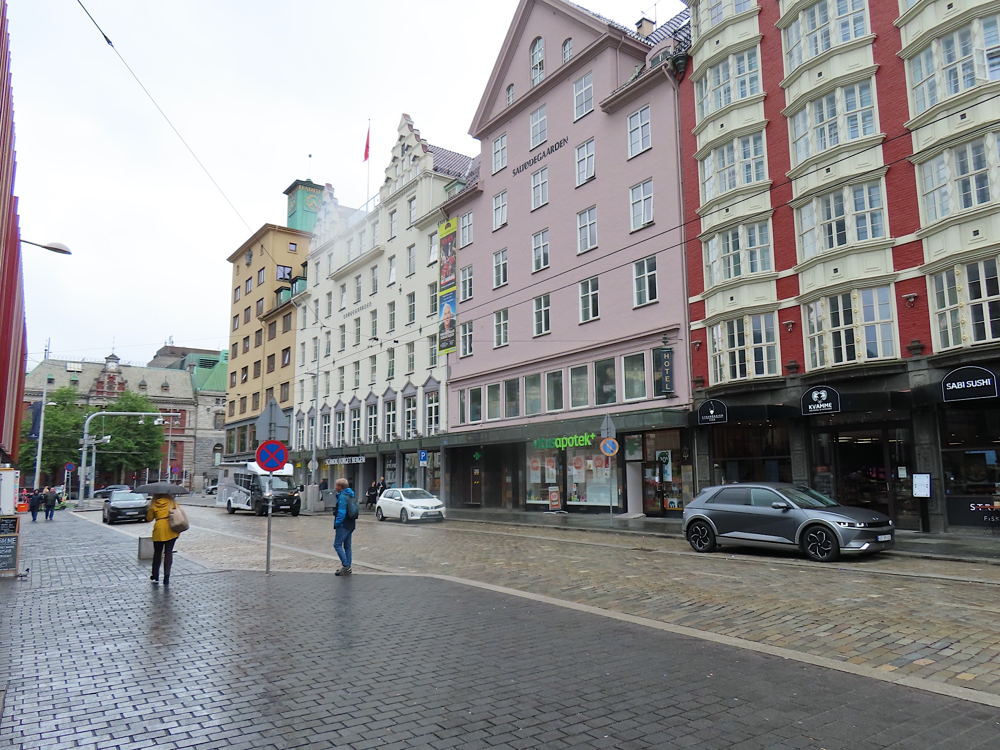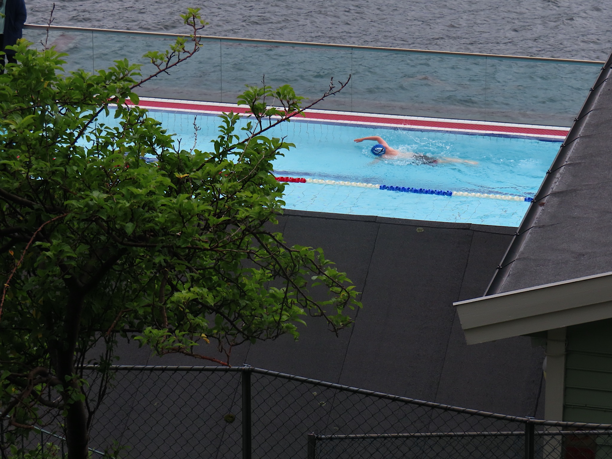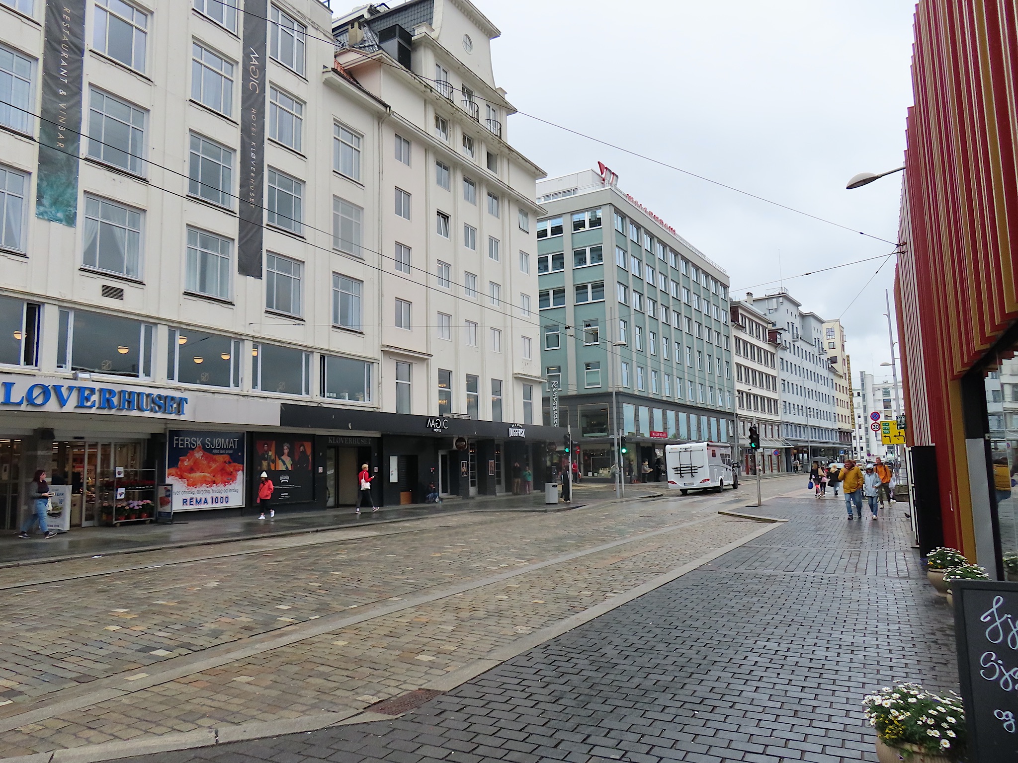 Tegen drieën gaan we met de auto naar de zuidkant (is eigenlijk een grote landtong) van het centrum. Eigenlijk mooier dan Bryggen. Sjieke winkels en mooie parken. We wandelen een flink stuk en zien veel leuke plekjes zoals een openlucht zwembad in zee.