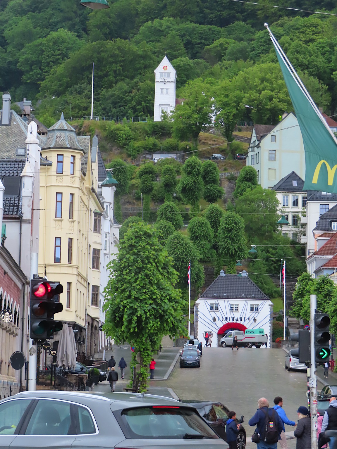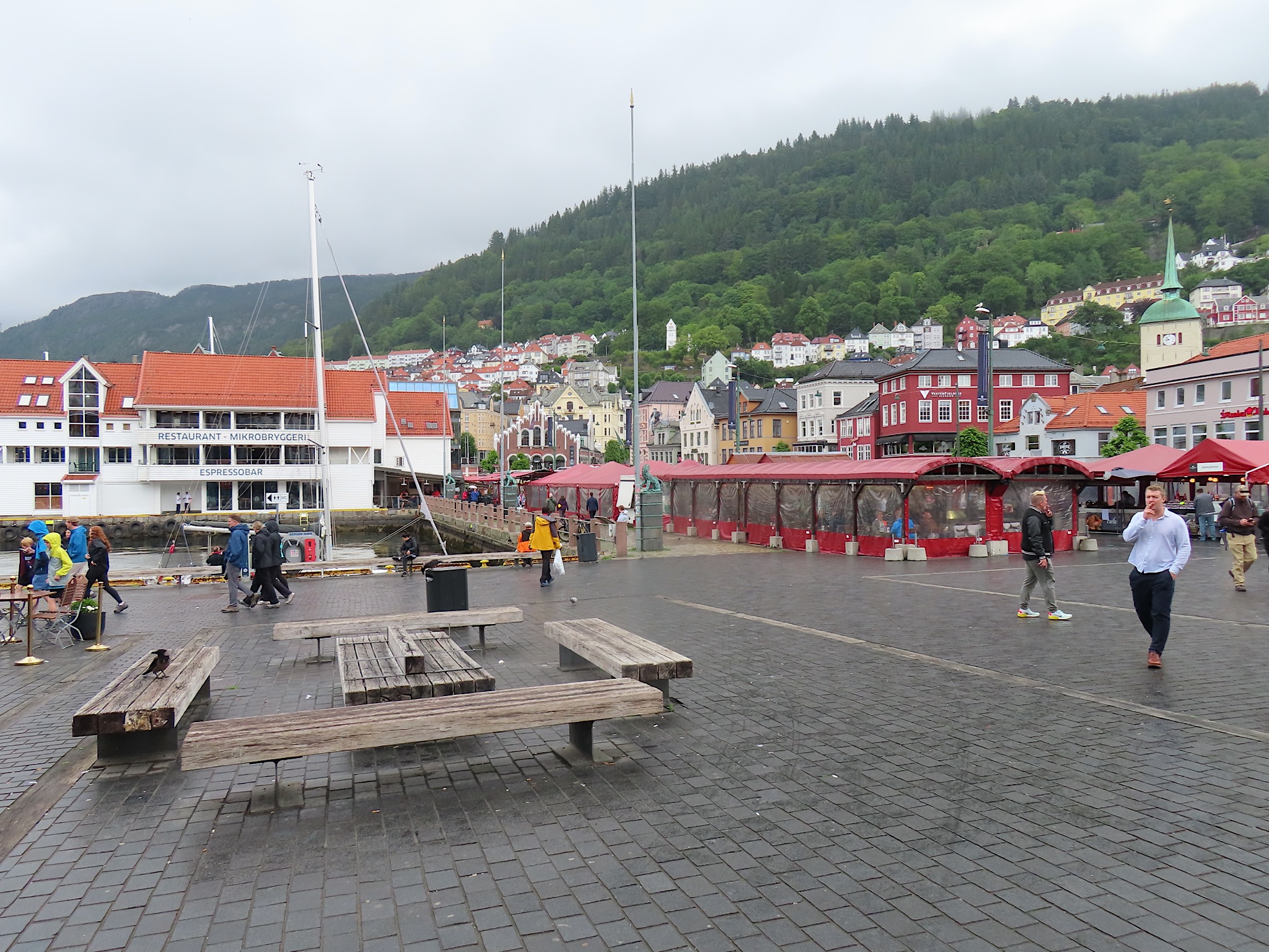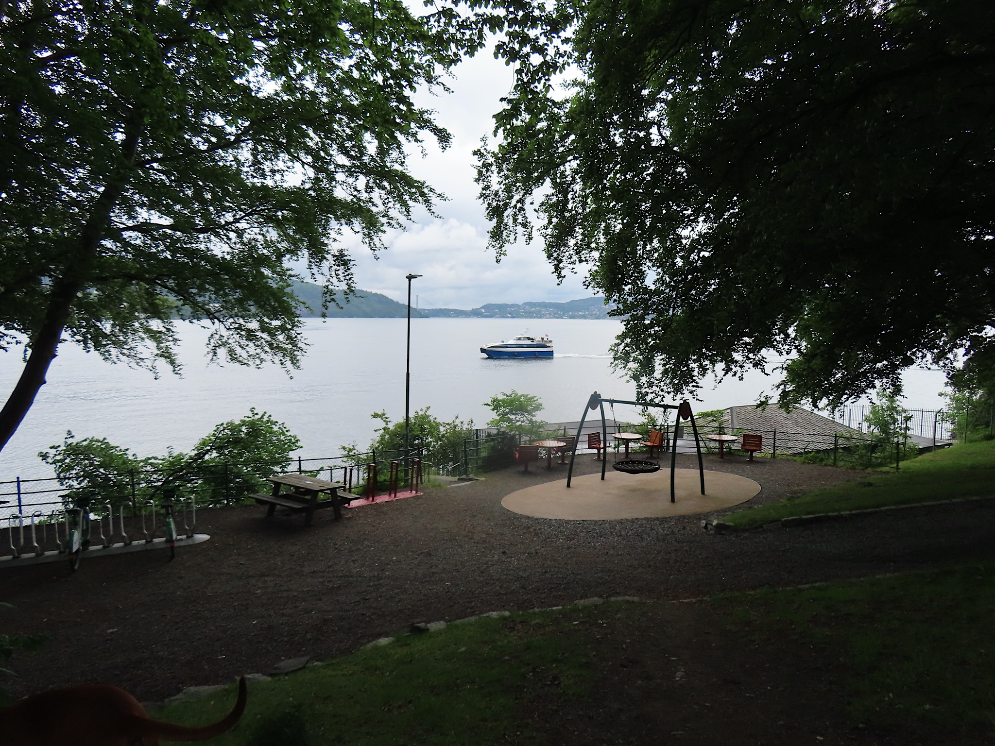 Tegen drieën gaan we met de auto naar de zuidkant (is eigenlijk een grote landtong) van het centrum. Eigenlijk mooier dan Bryggen. Sjieke winkels en mooie parken. We wandelen een flink stuk en zien veel leuke plekjes zoals een openlucht zwembad in zee.