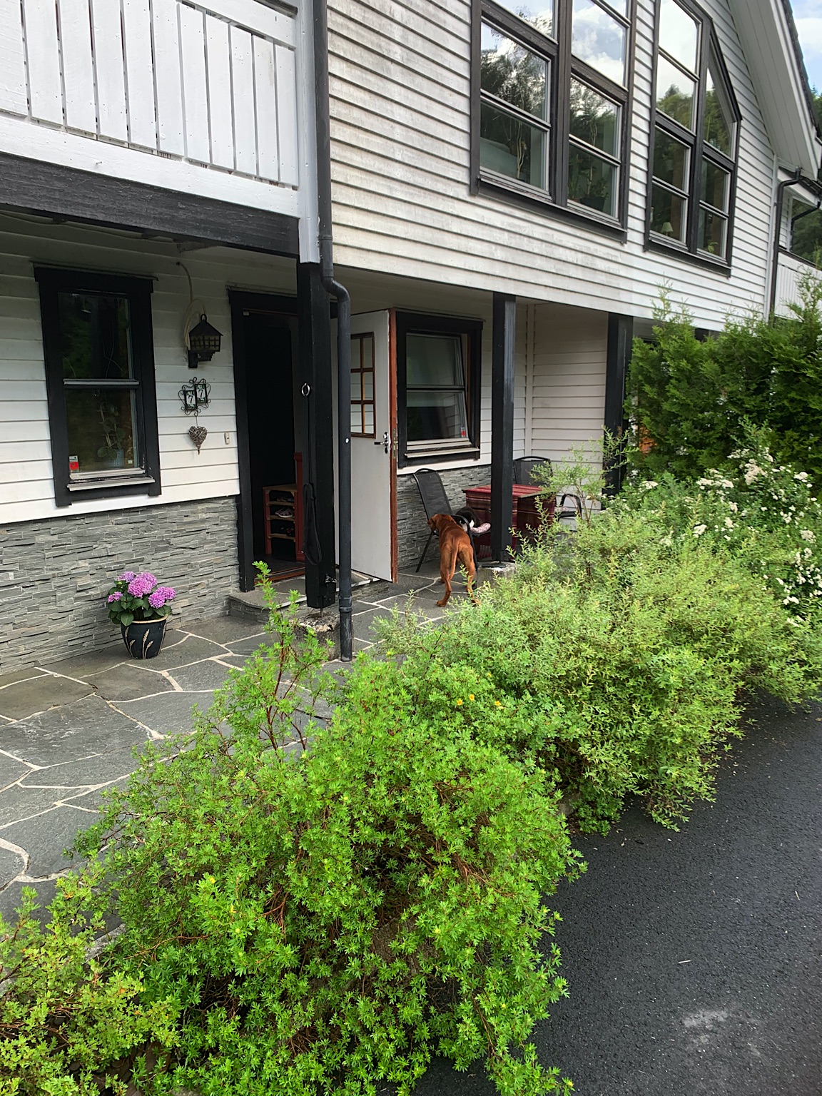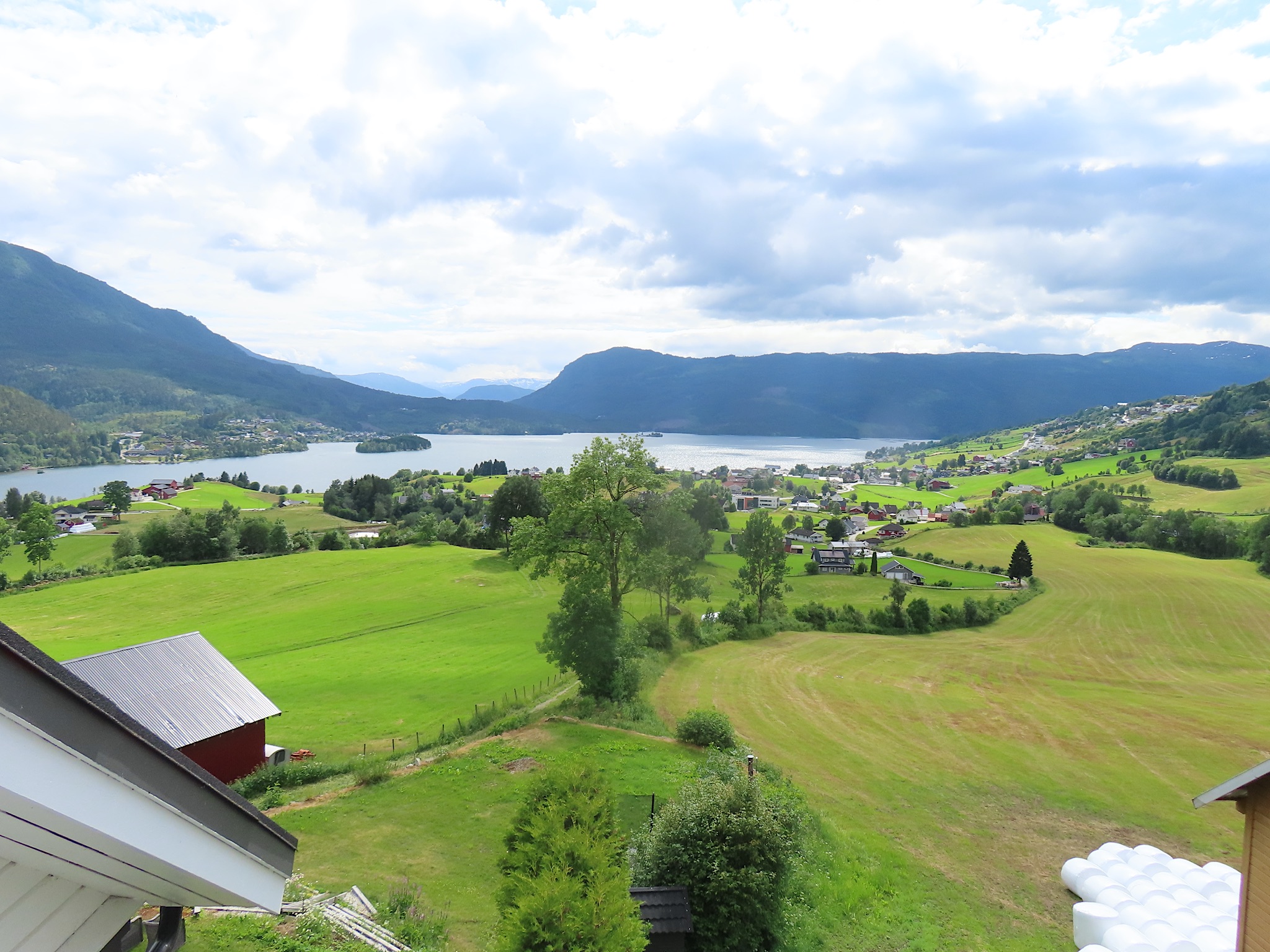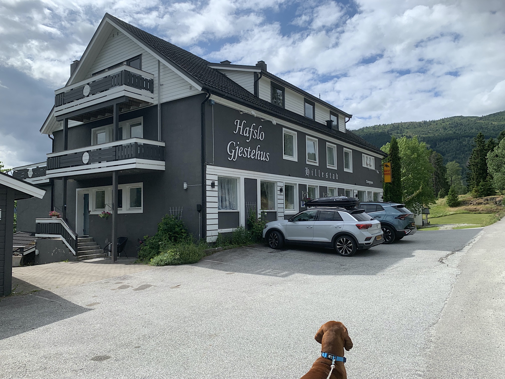 We dalen langzaam af naar opnieuw een pontje. Als we over zijn resteert ons nog 24km naar Hafslo. Dat stukje gast vlot. We zitten op de 3e etage en hebben een prachtig uitzicht over meer en bergen. De ontvangst door Kikki is allervriendelijkst. Ze geeft ons veel niet toeristische tips. We gaan er de komende dagen van genieten
