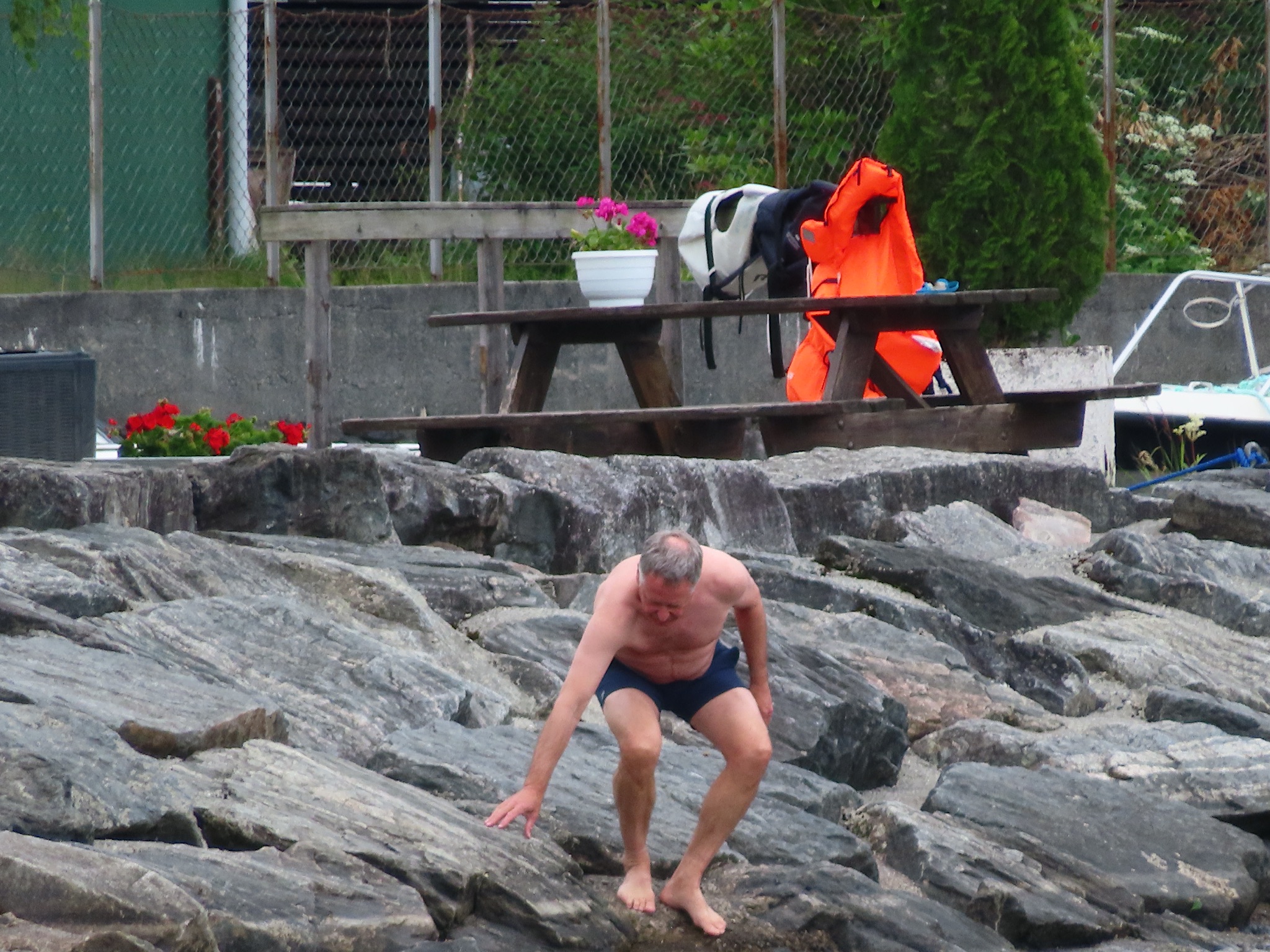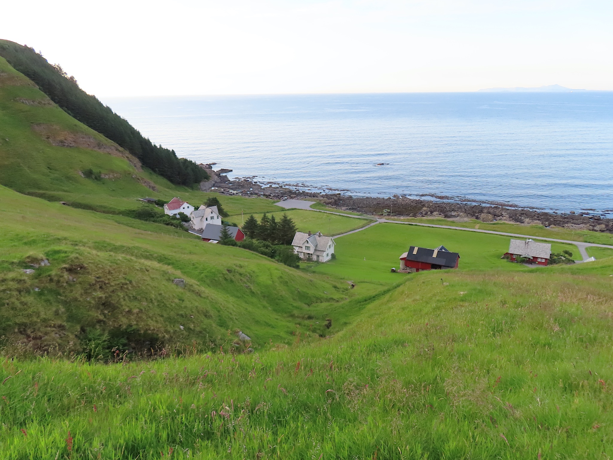 We nemen nu weg 15 richting Stryn. Die weg is goed te bereiden. Bij Grodas aan het diepste meer van de wereld Horninvatnet slaan we af naar de E39 richting het Oosten. We stoppen daar om aan het meer te lunchen. Vanaf de picknicktafels hebben we een mooi uitzicht over dit kraakheldere meer. Nog 100km te gaan dus we stappen na een uurtje weer in. Vele tunnels later naderen we de kust. We doen nog wat boodschappen bij de Kiwi supermarkt en gooien de tank vol. Na 30km eilandhoppen komen we aan op Runde. Prachtig eiland. Met ChatGPT krijg je dit als je vraagt een reisverslag te schrijven over een bezoek aan Runde: