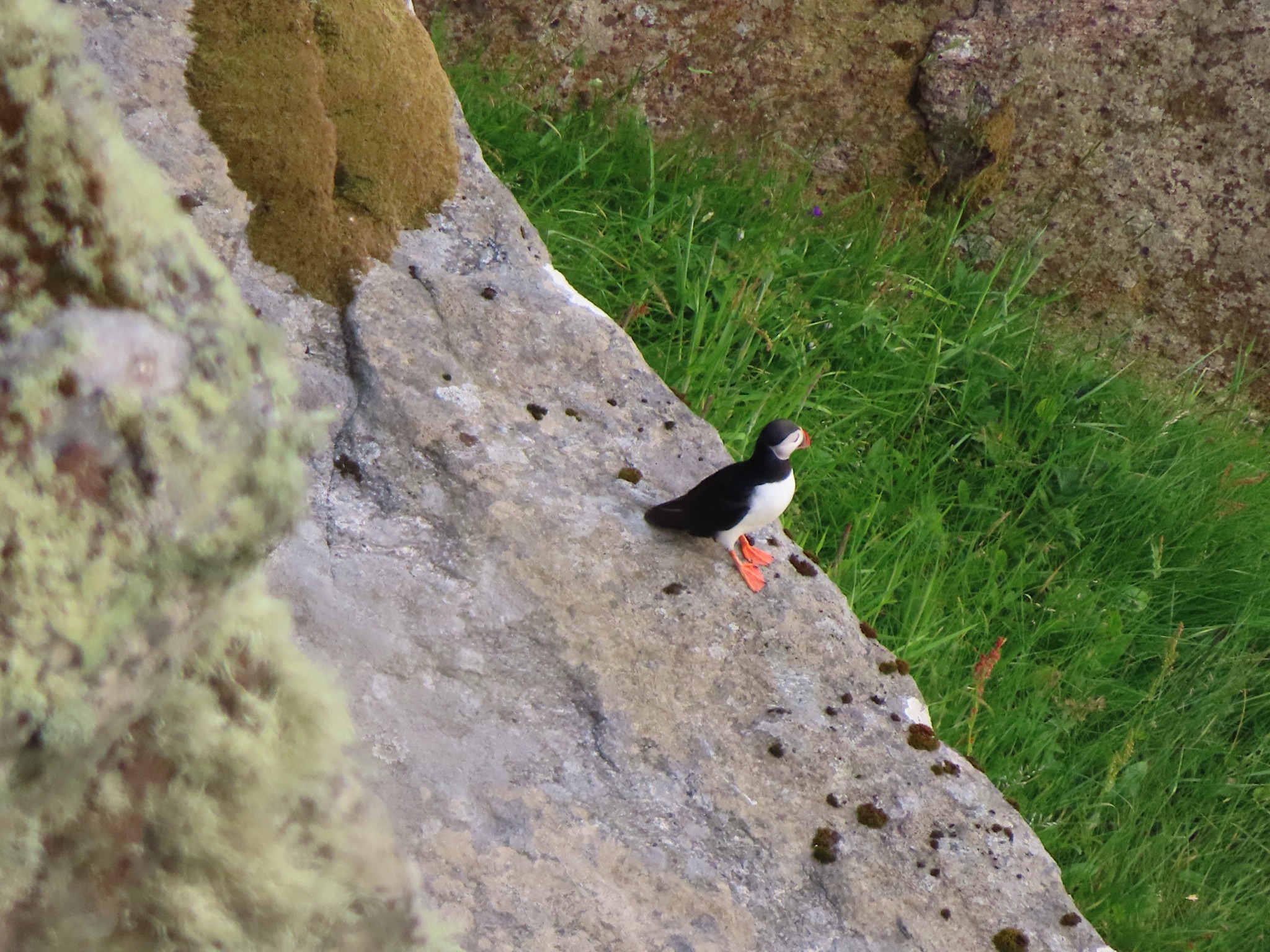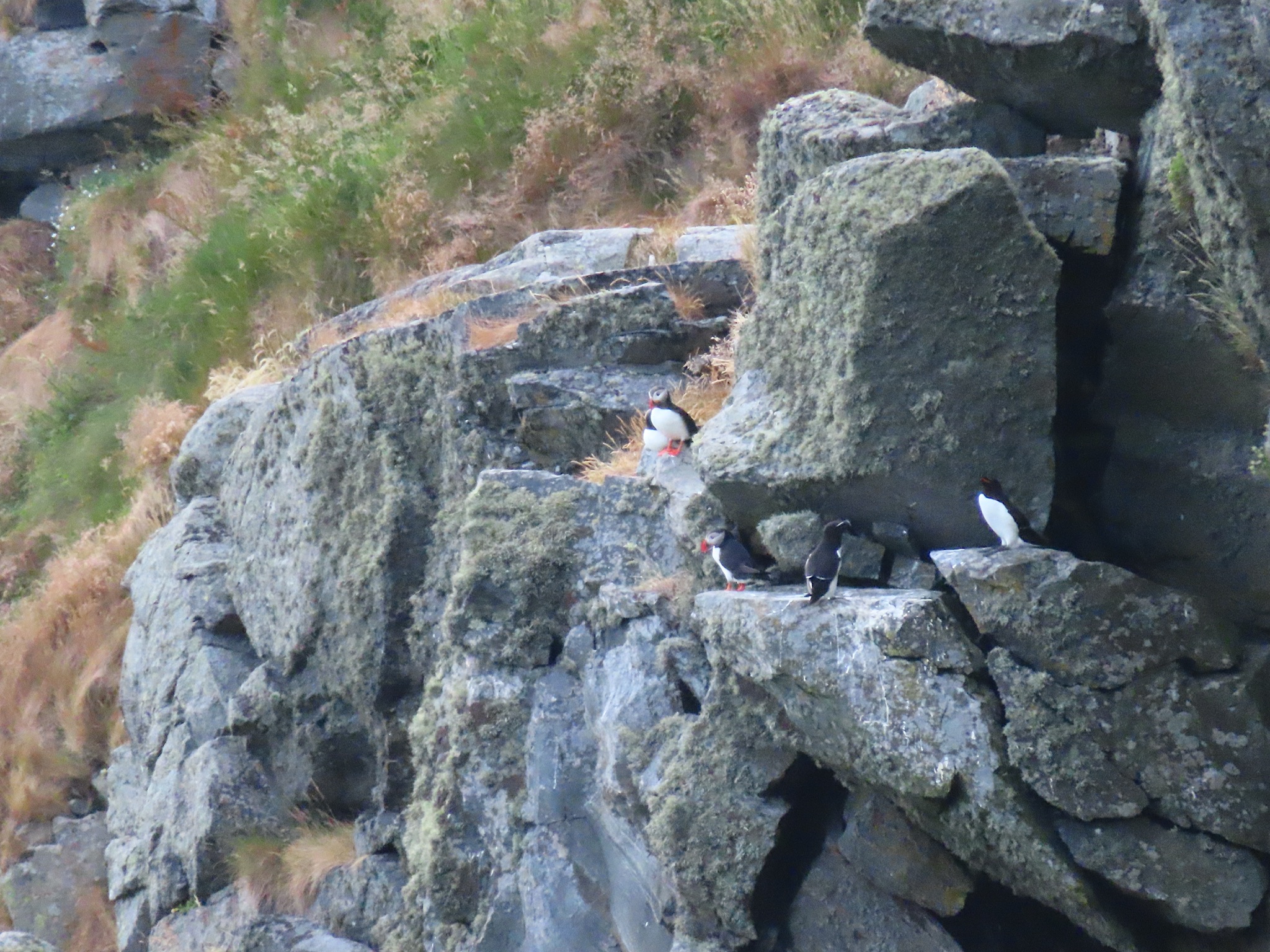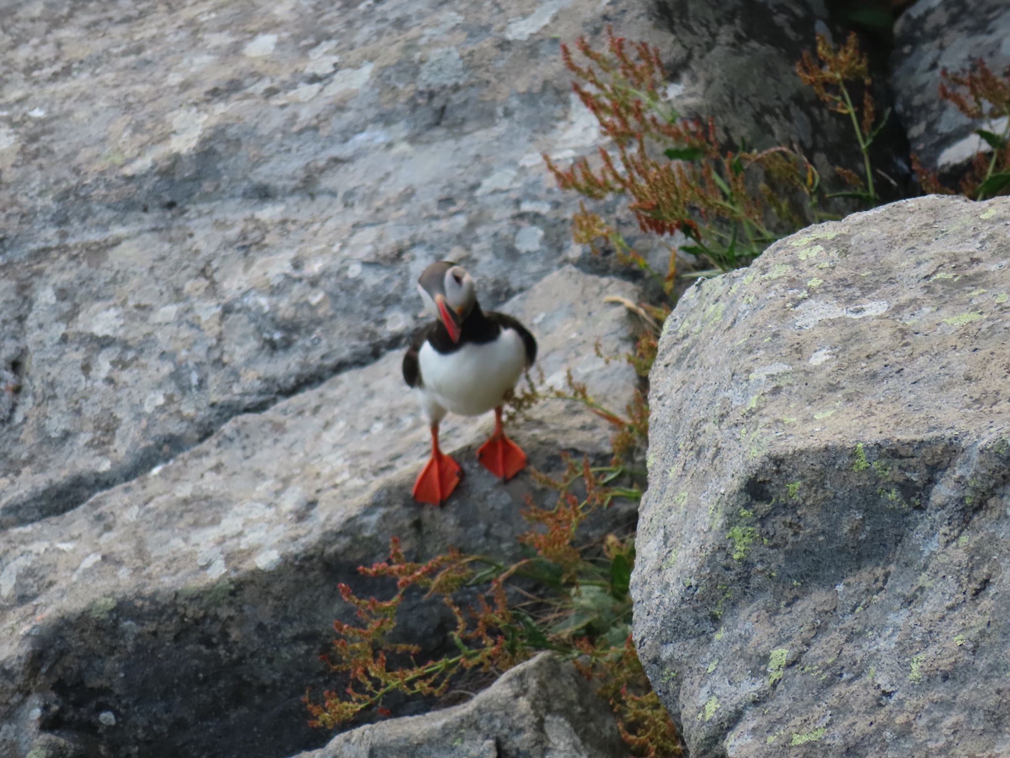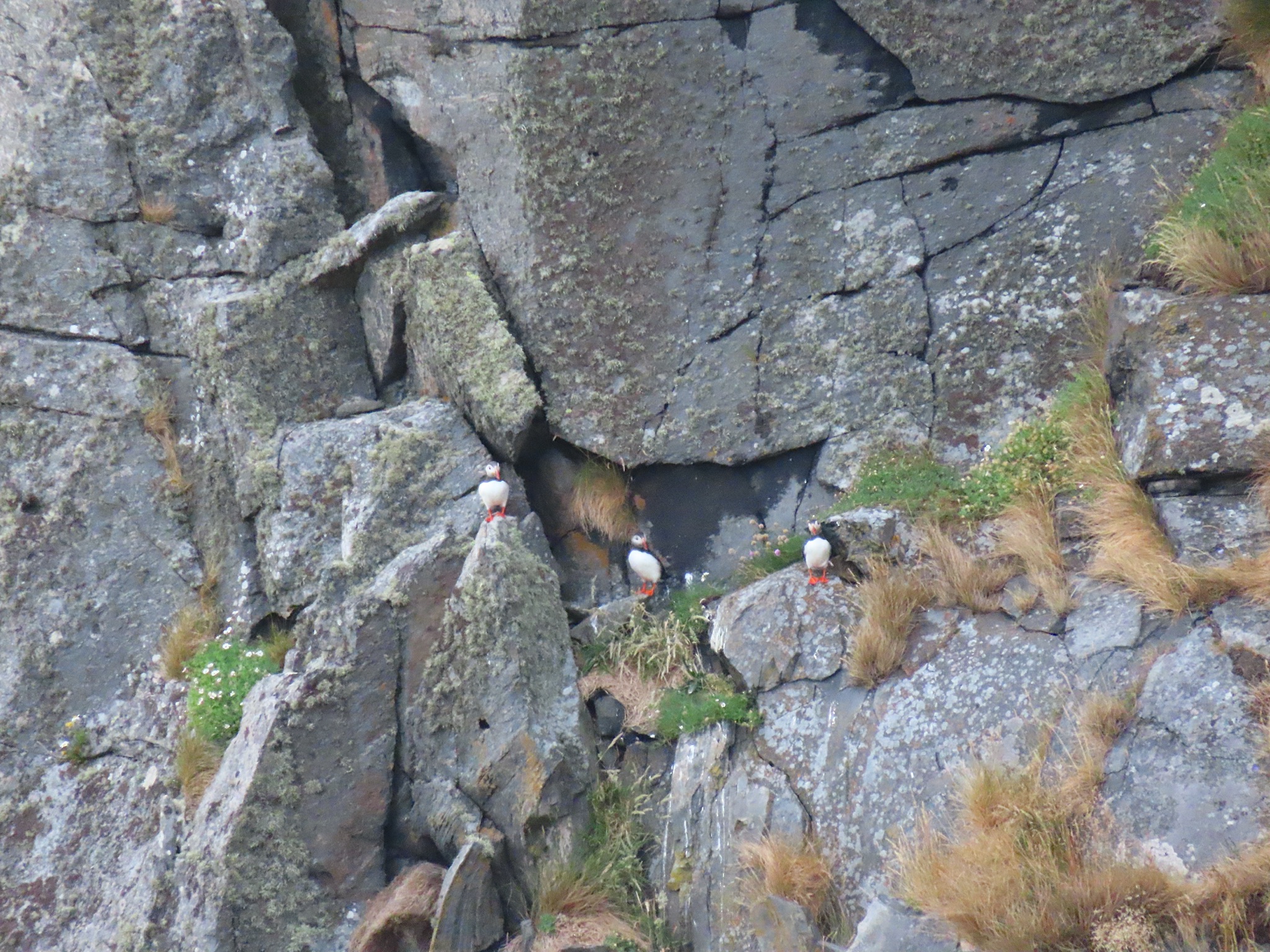 Ik begon mijn verkenningstocht langs de grillige kustlijn en werd meteen begroet door kleurrijke papegaaiduikers, elegante alken en krijsende zeemeeuwen. Hun aanwezigheid en het geluid van hun roep vulden de lucht en zorgden voor een onvergetelijke ervaring.