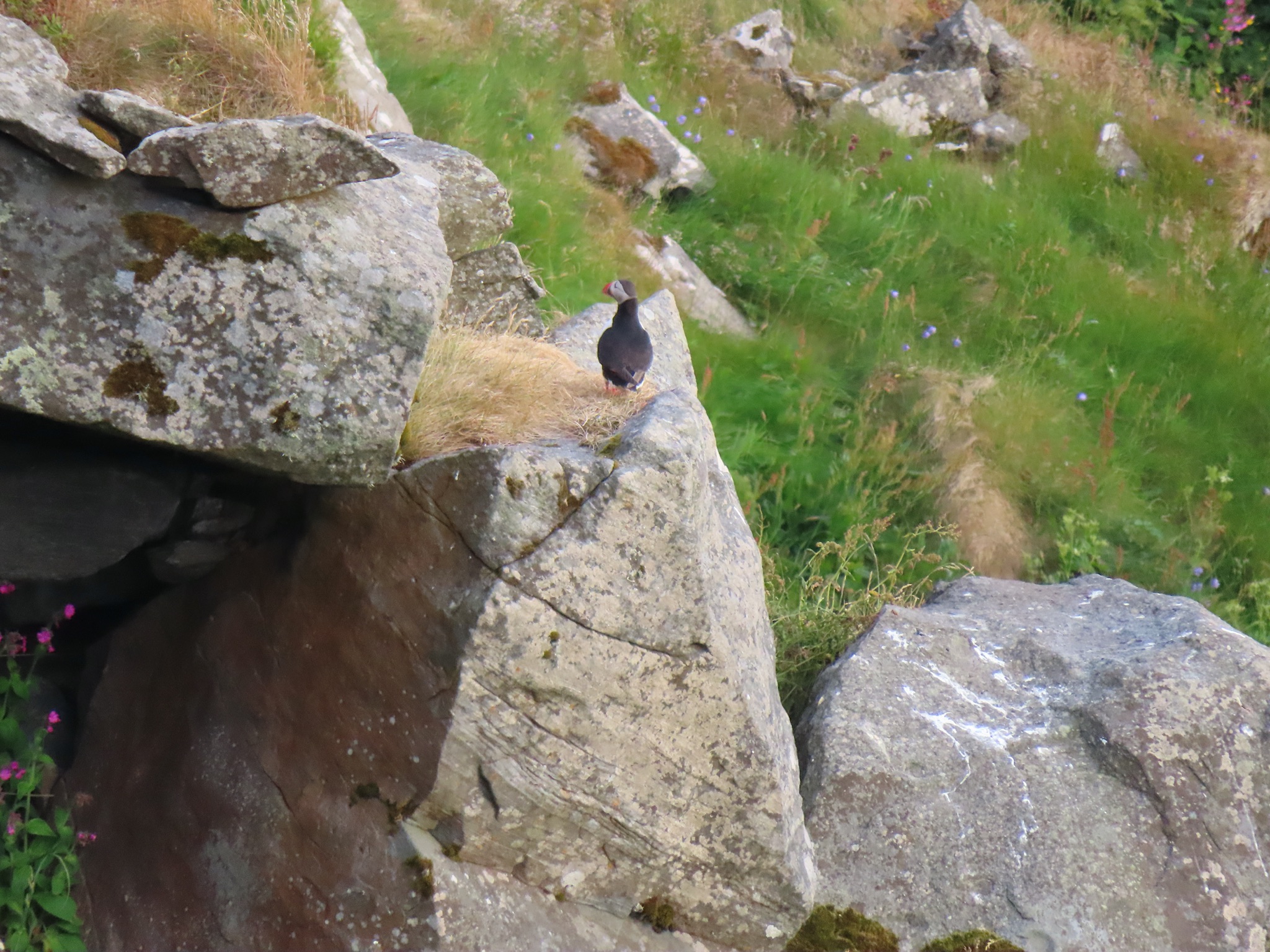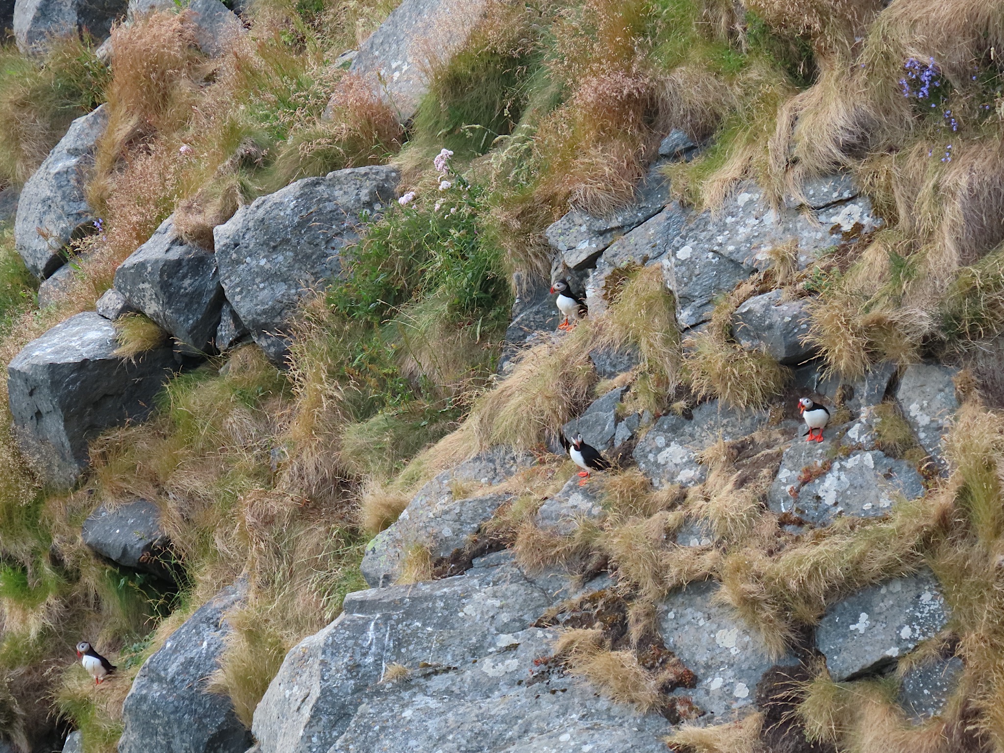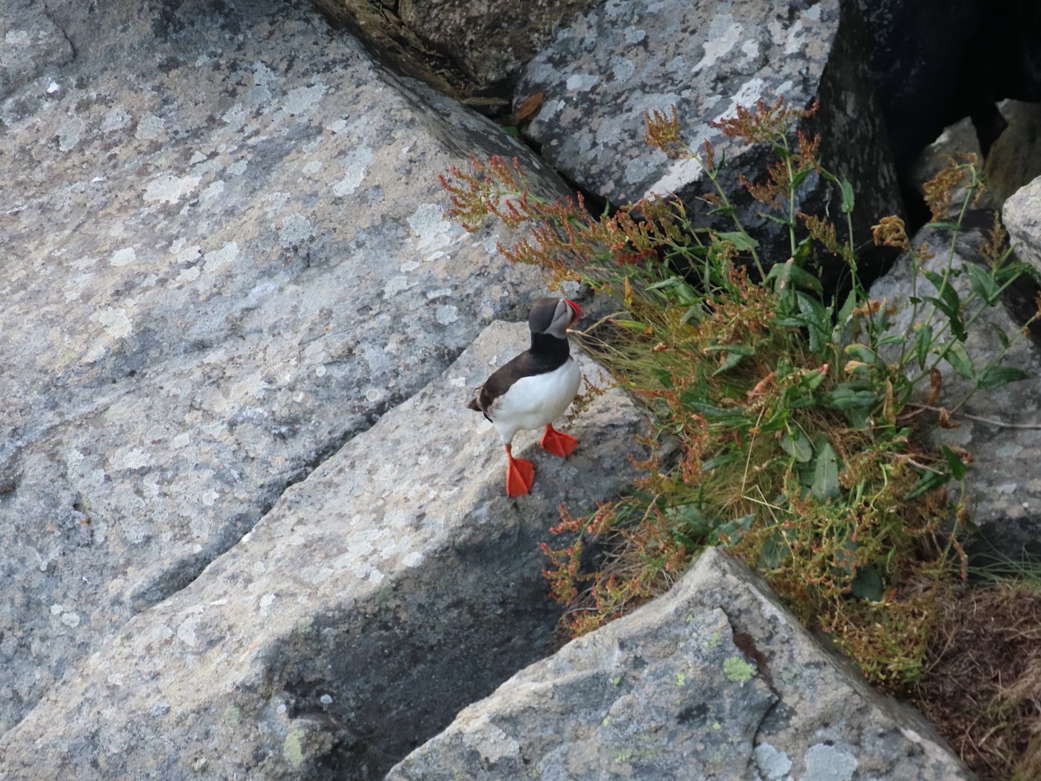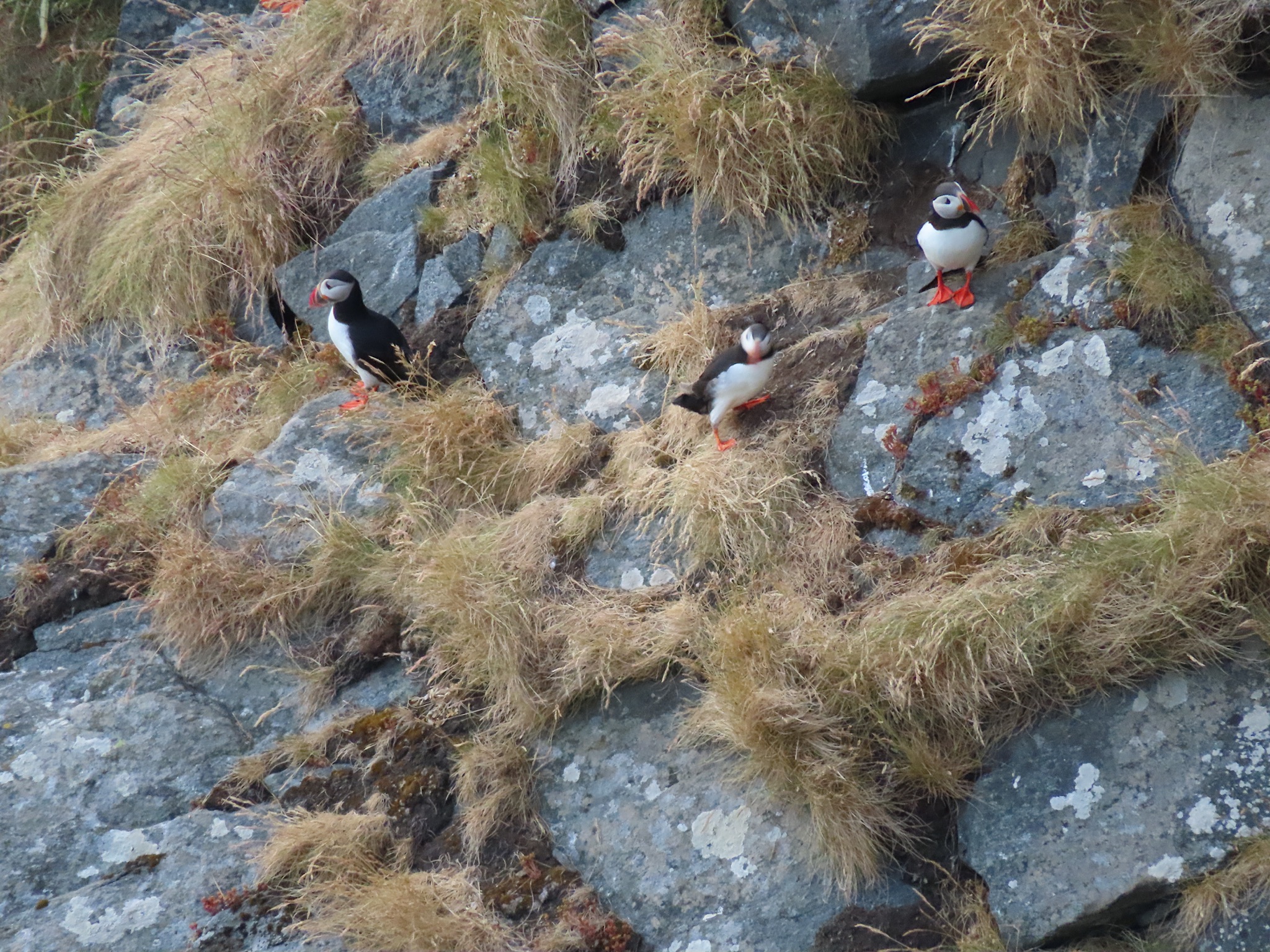 Ik begon mijn verkenningstocht langs de grillige kustlijn en werd meteen begroet door kleurrijke papegaaiduikers, elegante alken en krijsende zeemeeuwen. Hun aanwezigheid en het geluid van hun roep vulden de lucht en zorgden voor een onvergetelijke ervaring.