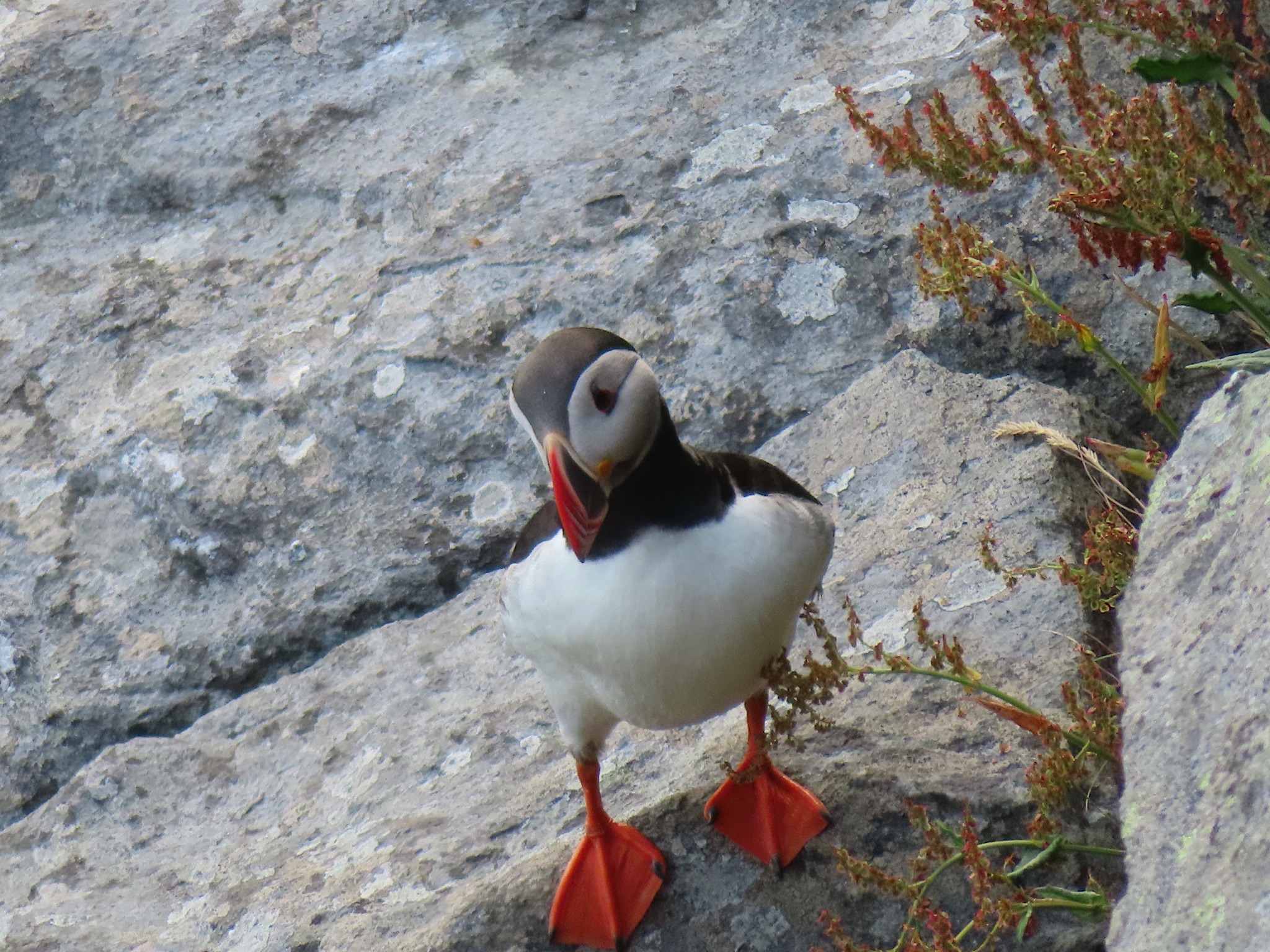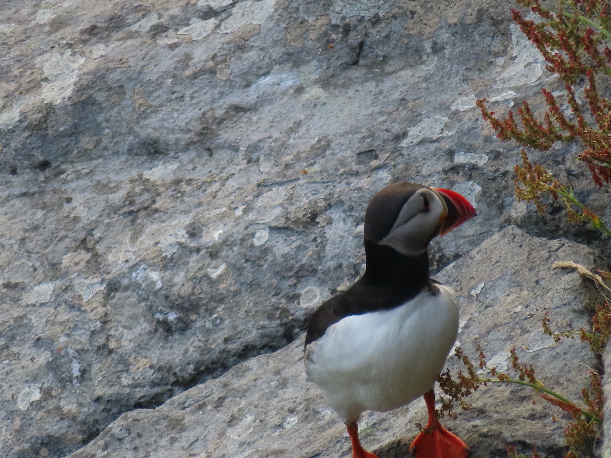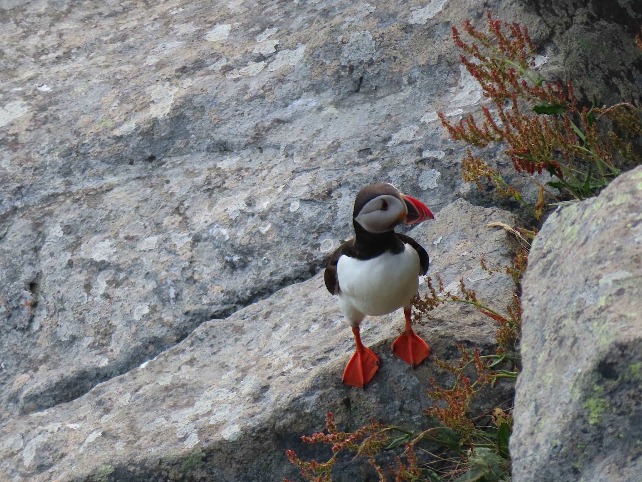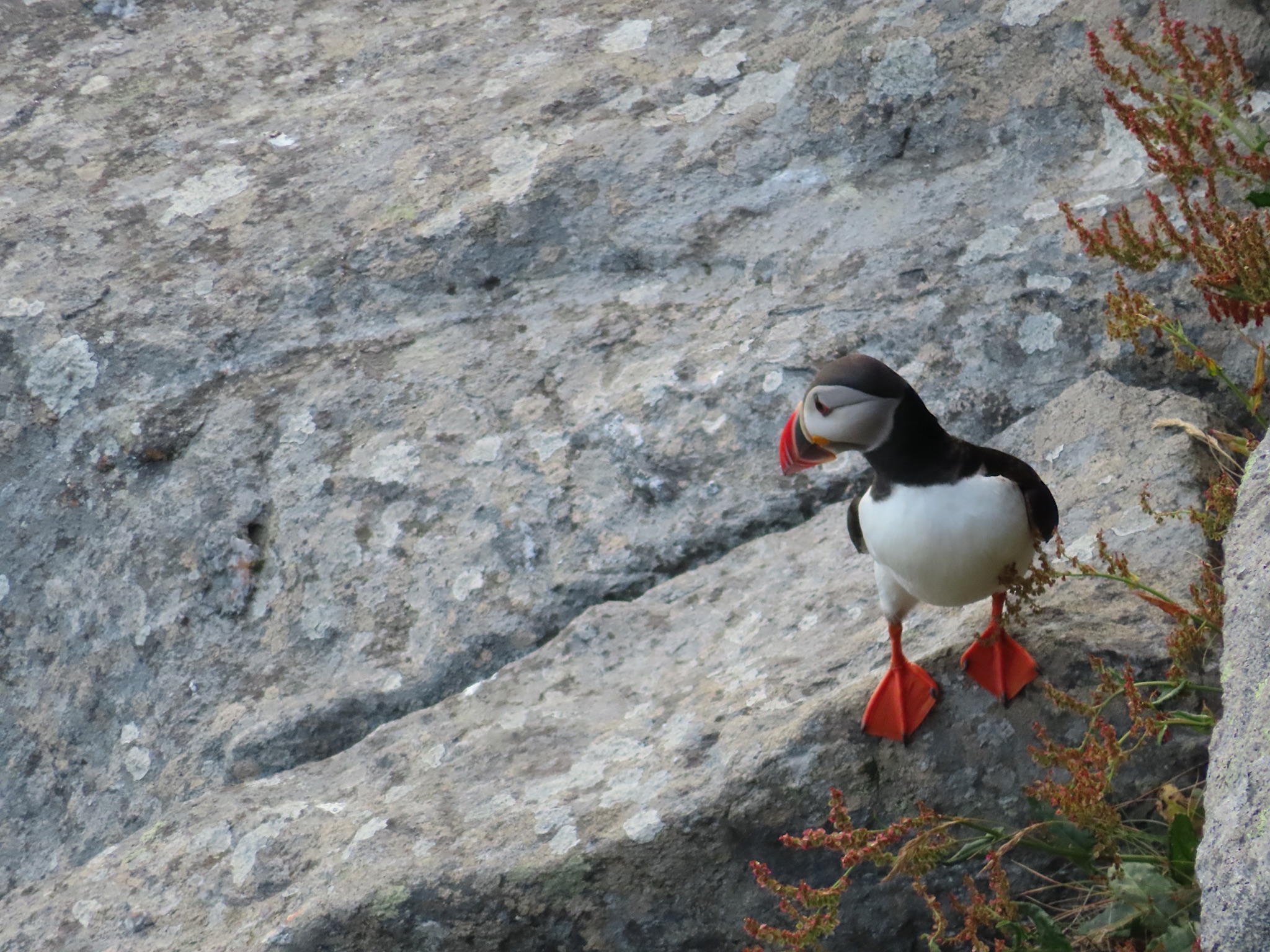 Ik begon mijn verkenningstocht langs de grillige kustlijn en werd meteen begroet door kleurrijke papegaaiduikers, elegante alken en krijsende zeemeeuwen. Hun aanwezigheid en het geluid van hun roep vulden de lucht en zorgden voor een onvergetelijke ervaring.