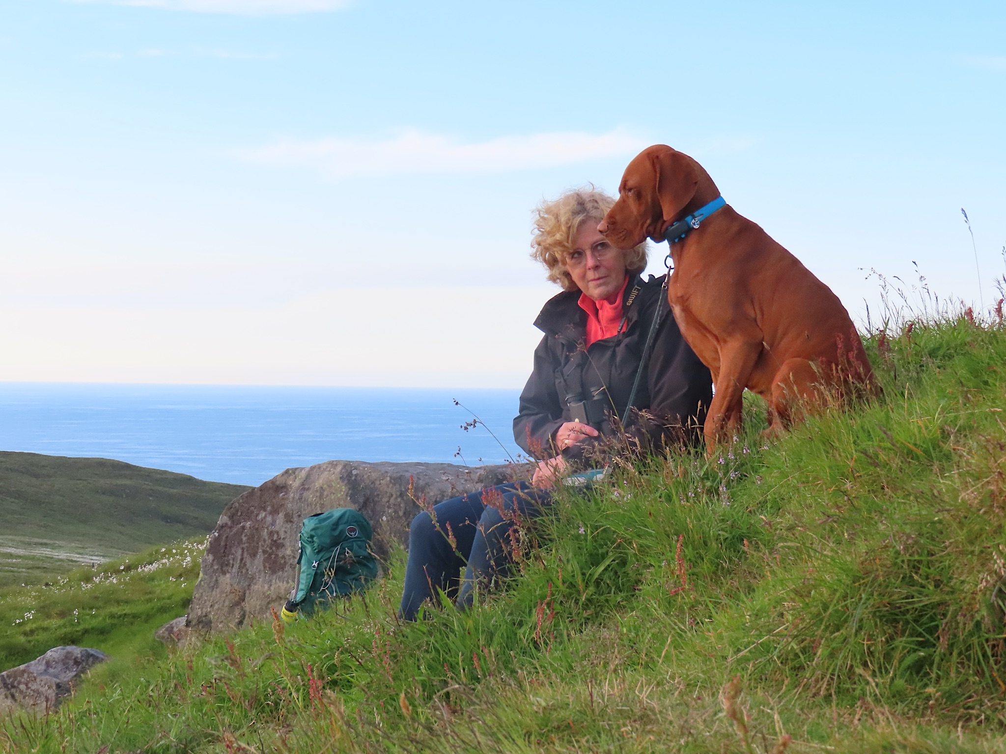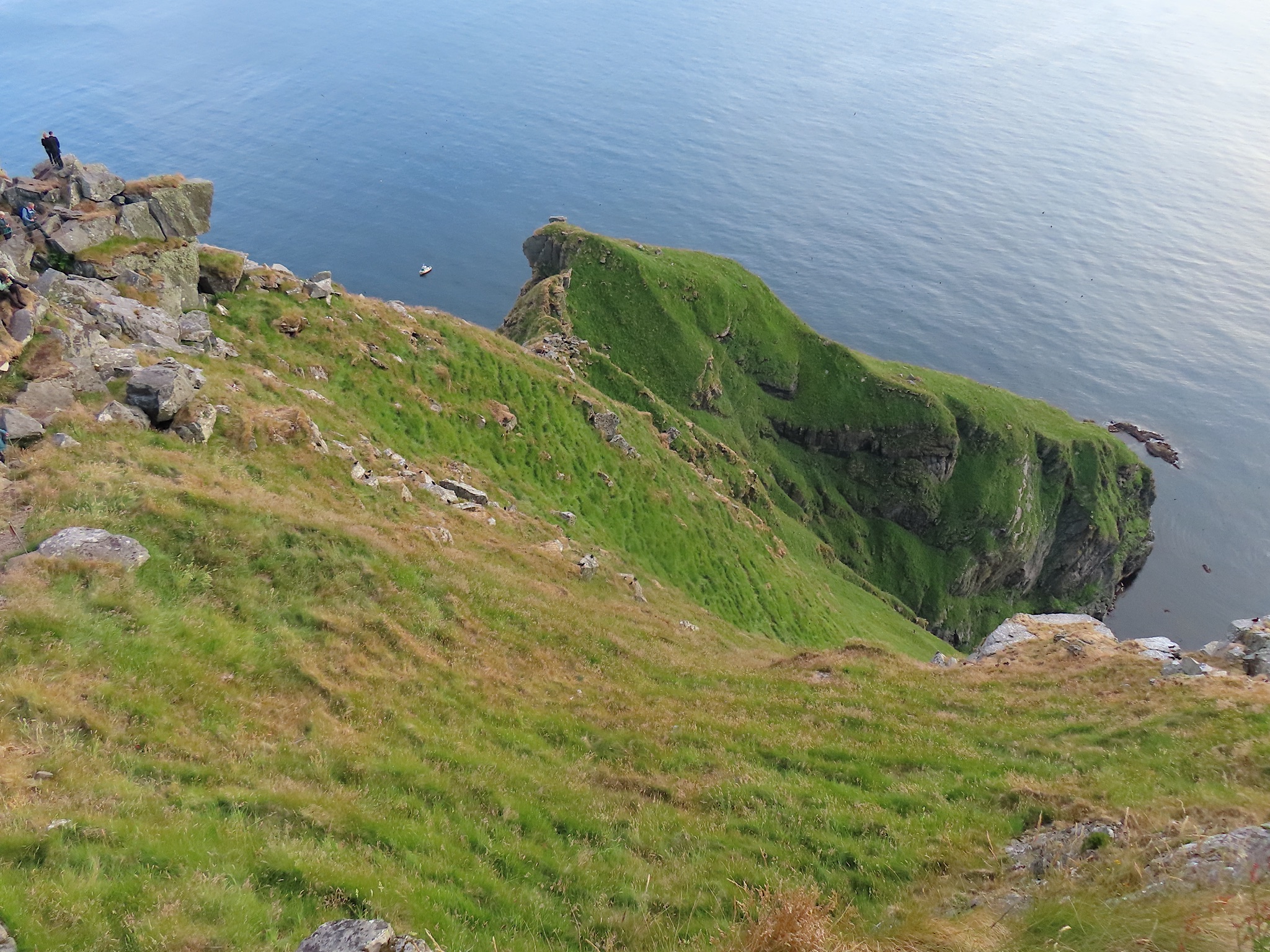 Klinkt wel wat overdreven toch dacht ik. Maar na een avondklimwandeling van 45 minuten naar de westrotskant van het eiland waar we de Puffin en de Jan van Gent hopen te zien blijkt er geen woord van overdreven. Wat een beleving.  Overigens zijn we een weddenschap aangegaan met z’n tweeën aangegaan. Wie het eerst een papegaaiduiker ziet krijgt een speciaal kado.