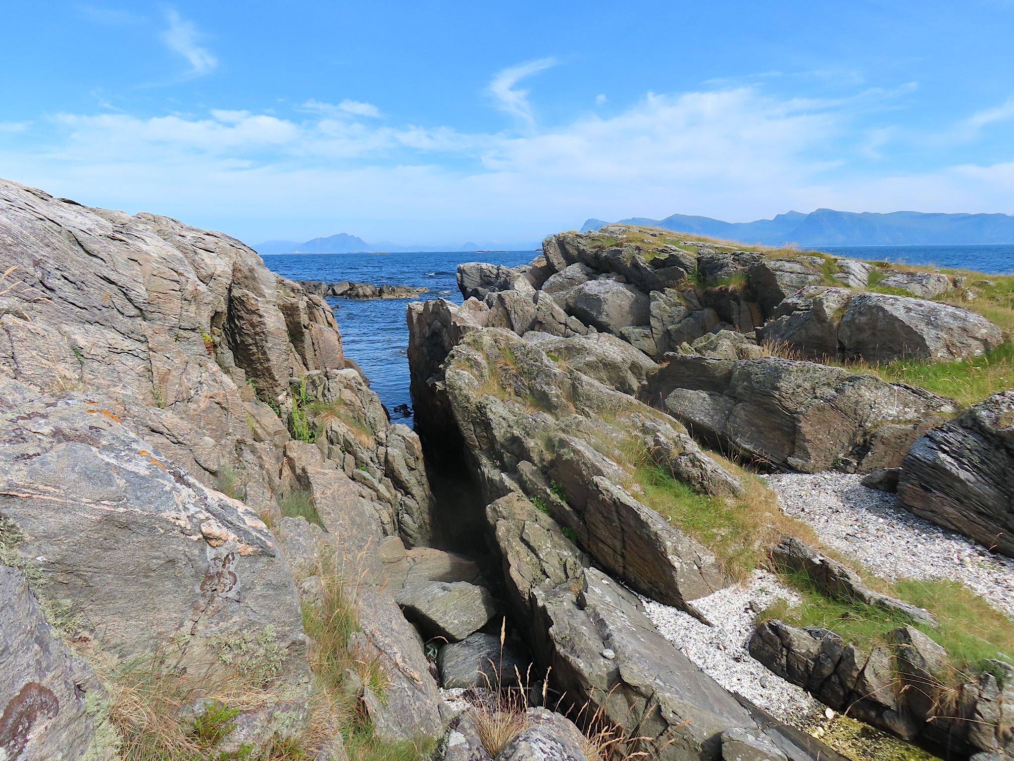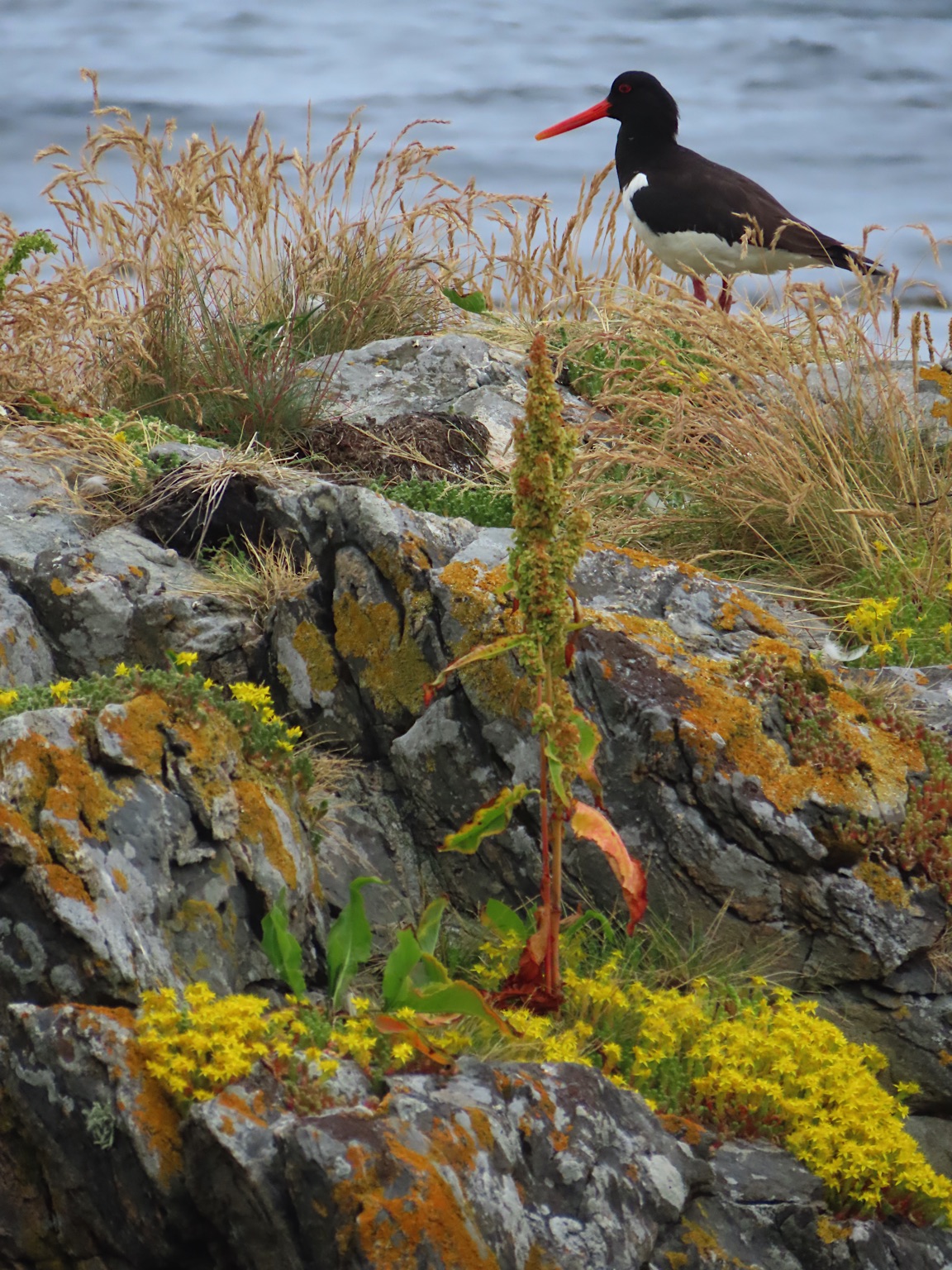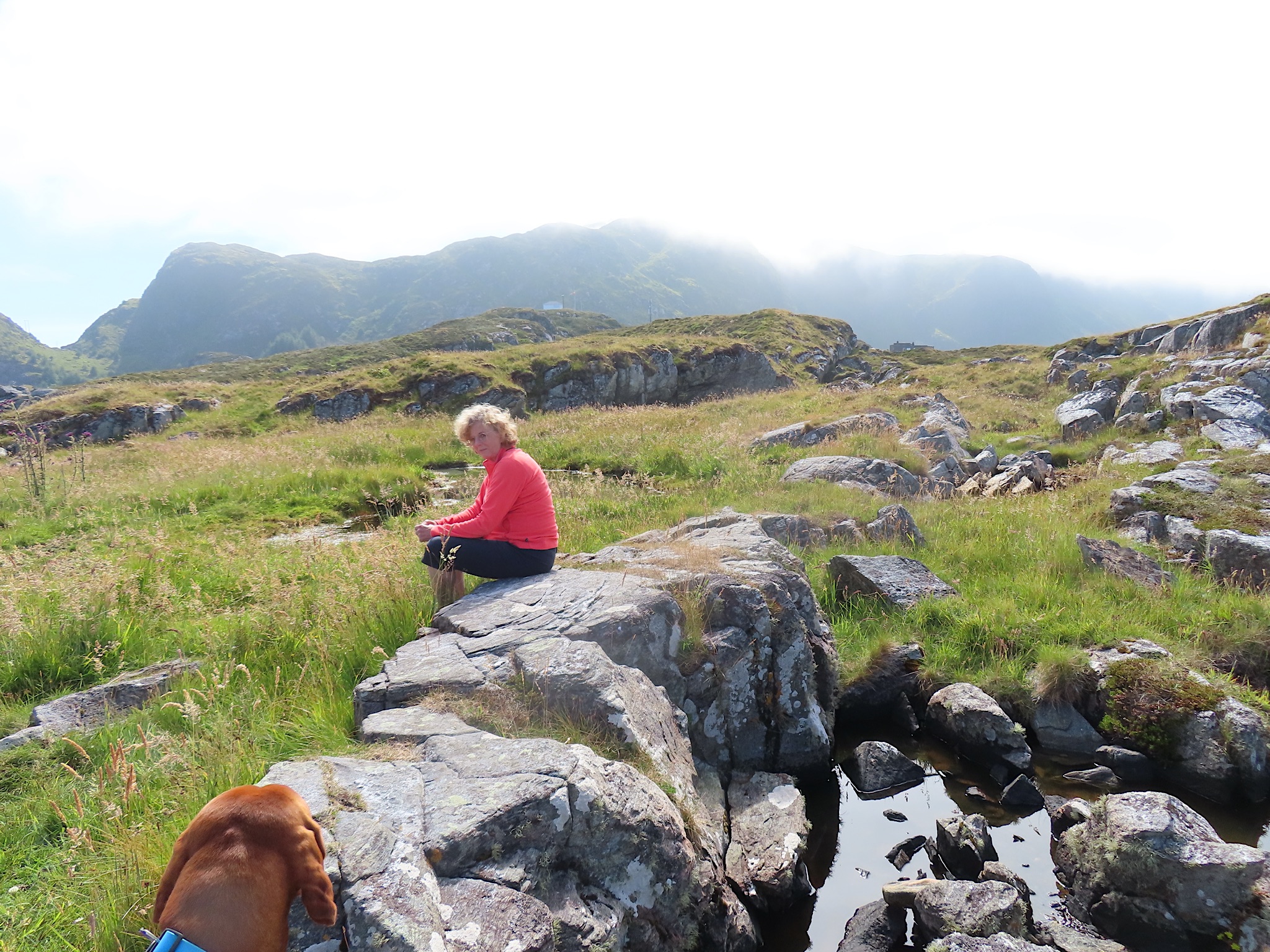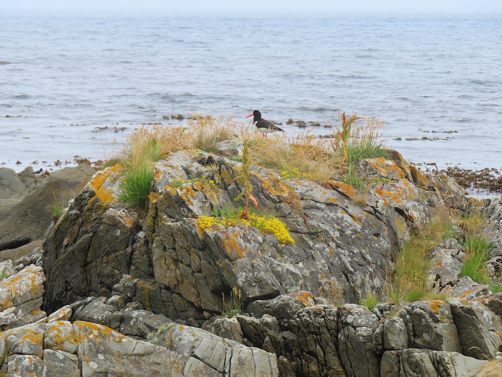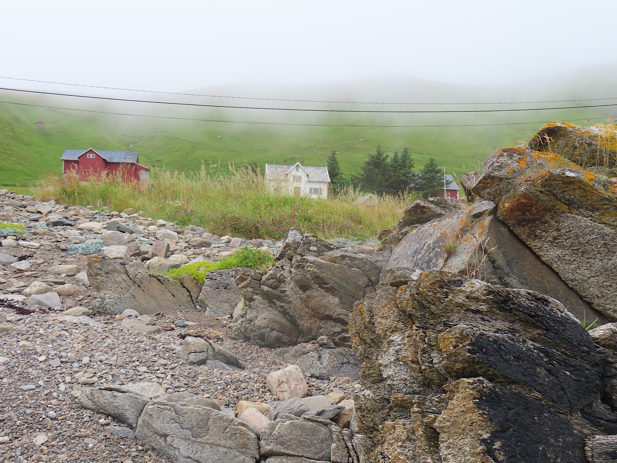 Vandaag de laatste dag op Runde. We rusten uit en genieten van de heerlijke zon. Tineke gaat stenen en schelpen zoeken aan de waterkant tegenover ons huis en heeft daar een lang gesprek met de aankomende wandelen Agnes, de eigenares van ons huis die in het rode huis naast ons witte huis woont. Ik lees wat bij huis. Sambo slaapt bij. Na een uurtje ga met Sambo ook maar eens bij het water kijken. We zien daar behoorlijk wat bijzonder plantjes die we scannen met de PictureThis app. (Zeepostelein, Oesterblad, Muurpeper, Zeeweegbree en de Rimpelroos bijvoorbeeld). De dames zijn net uitgepraat als ik aankom. Er komt inmiddels uit zee langzaam een nevel binnen. In no-time ligt het eiland in de mist. Even snel is alles weer verdwenen en straalt de zon weer.