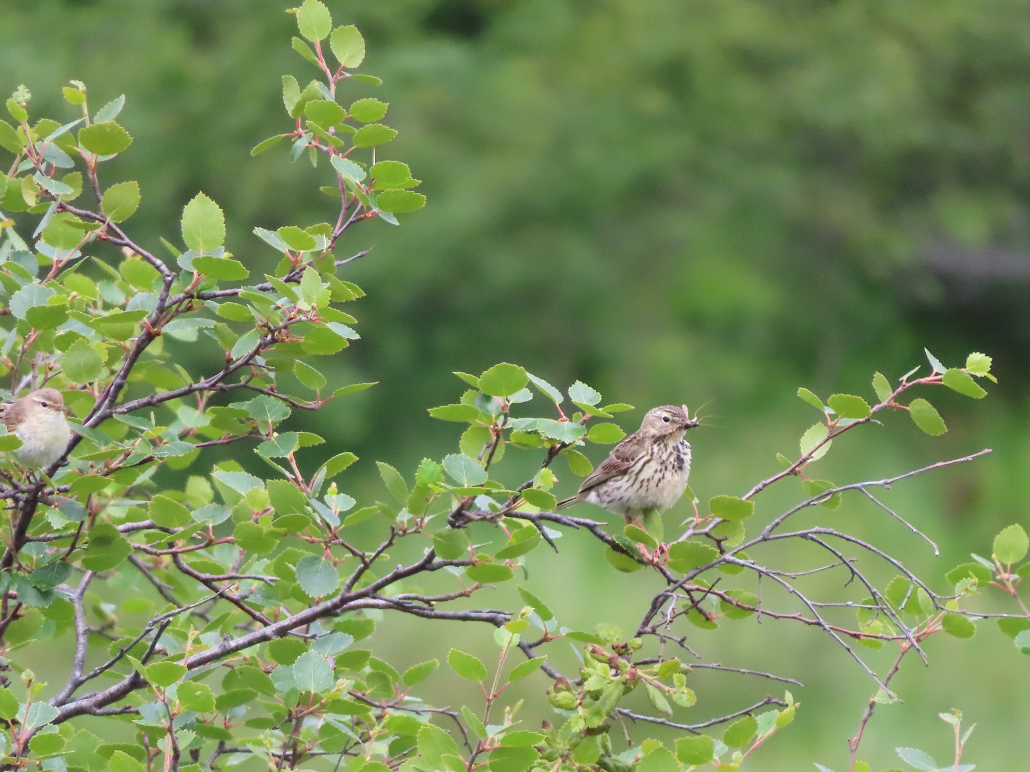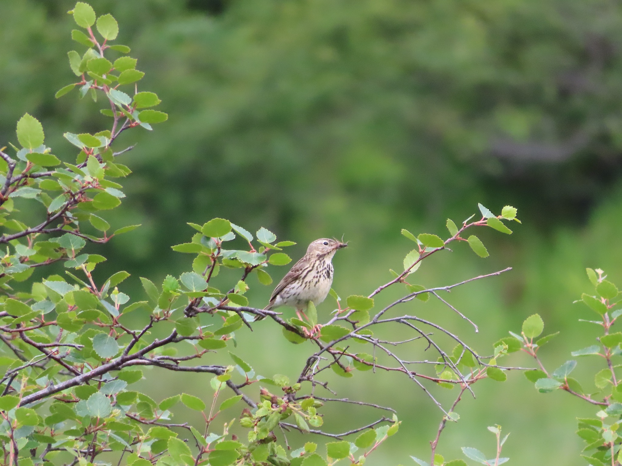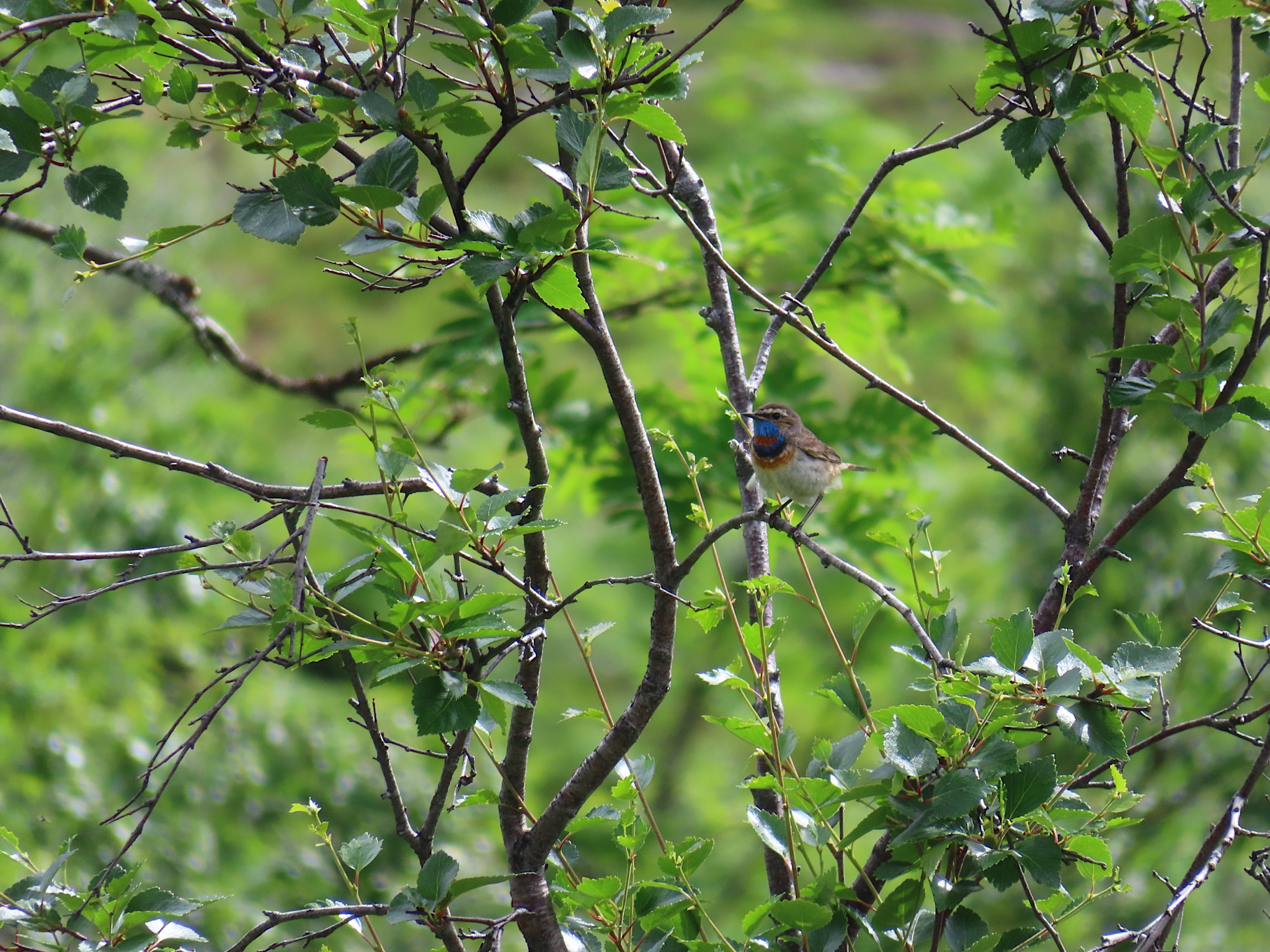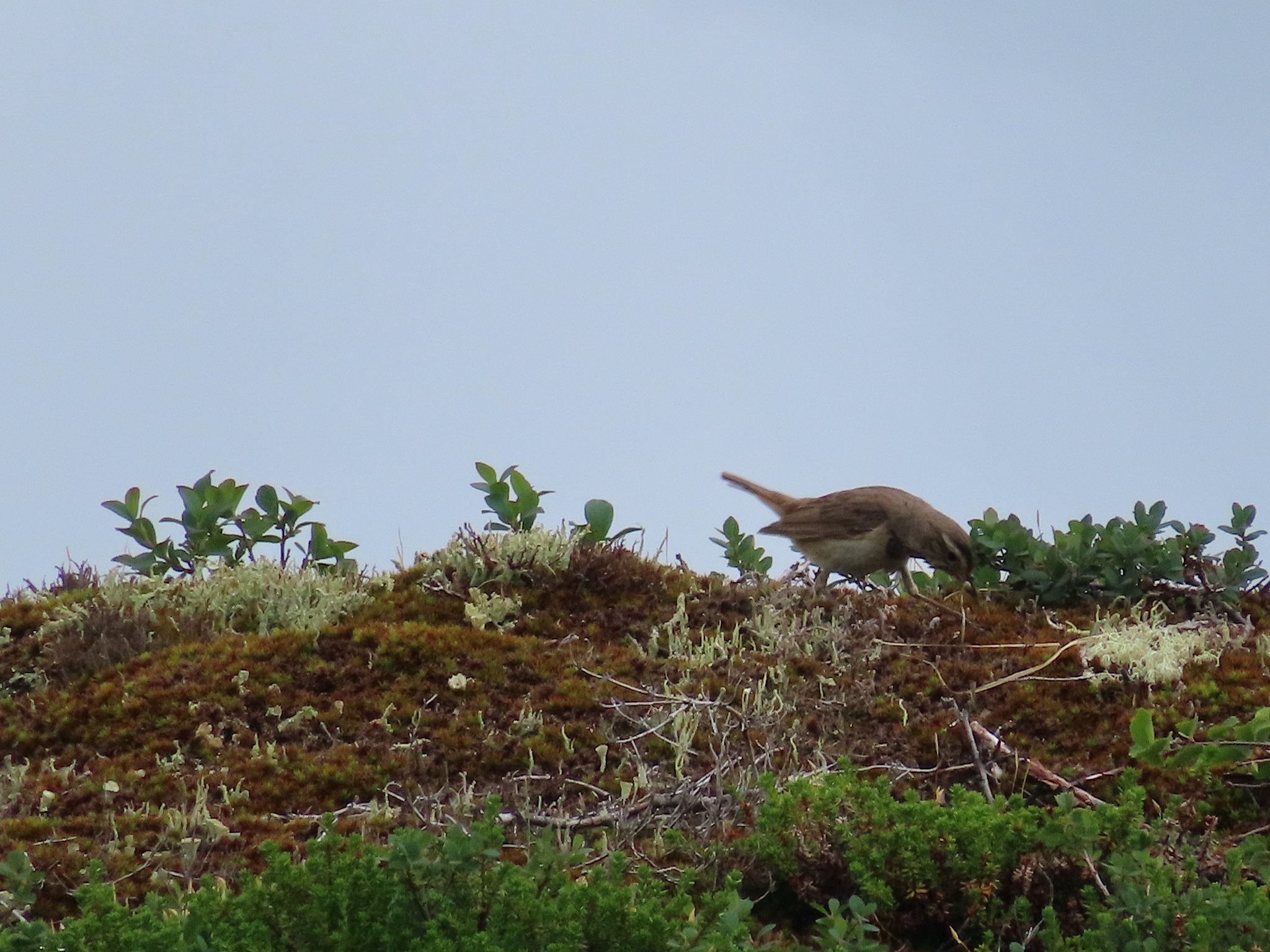 Afdalen doen we niet, dat doen we morgen omdat dit ook onze route is als we naar Røldal vertrekken. We keren dus terug. Weer langs de geiten. We stoppen vlak daarna om een stukje te wandelen. We zien veel leuke vogels waaronder enkele oranje gestipte blauwborsten en prachtige rode barmsijsjes.