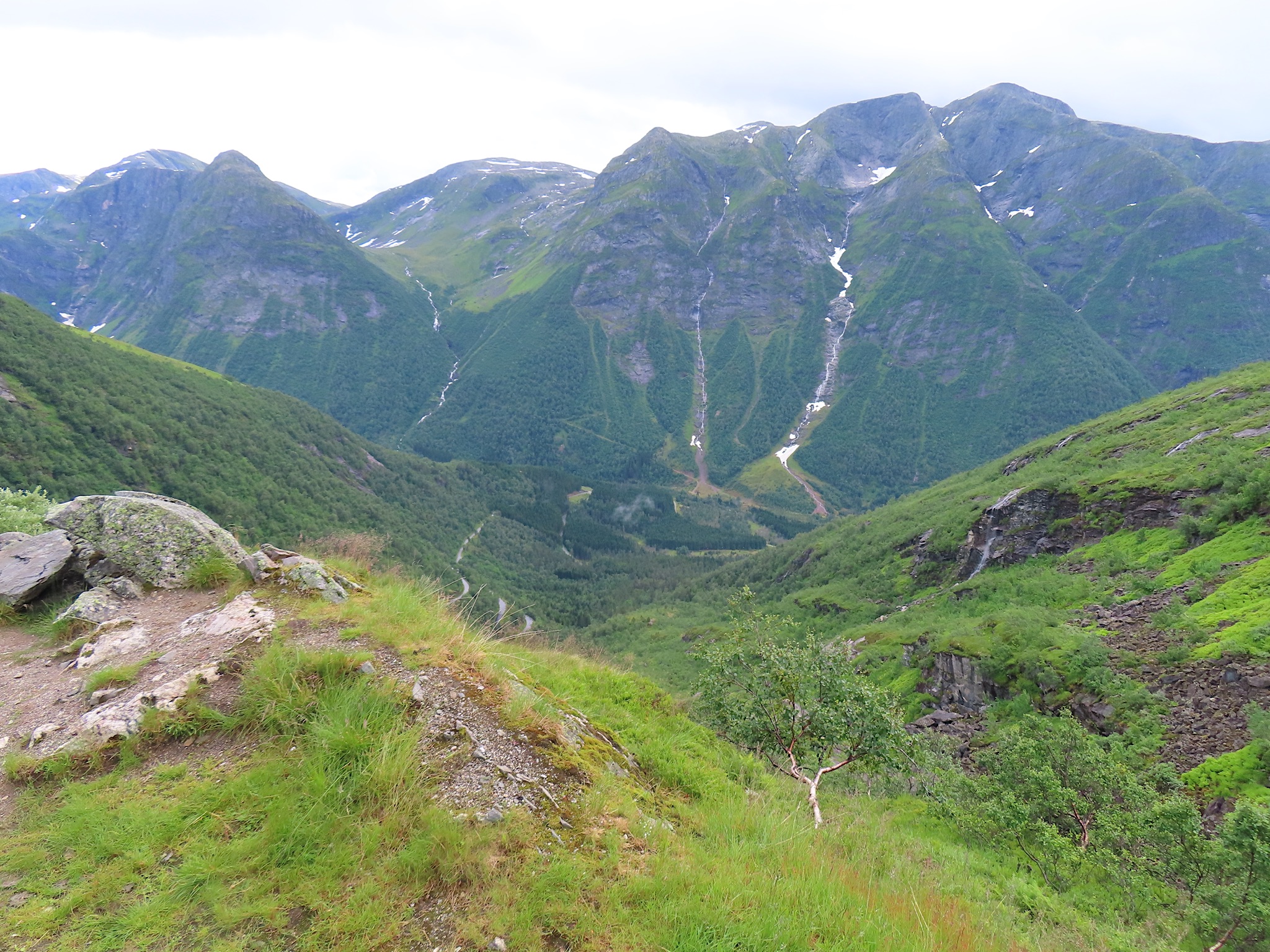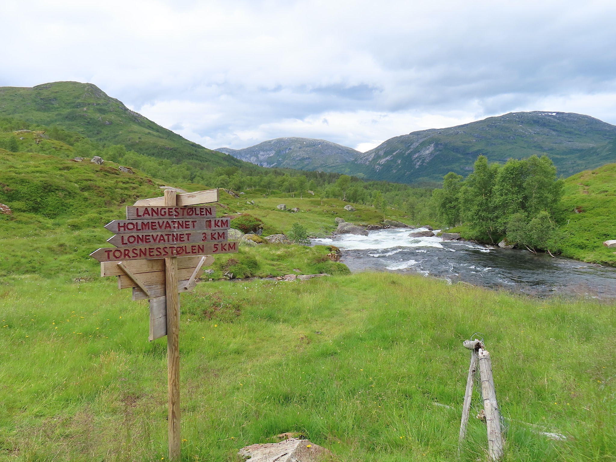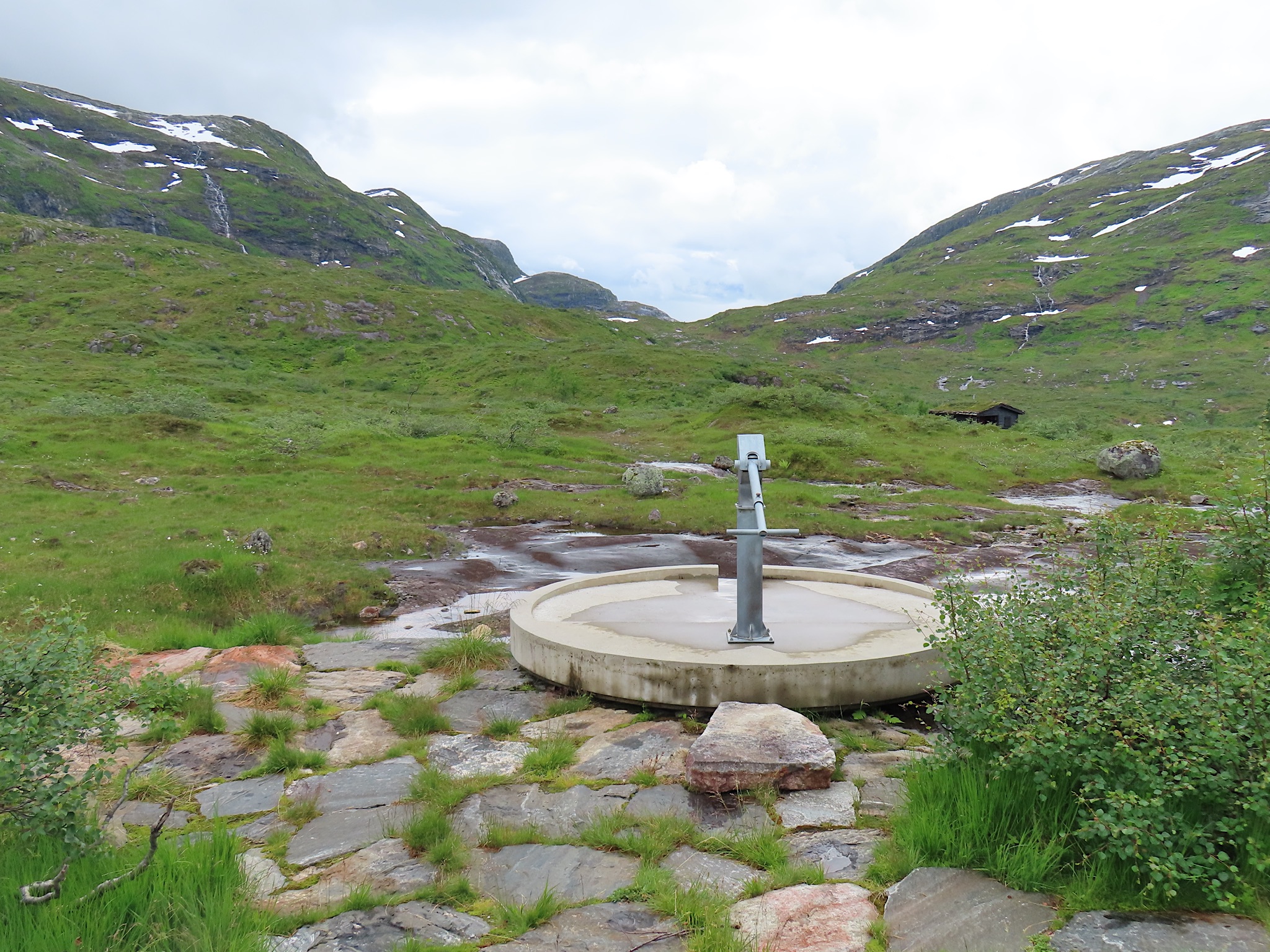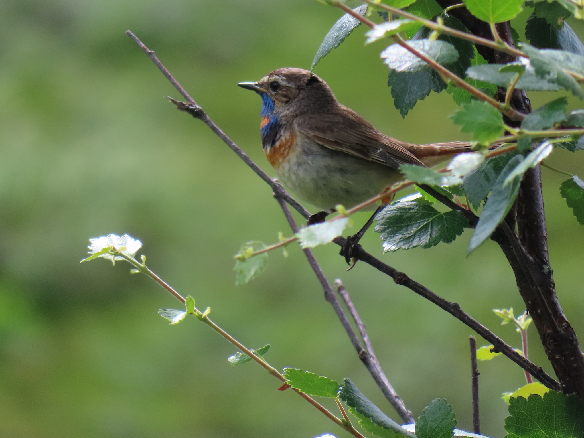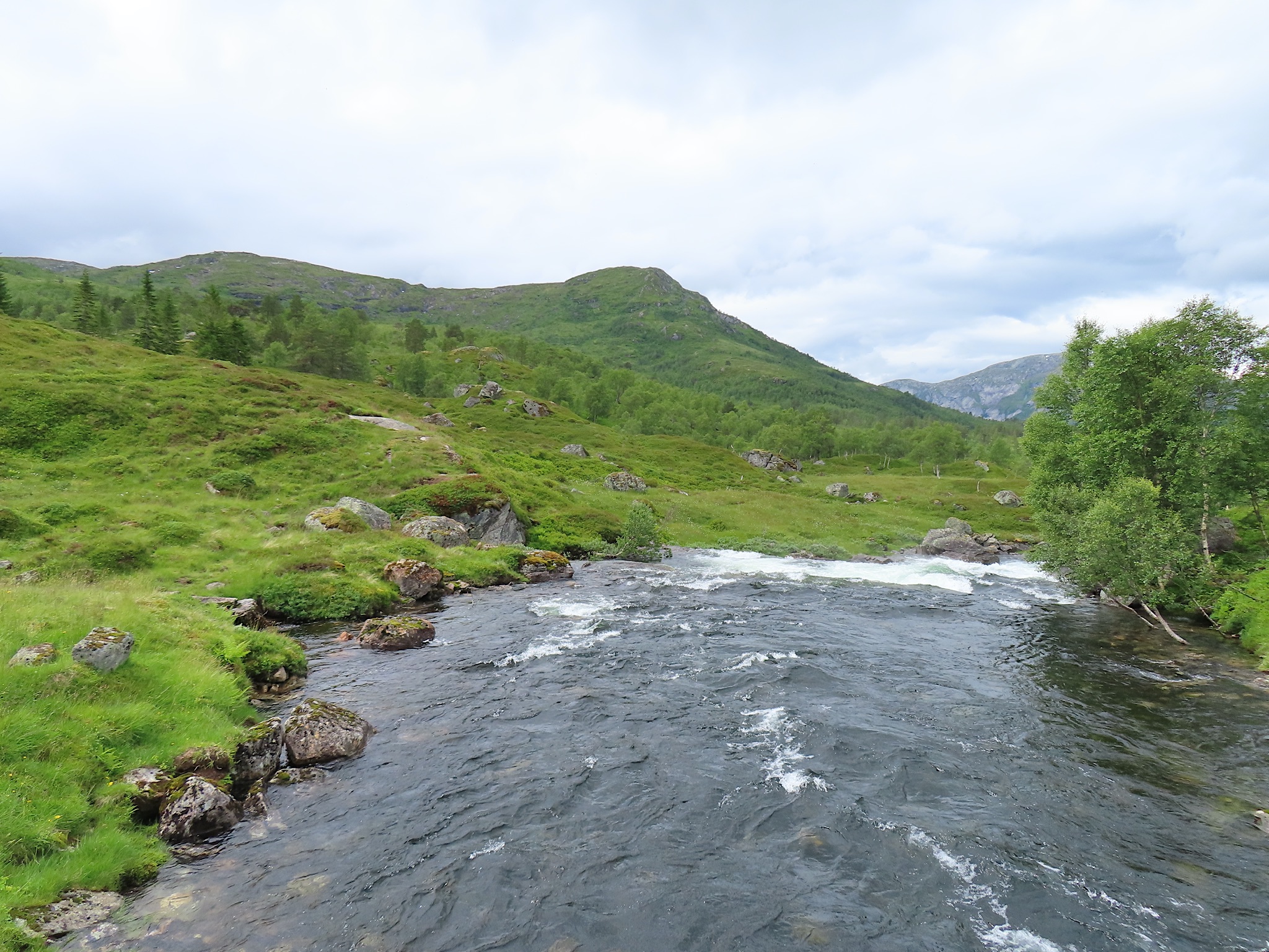 Afdalen doen we niet, dat doen we morgen omdat dit ook onze route is als we naar Røldal vertrekken. We keren dus terug. Weer langs de geiten. We stoppen vlak daarna om een stukje te wandelen. We zien veel leuke vogels waaronder enkele oranje gestipte blauwborsten en prachtige rode barmsijsjes.