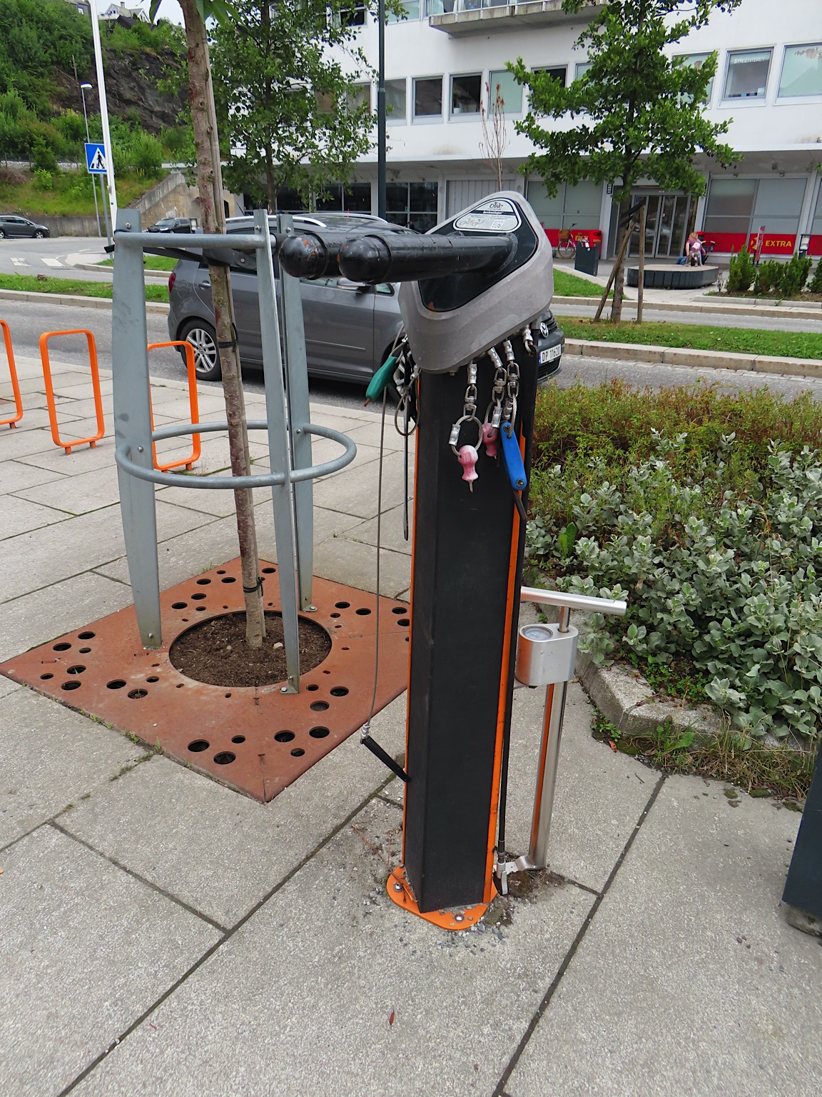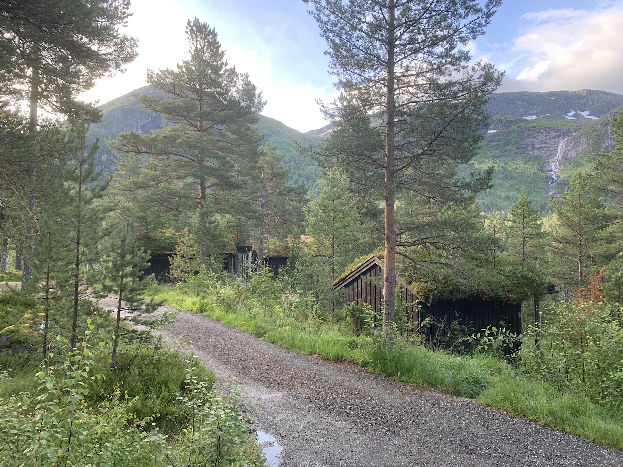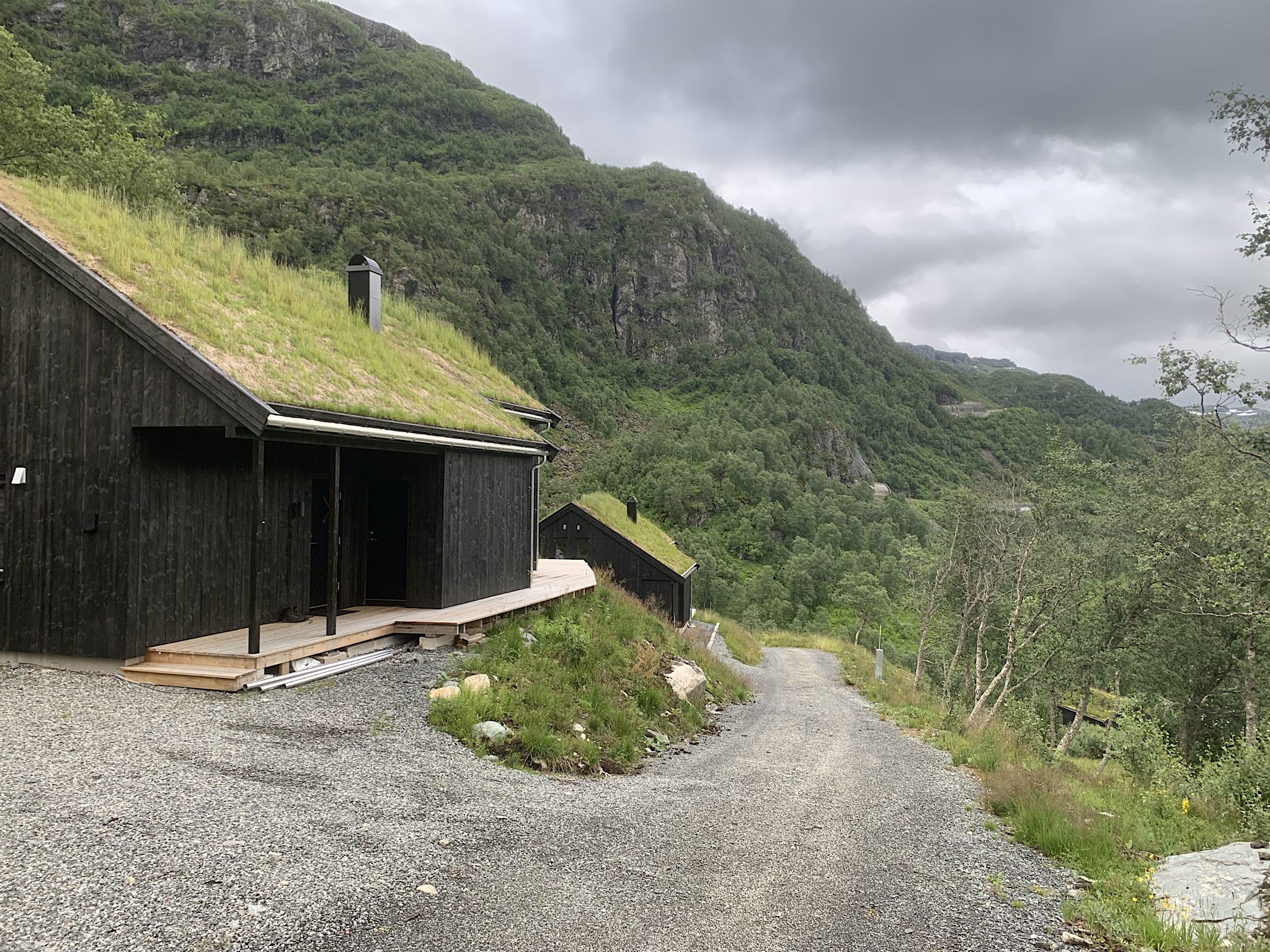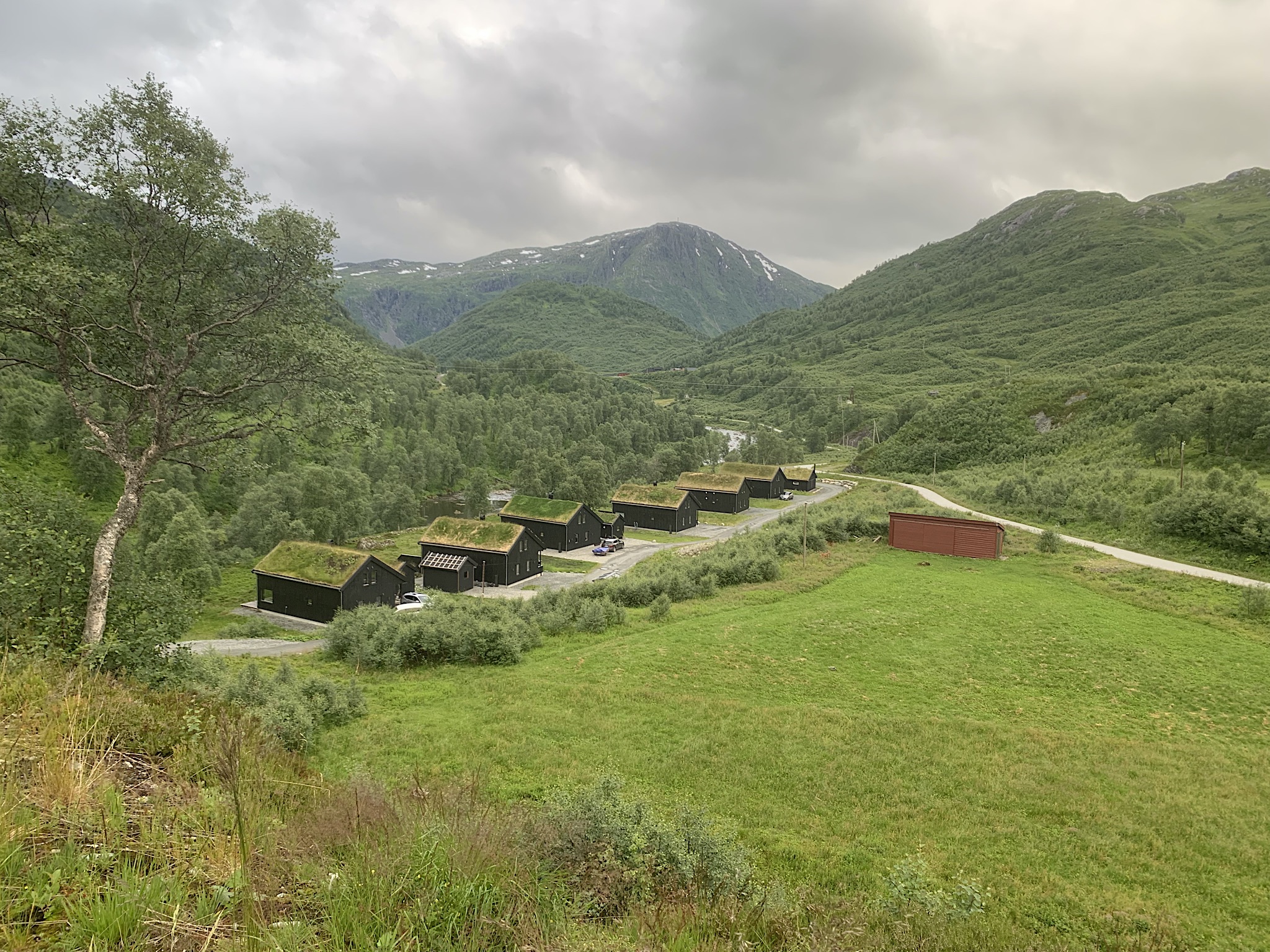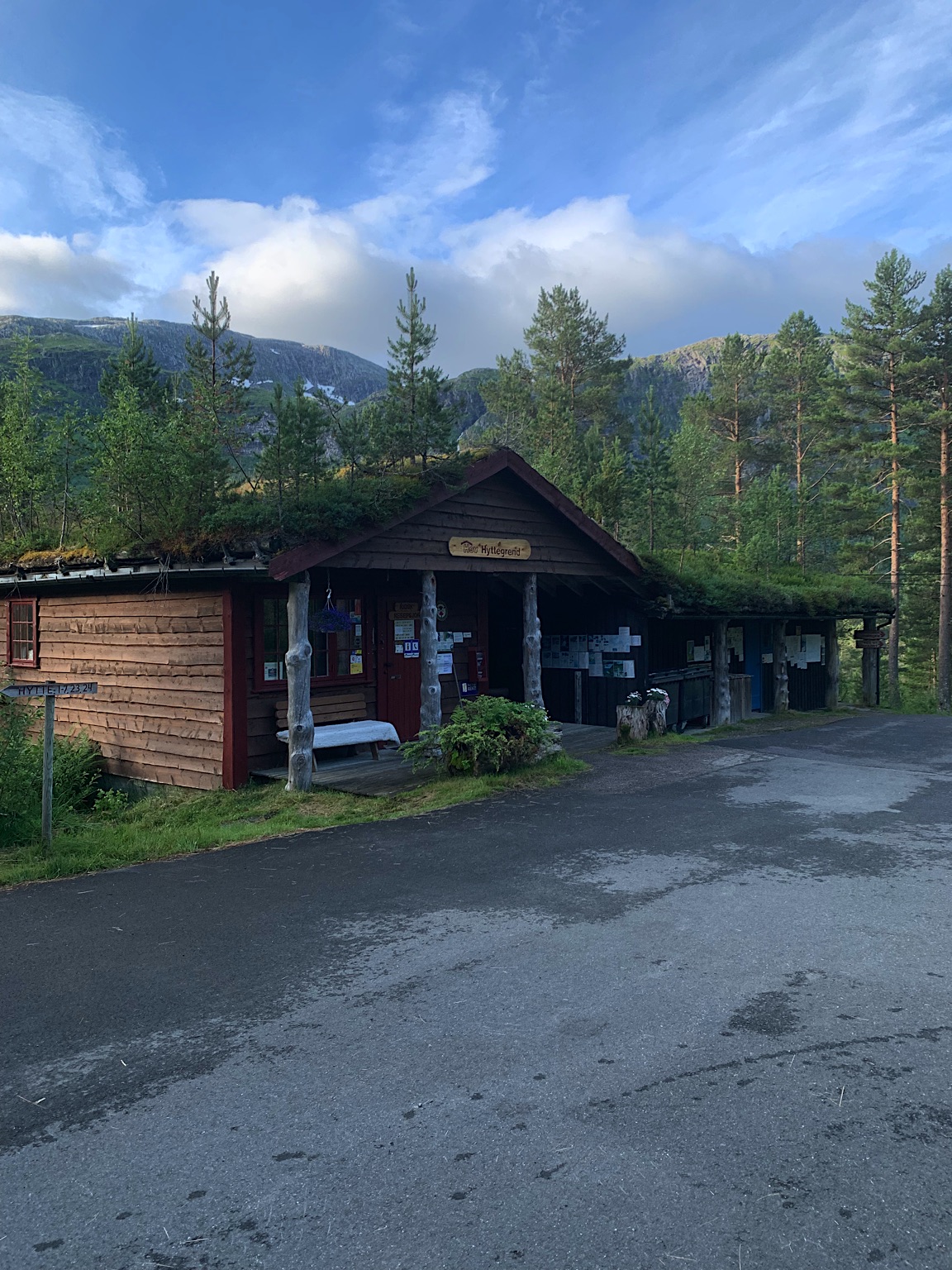 Het regent flink, van een uitzicht op de Hardangerfjord is niet veel over. Dat komt door de regen en door de lange tunnels (zelfs twee met ingebouwde rotonde. Als we in Odda aankomen begint het een beetje op te klaren. Røldal is nog 40km hier vandaan. Bij aankomst daar is het droog en doen we eerst wat inkopen bij de plaatselijke Coop.