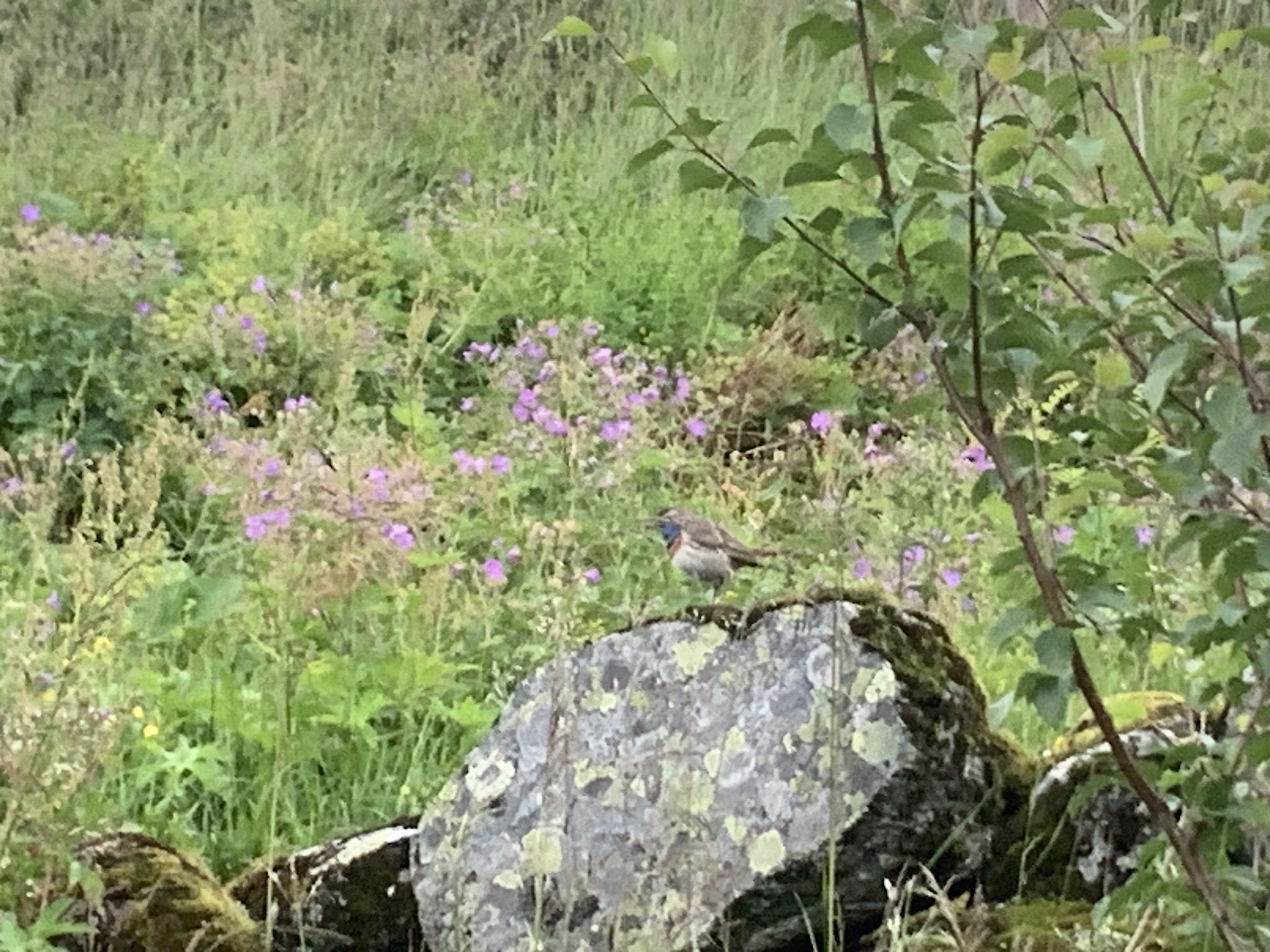 Ons huisje ligt net buiten Røldal in Valldalen aan de Austmannalia touristische weg over de Hardangervidda hoogvlakte. Een heerlijk rustig huisje met alle gemakken en een supergrote tv (55 inch). We eten een pizza en wandelen met Sambo in de buurt. Onderweg spotten we weer leuke vogels. De blauwborst die we tegenkomen vliegt steeds een stukje met ons mee en is niet echte schuw. Moe maar voldaan van de reis en de indrukken slapen we in.