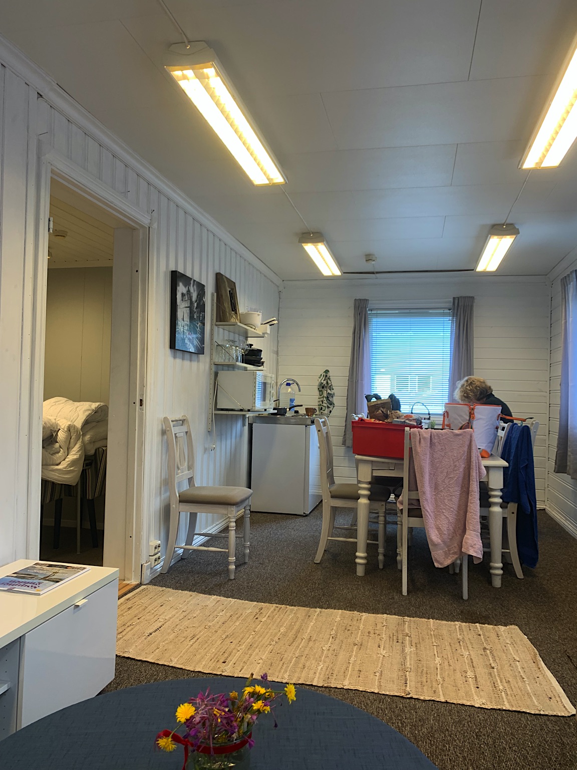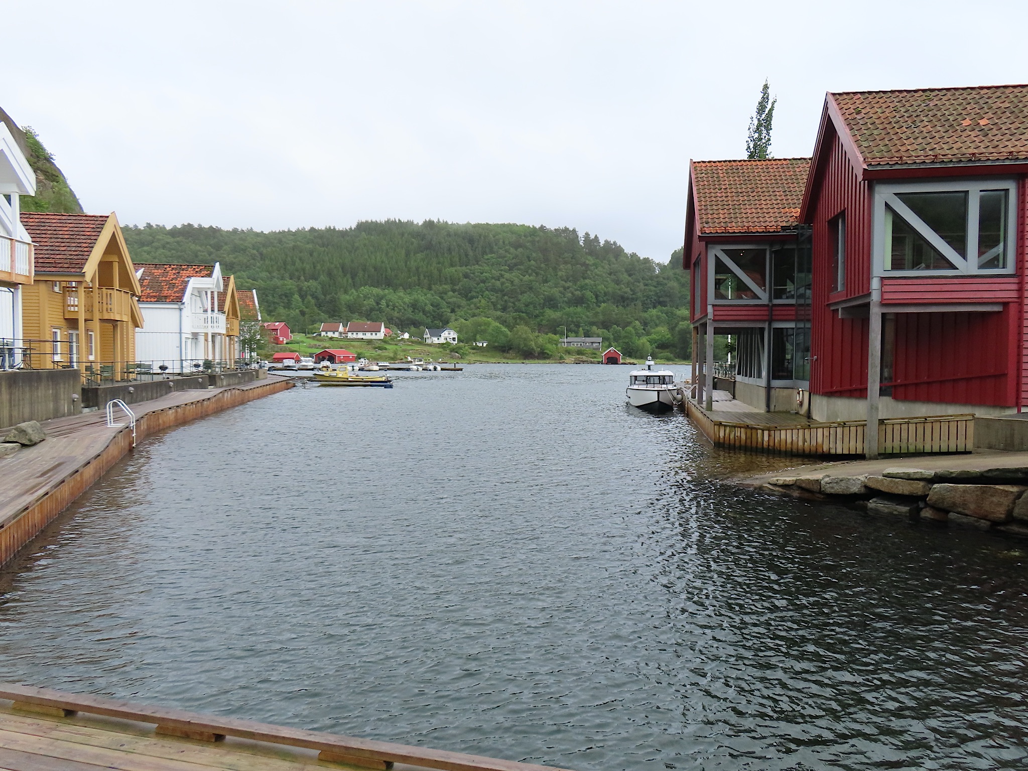 Als we halverwege op route 9 zijn begint het flink te regenen. Het houdt met korte tussenposen niet meer op. Als we in Lindesnes bij ons adres aankonen krijgen we de schrik van ons leven. Een smakeloze kamer in een paardenstal op een industrieterrein. TL buizen als verlichting. Wauwww. We zoeken en vinden gauw nog iets anders in de buurt van Farsund. Het luxe Farsund Resort. Een compleet huis aan de baai en alle gemakken van een resort. Het beste altijd voor het laatst bewaren.