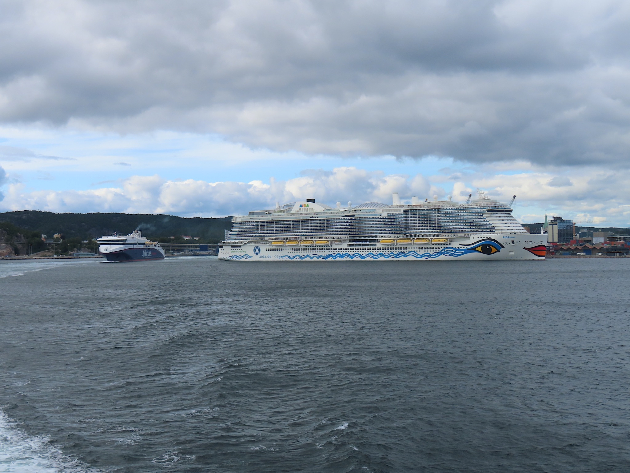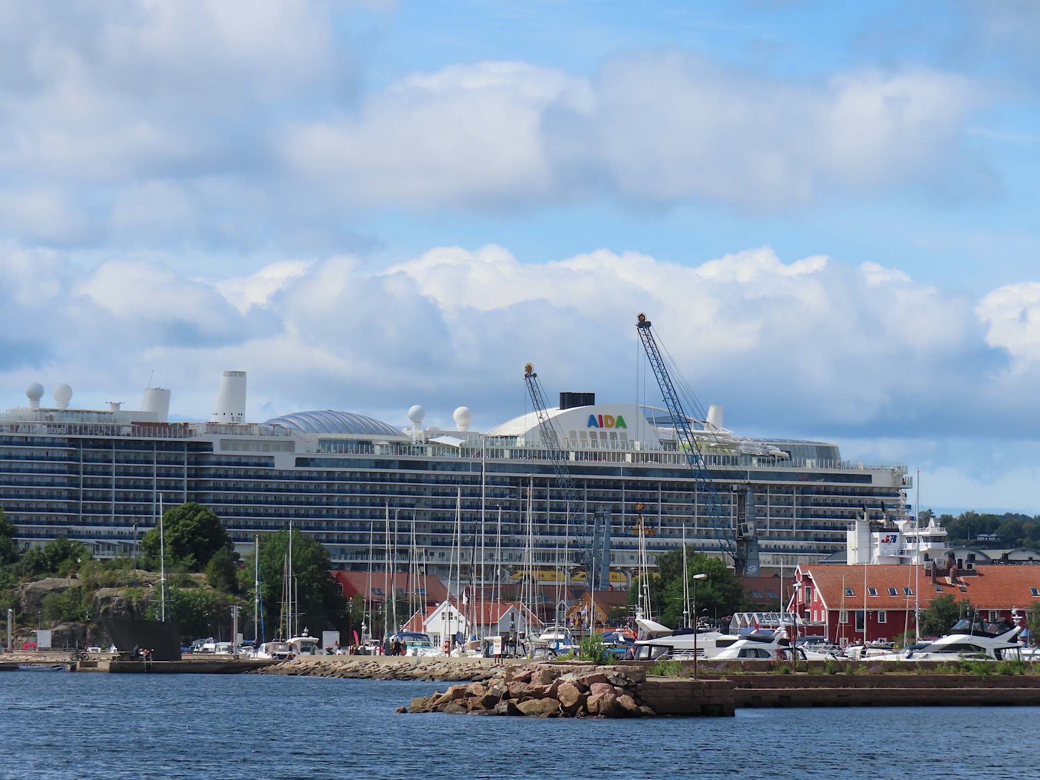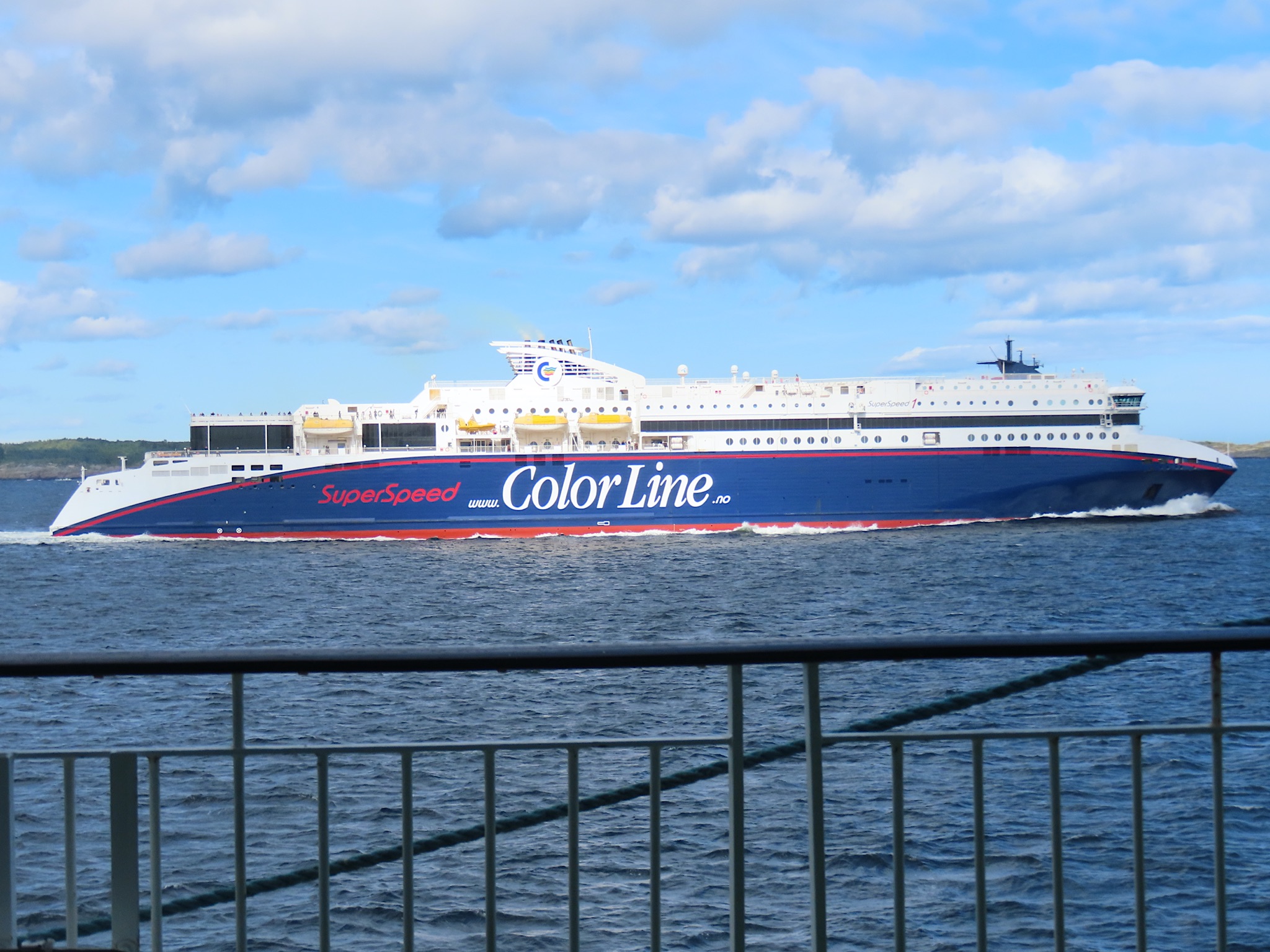 Tegen tienen moeten we ons huis verlaten. We houden ons keurig aan die regel😉. Het is ongeveer een uurtje rijden naar de boot in Kristiansand. Vanaf Mandal maken we gebruik van het enige stukje snelweg dat we gezien hebben hier in Noorwegen. We zijn er tegen elf uur en zetten de auto weer aan de oplader.