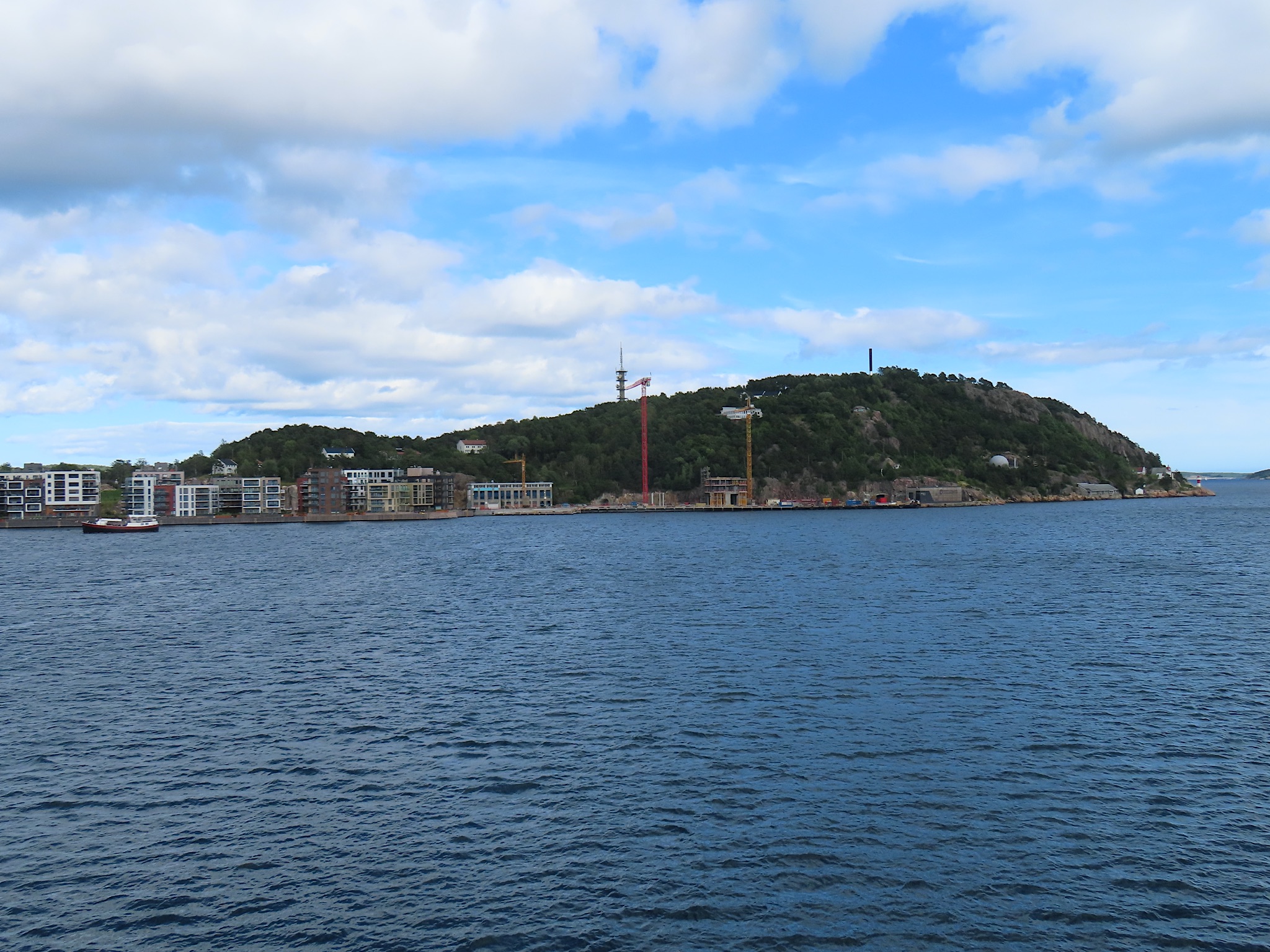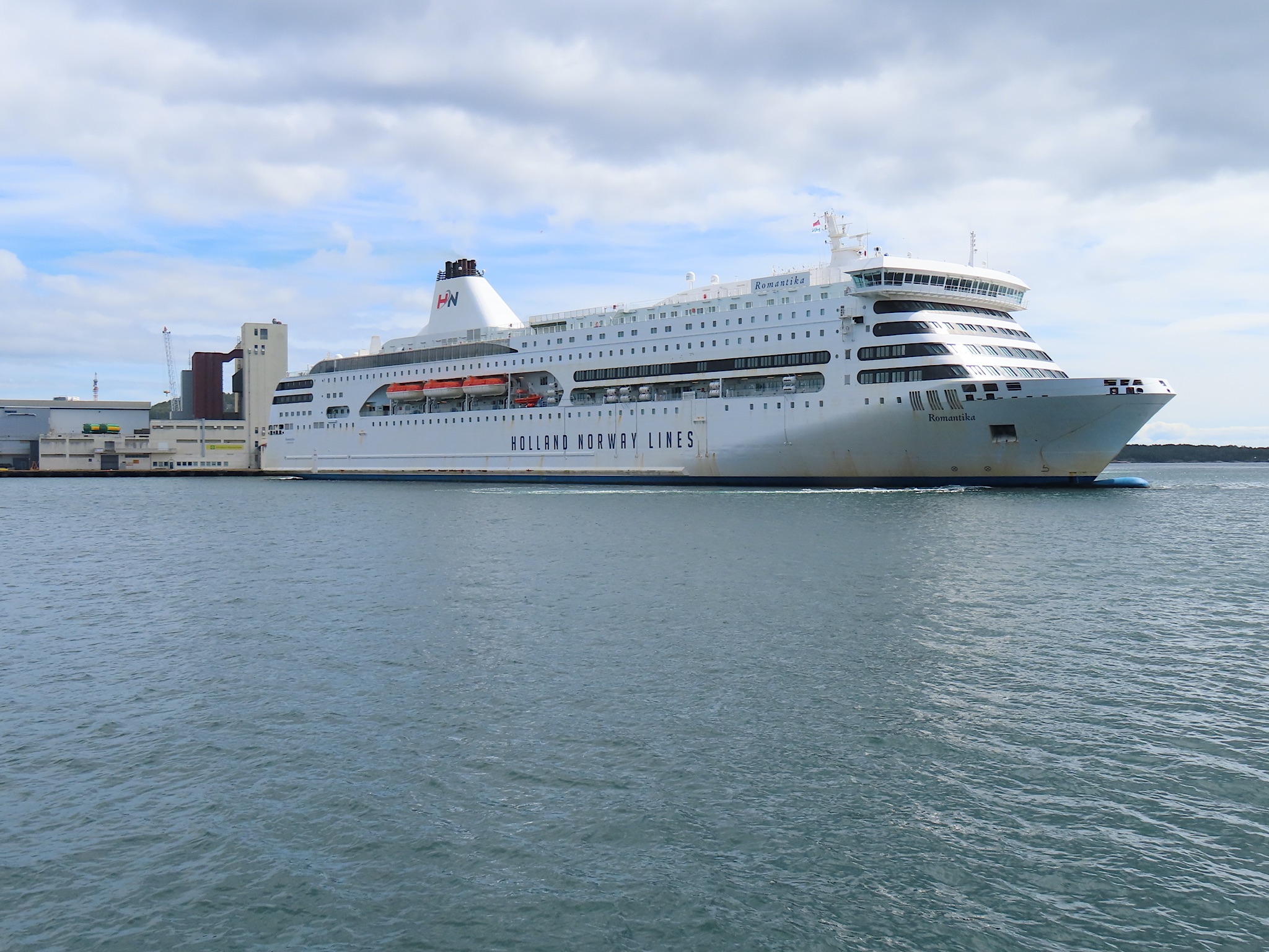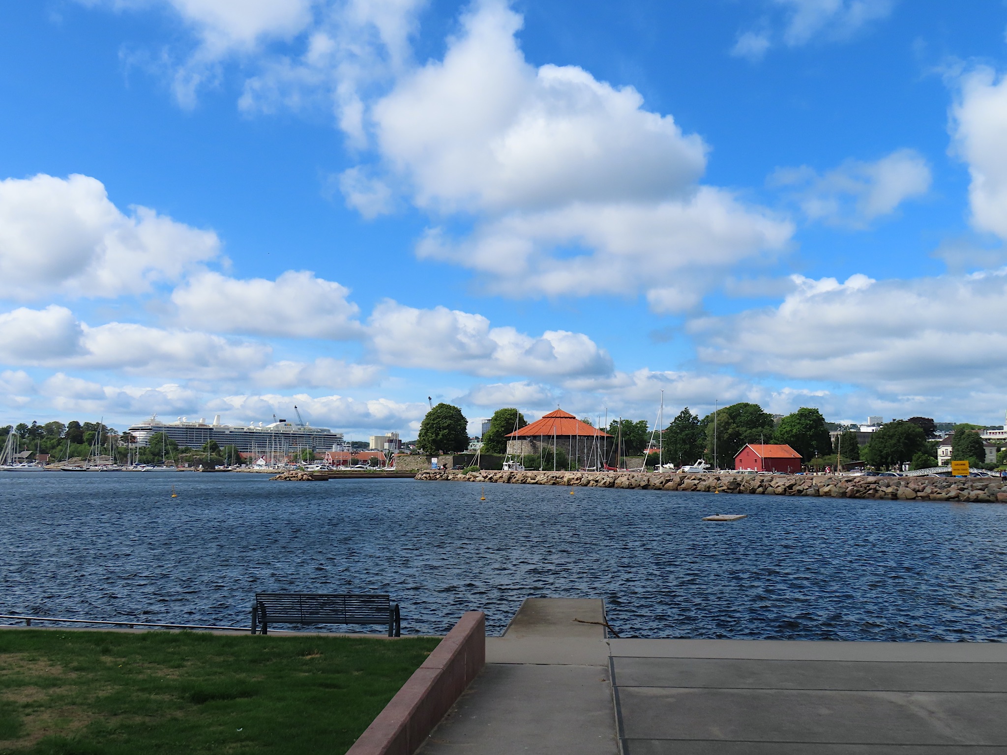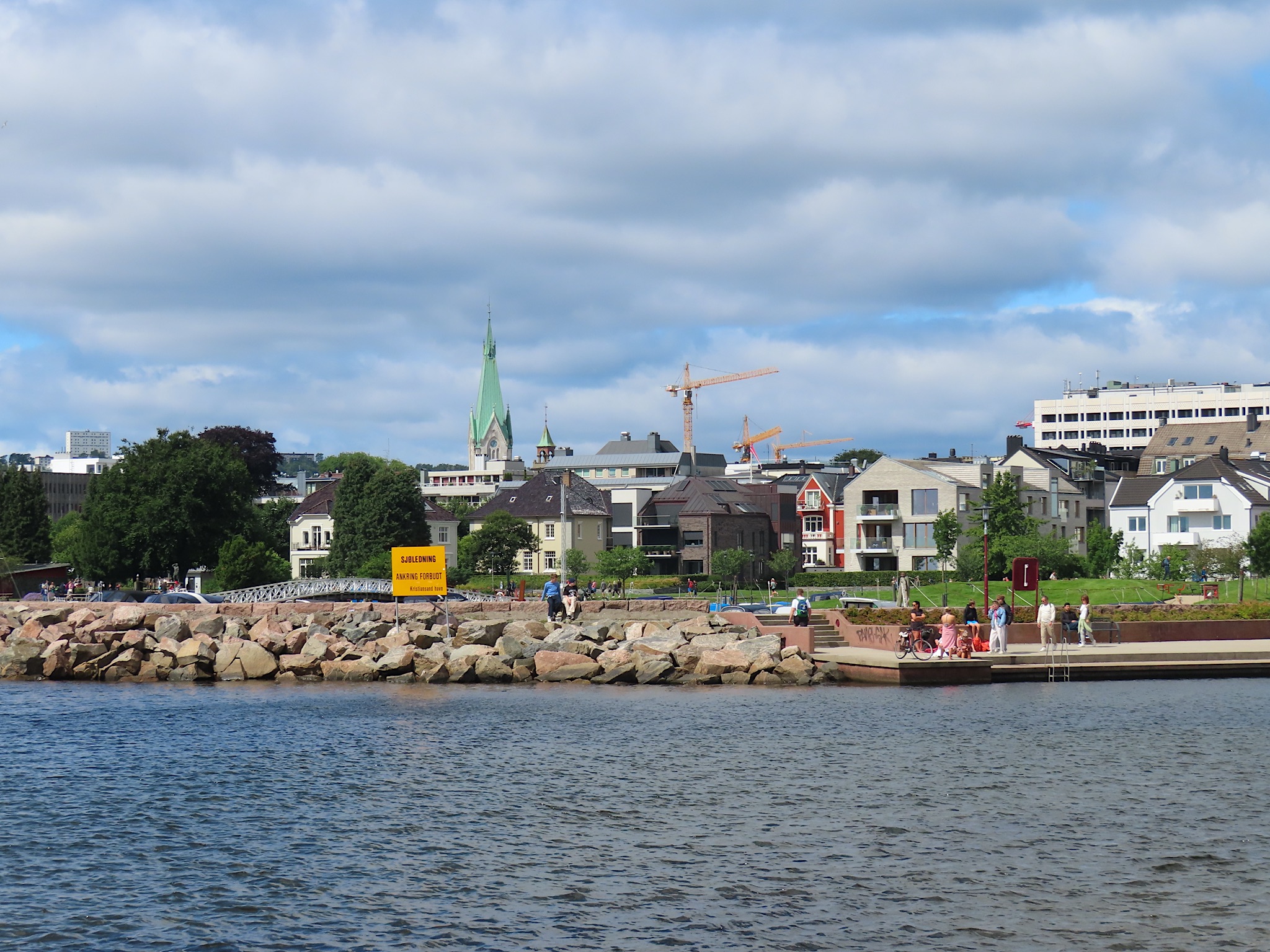 Tegen tienen moeten we ons huis verlaten. We houden ons keurig aan die regel😉. Het is ongeveer een uurtje rijden naar de boot in Kristiansand. Vanaf Mandal maken we gebruik van het enige stukje snelweg dat we gezien hebben hier in Noorwegen. We zijn er tegen elf uur en zetten de auto weer aan de oplader.