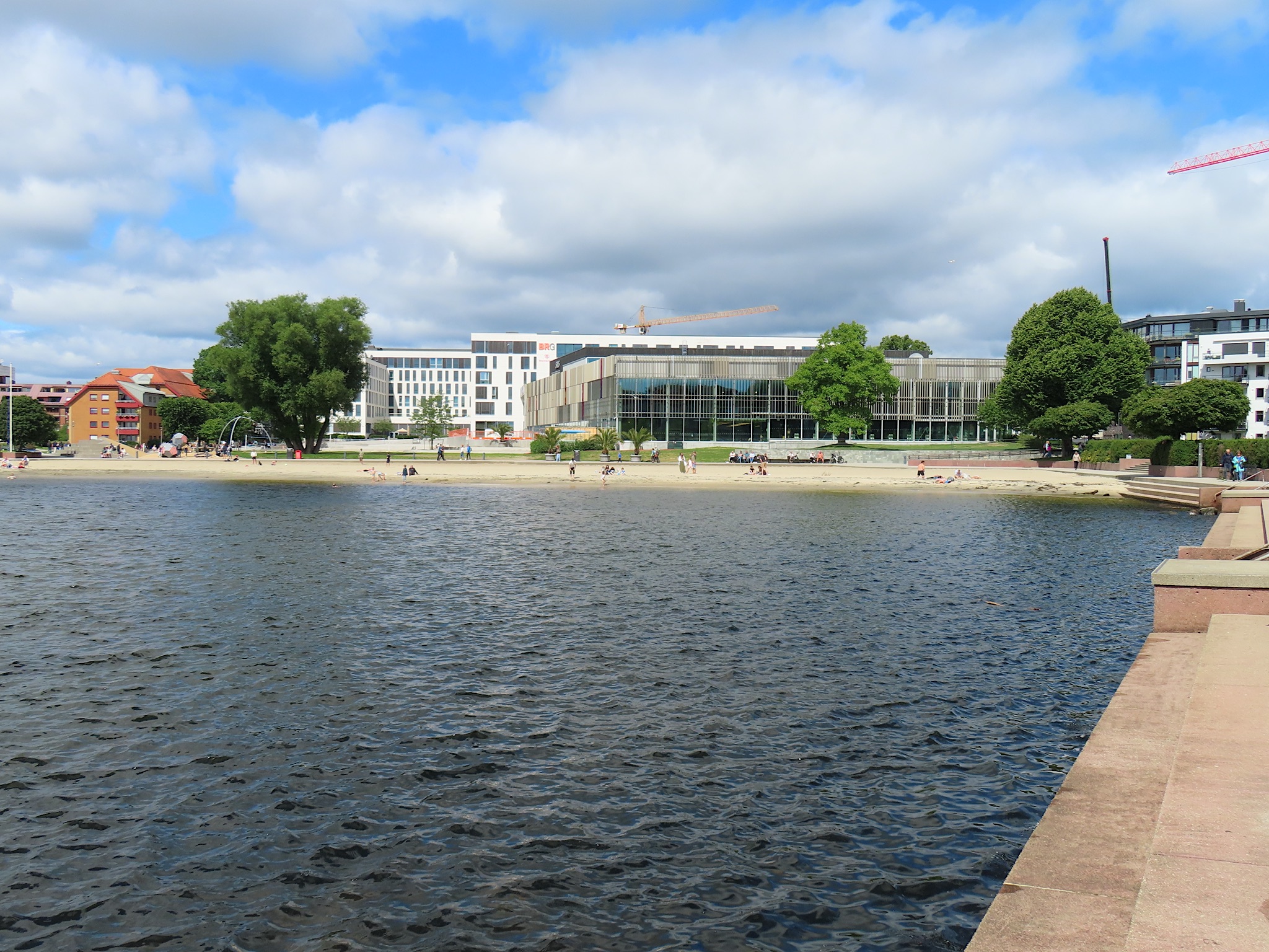 Het plan is om nog wat te wandelen en te winkelen. Bij de turistinformasjon vinden we een leuke kaart met een wandeling door de stad. Het oude deel, de rivier, het vernieuwde havenwoonkwartier zijn allemaal prachtig. In de haven lunchen we. We bestellen verse garnalen. Het pellen is een hele klus maar het smaakt allemaal heerlijk.