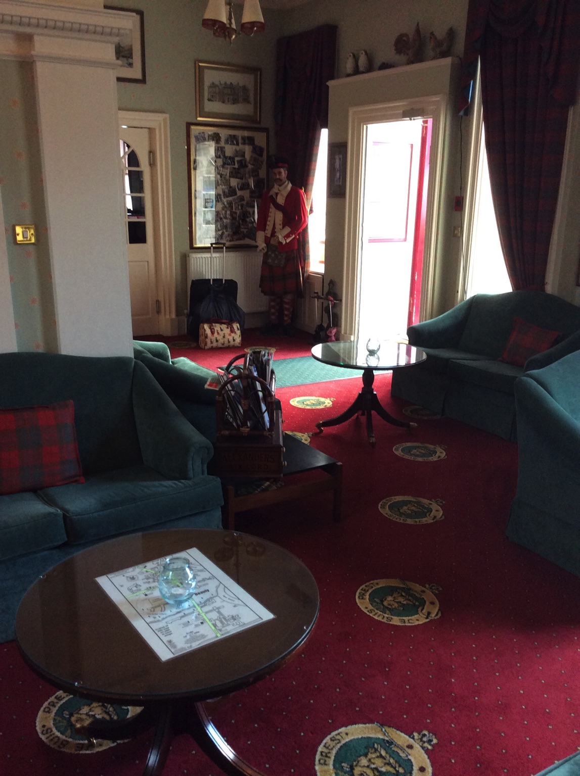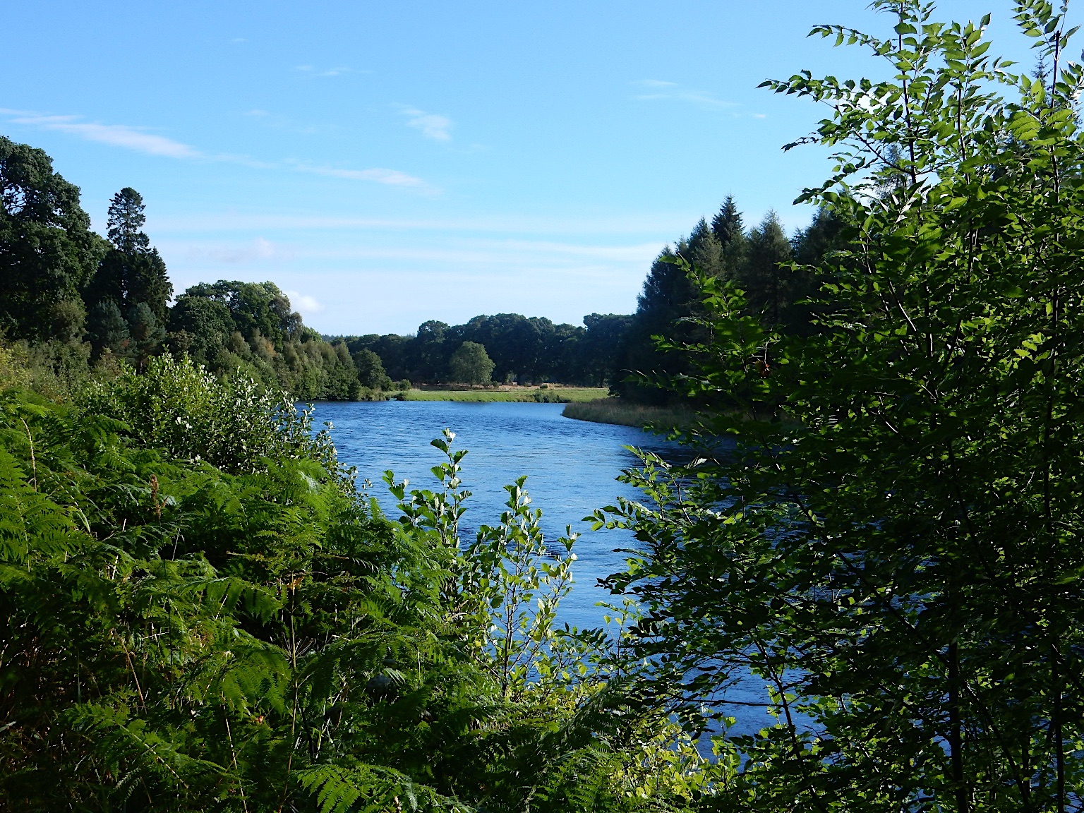 Vandaag worden we wakker in onze typische Schotse kamer met baldakijnbed. Het zonnetje schijnt af en toe al flink en de hemel is overwegend blauw. We ontbijten eerst in de ontbijtzaal. Dit keer maar eens geen Schots ontbijt, maar alleen cereals en toast. We besluiten eerst een mooie wandeling te gaan maken in de buurt langs de rivier.