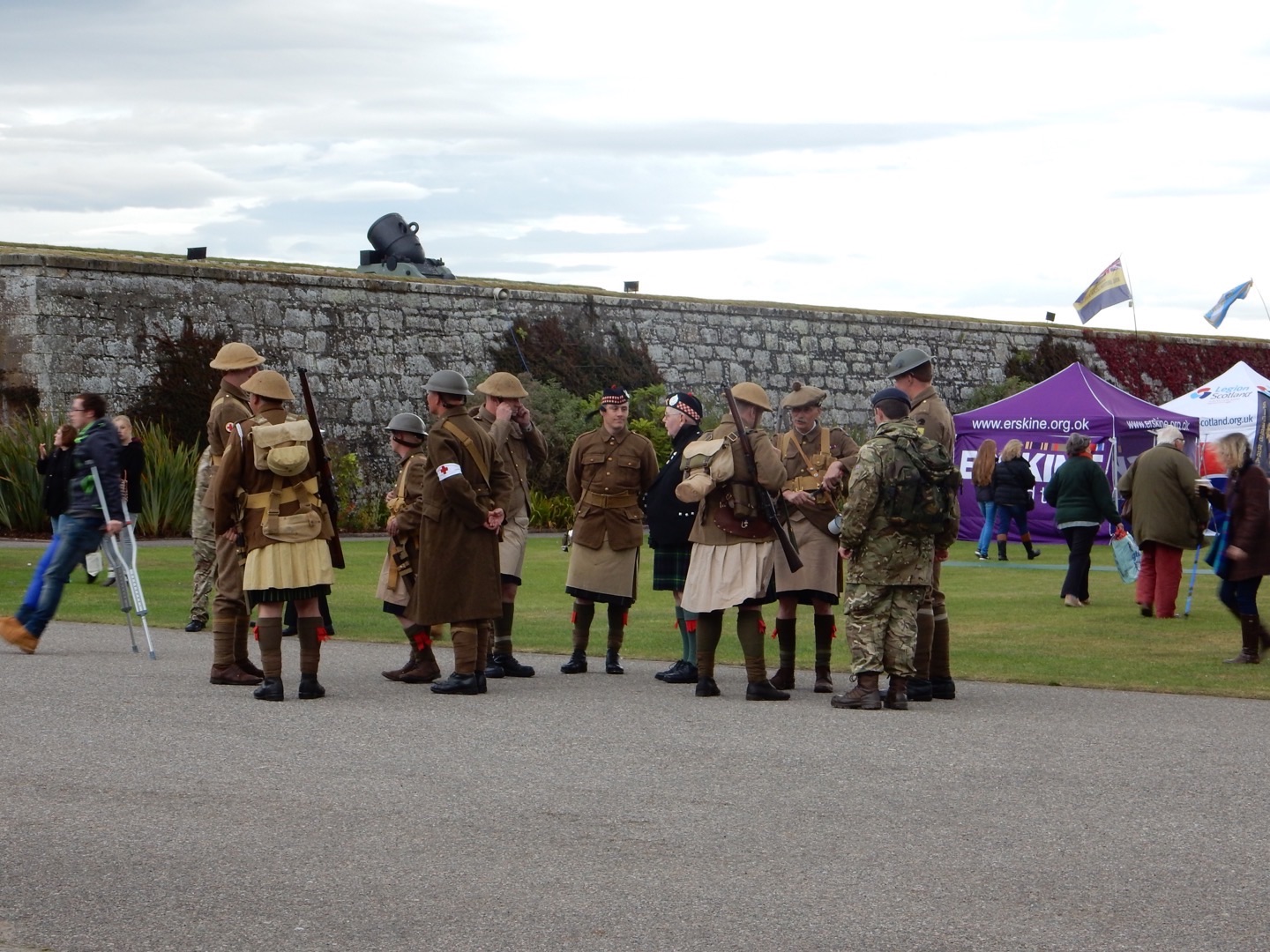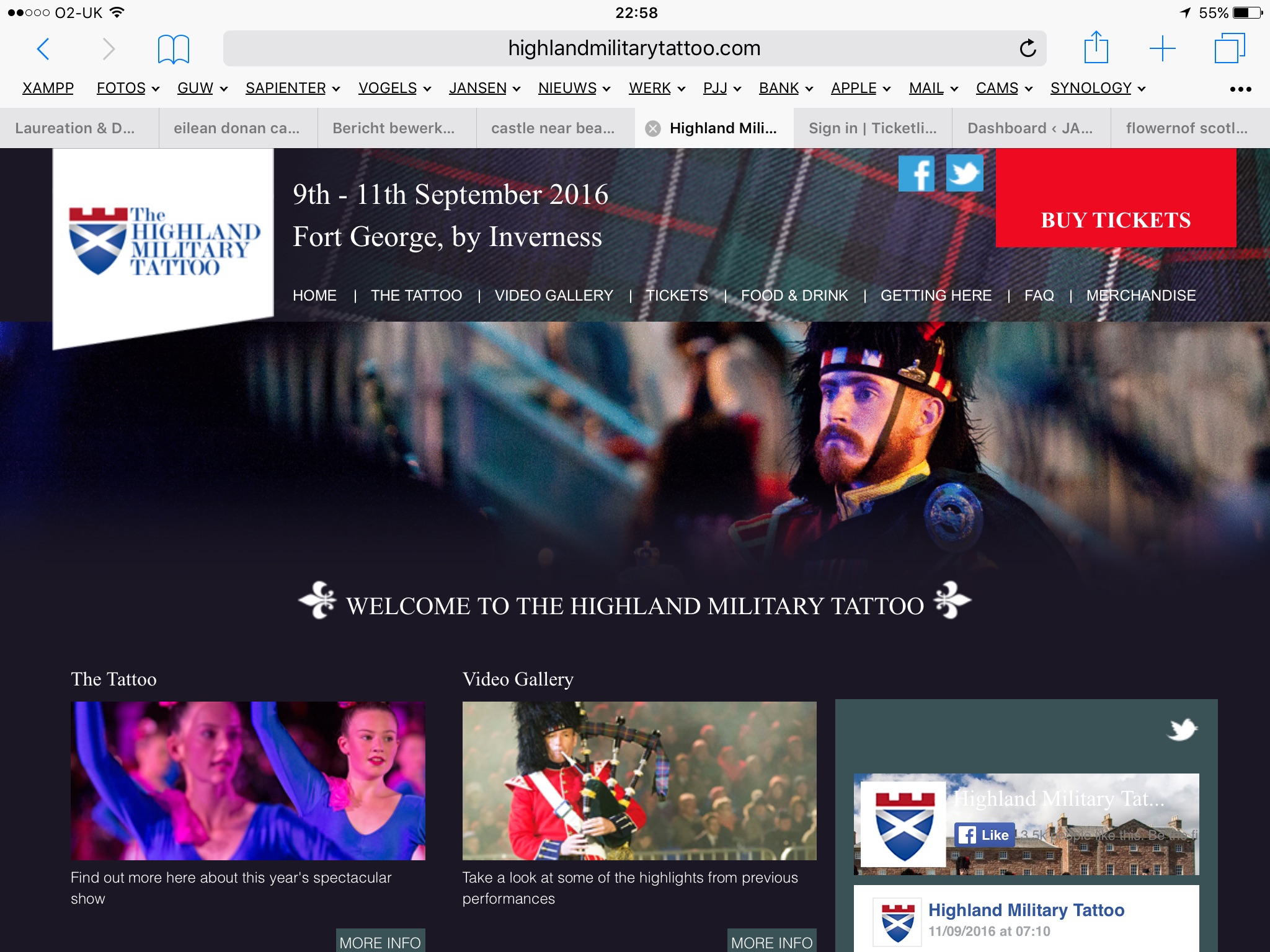 We rijden, na een uitgebreide bezichtiging, snel terug naar het hotel om even bij te komen. Maar niet te lang, want gisteren hebben we op internet nog twee kaartjes kunnen bemachtigen voor de Highland Millitary Tattoo in Fort George hier ongeveer 20 mile vandaan. We rijden er al vroeg naar toe, want we moeten de kaarten daar afhalen. Het is al een drukte van belang in het oude militaire fort. Iedereen eet en drinkt en het leger geeft een presentaie van wat ze allemaal kunnen.