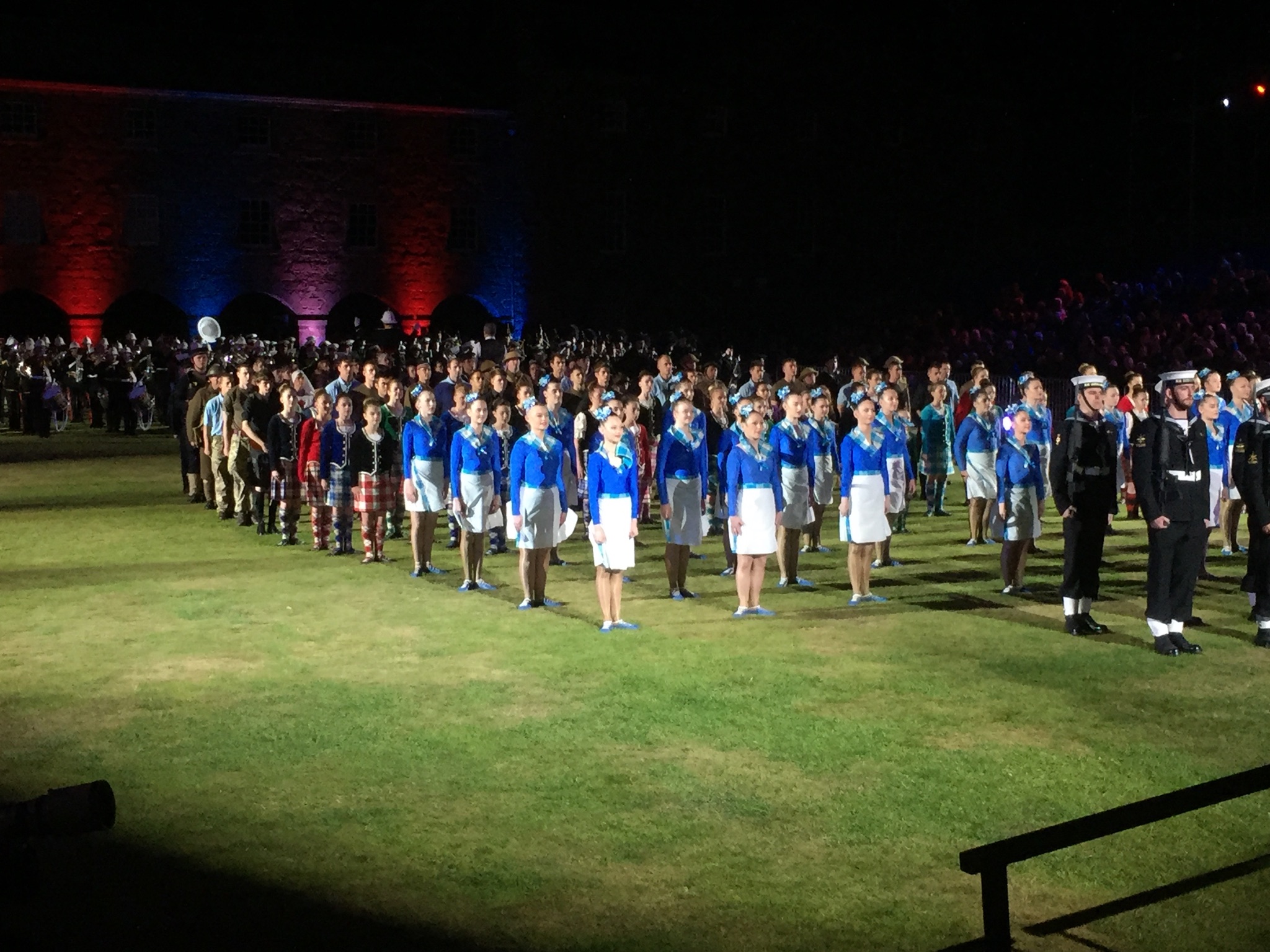 Tegen 19:30 begint de Tattoo, een typisch Schotse show met veel militaire trots. De Schot is bescheiden en een beetje ingetogen, maar als het over z’n land gaat of over de militaire successen dan is ie zo trots als een pauw. Terecht want het is een heel bijzonder land. We krijgen een show vol bagpipers, zang en dans te zien. Prachtig vermaak. We hebben extra geluk. De stoelen die we op inetrnet hebben toegewezen gekregen blijken niet te bestaan en daarom krijgen we plaatsen op de front row van de eretribune. Werkelijk klasse die Schotten ze weten hun gasten te feteren.