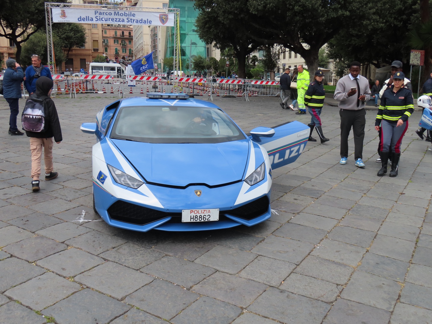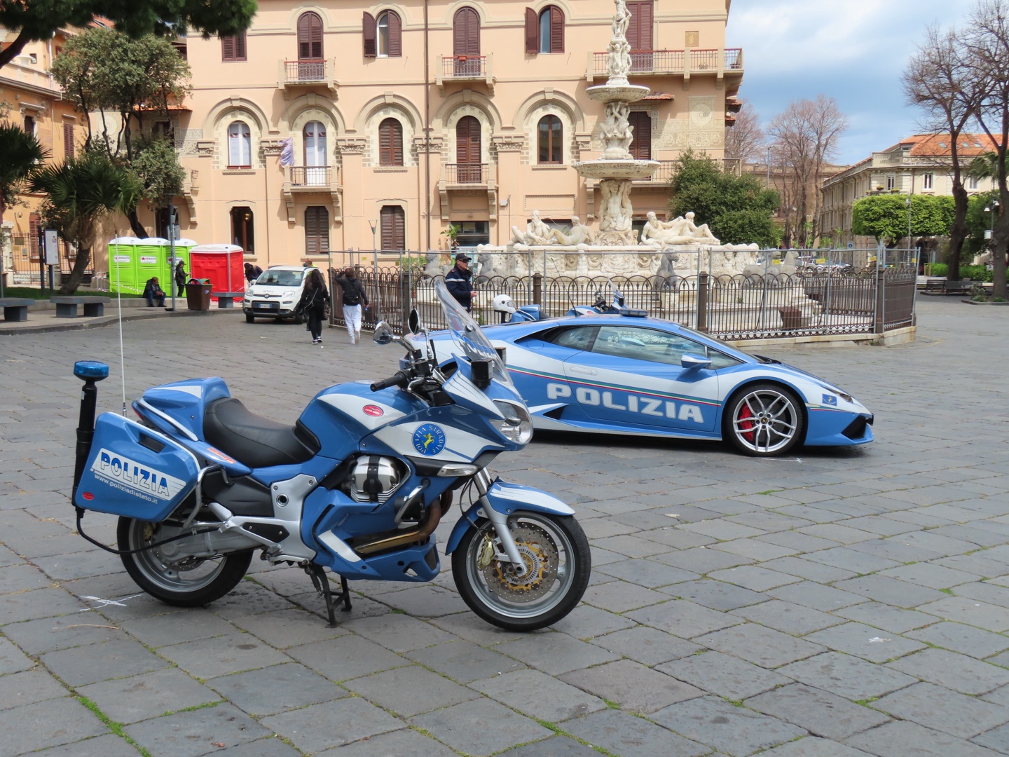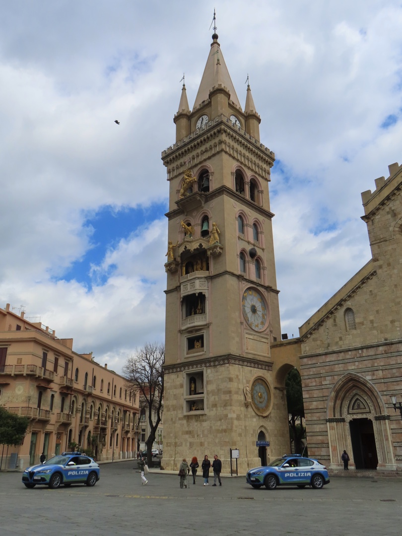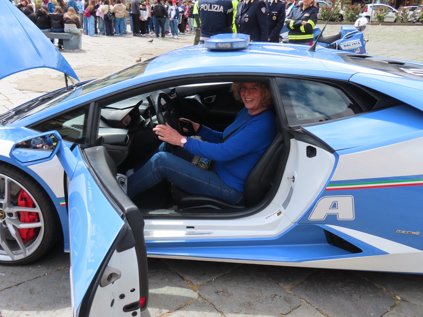 We gaan op zoek naar de Duomo met de bewegende klokkentoren. We vinden deze snel en zien nog net een deel van het schouwspel dat zich op de toren om 12uur precies afspeelt. Alles beweegt. Ook de lokale ‘polizia’ is volop aanwezig. Maar meer om zichzelf en met hun mooie auto’s (een heuse lamborgini) en motoren te pronken.