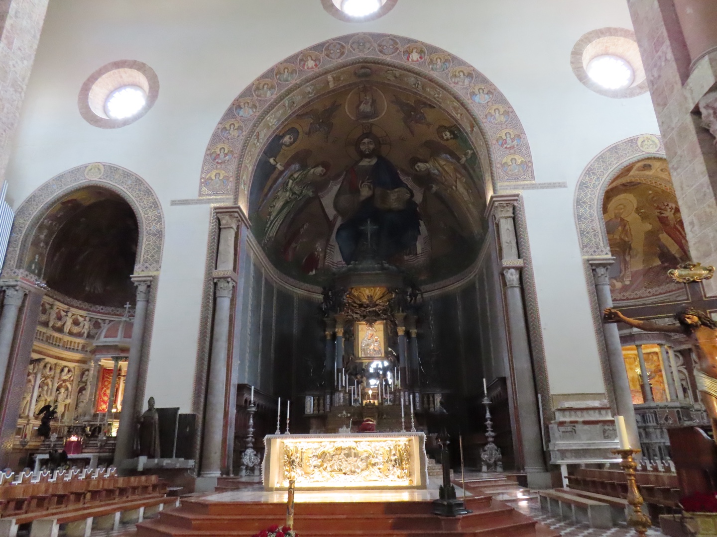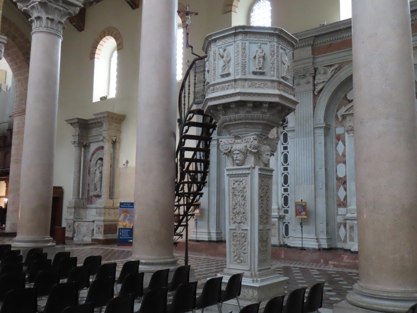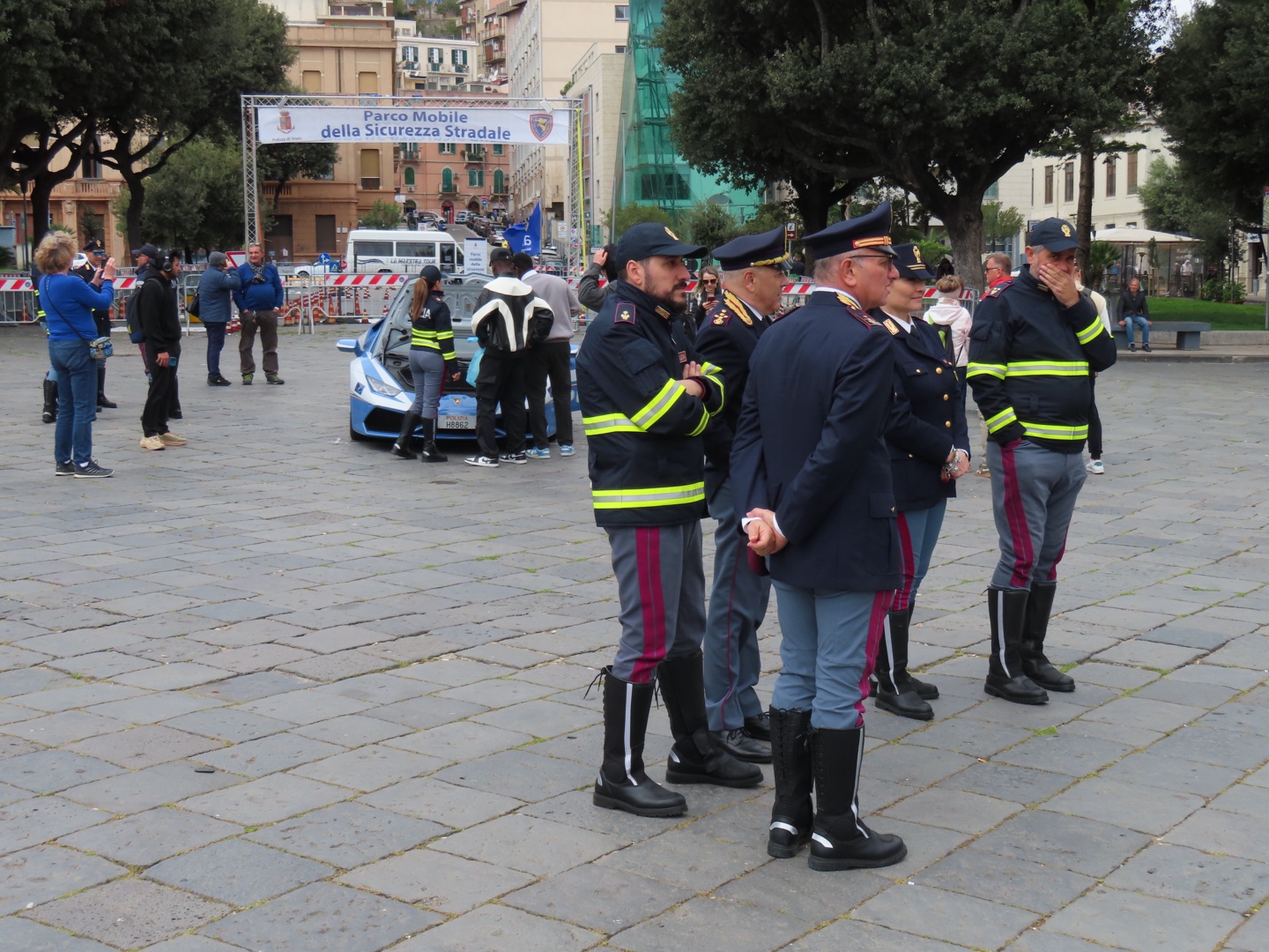 We gaan op zoek naar de Duomo met de bewegende klokkentoren. We vinden deze snel en zien nog net een deel van het schouwspel dat zich op de toren om 12uur precies afspeelt. Alles beweegt. Ook de lokale ‘polizia’ is volop aanwezig. Maar meer om zichzelf en met hun mooie auto’s (een heuse lamborgini) en motoren te pronken.