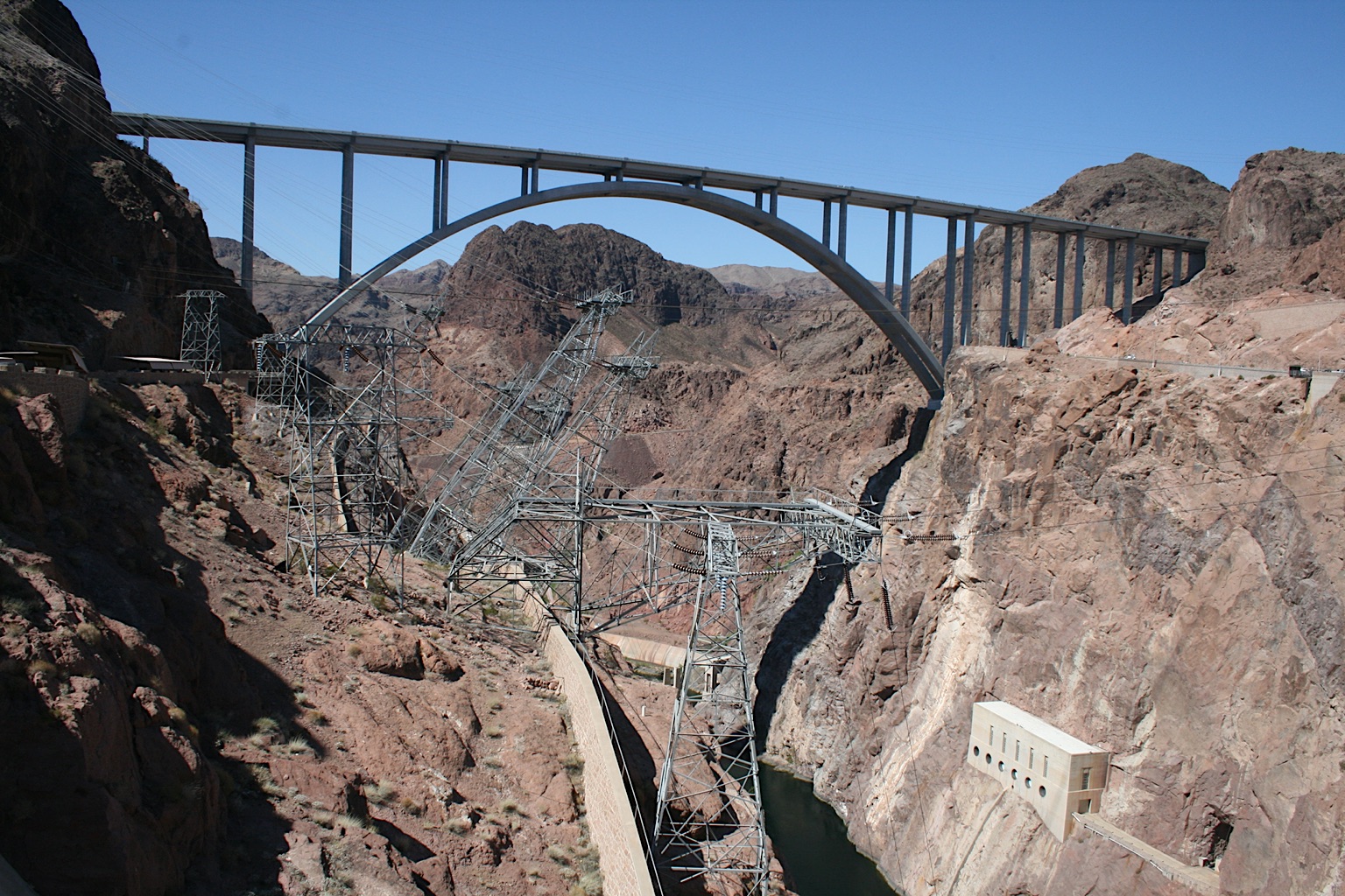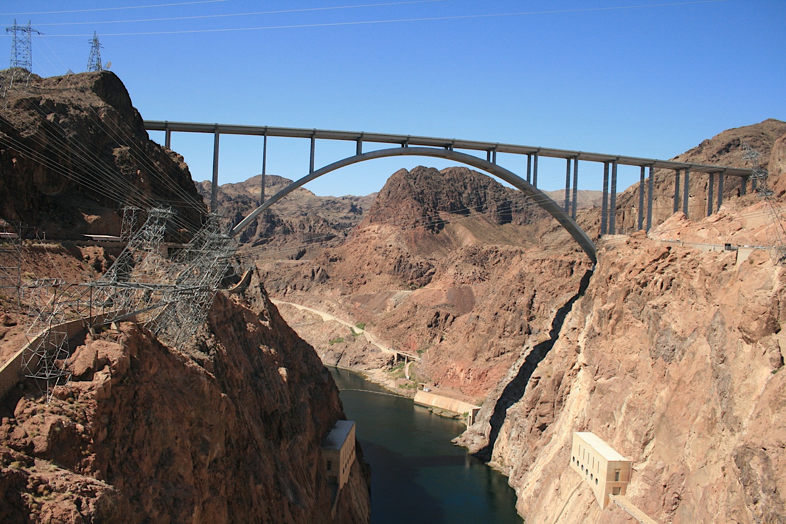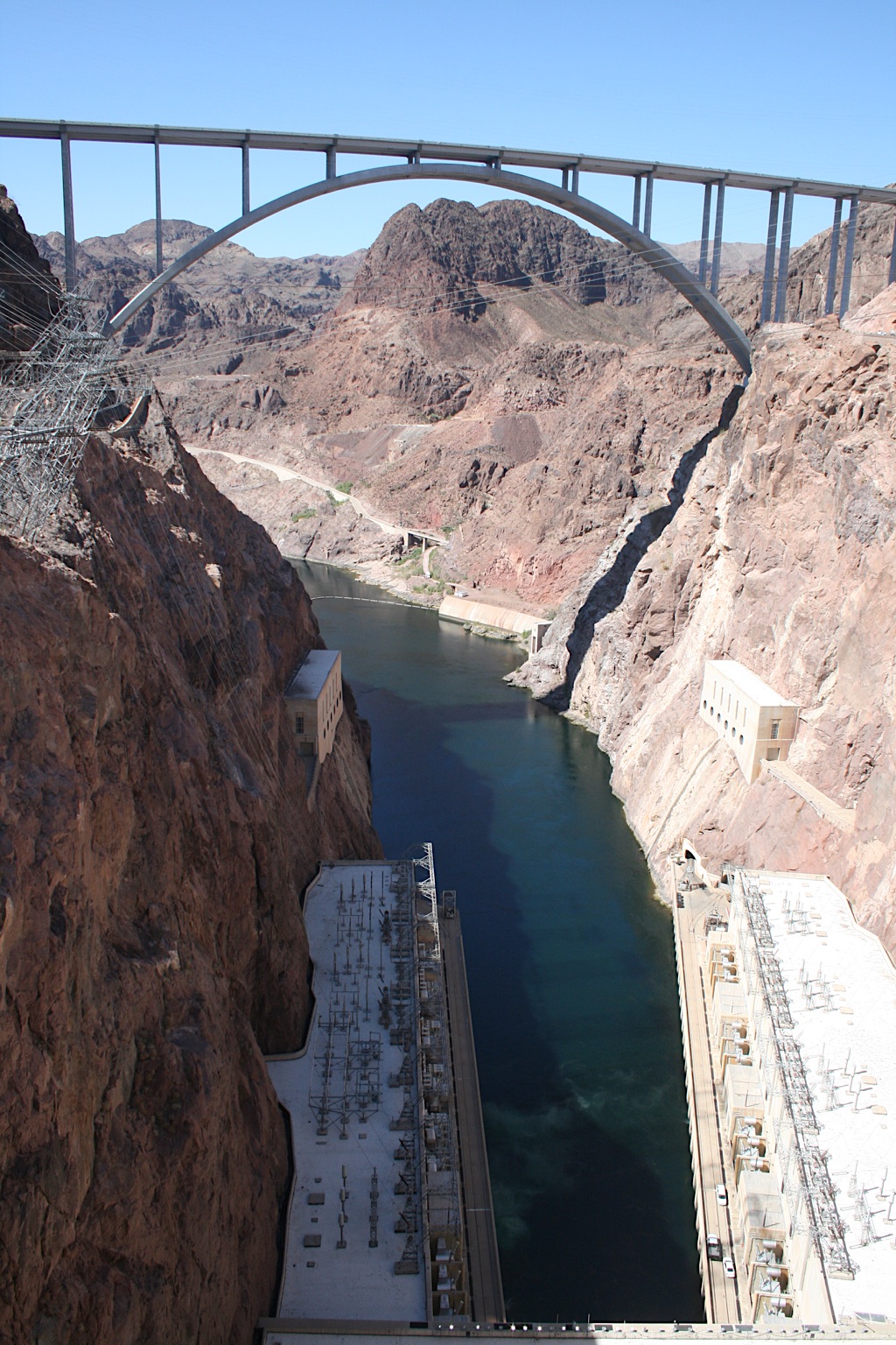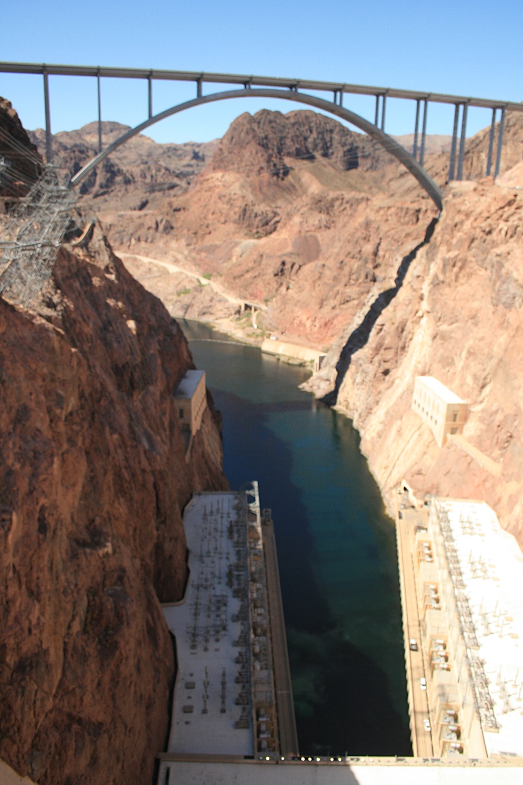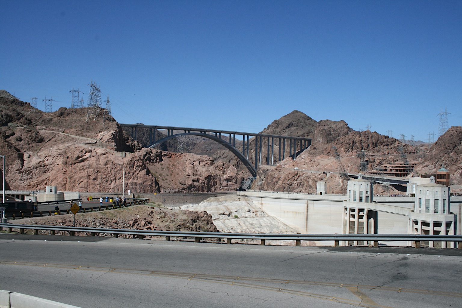 Vervolgens door naar de Hooverdam, zeer indrukwekkend, groot en diep. Lake Mead lag er mooi bij maar was zeker niet vol. Vervolgens over de nieuwe brug (megastructures bij Discovery) richting Arizona.