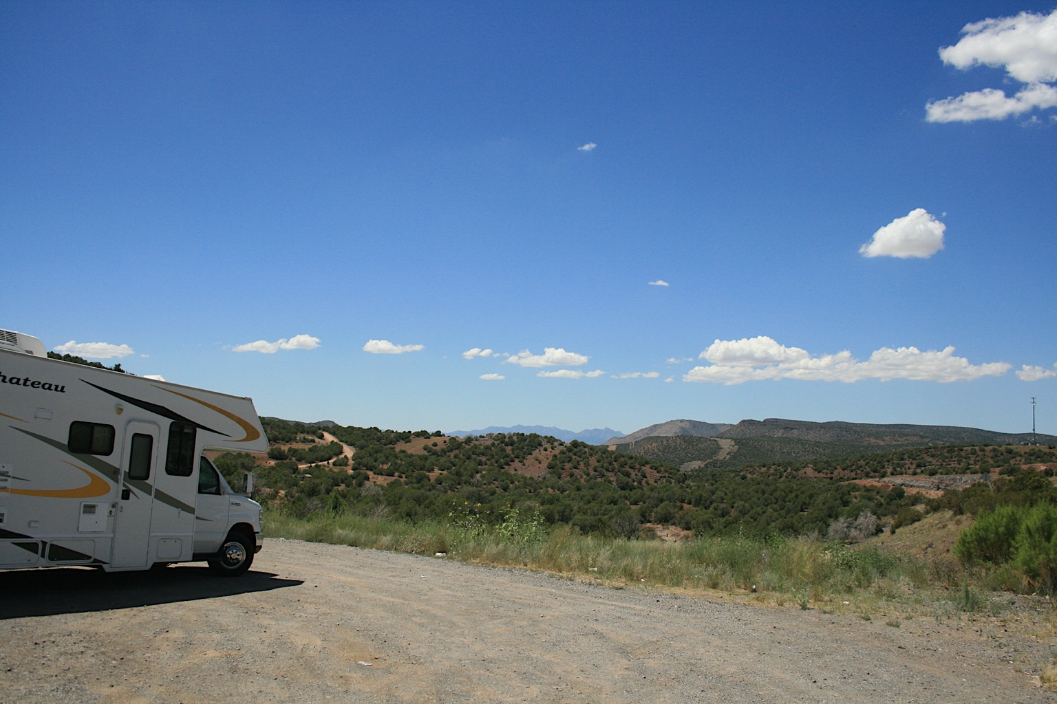 Na 70 km langs Kingsway en vervolgens nog 126 km oostwaarts richting Williams. Tussen de middag zoeken we even een rustig plekje om te lunchen in de RV. Tegen drieën komen we al in Williams aan. Heerlijke temperatuur 28gr. Snel ons plekje ingenomen en alles aangesloten. Dat doen we tegenwoordig binnen 3 minuten.
