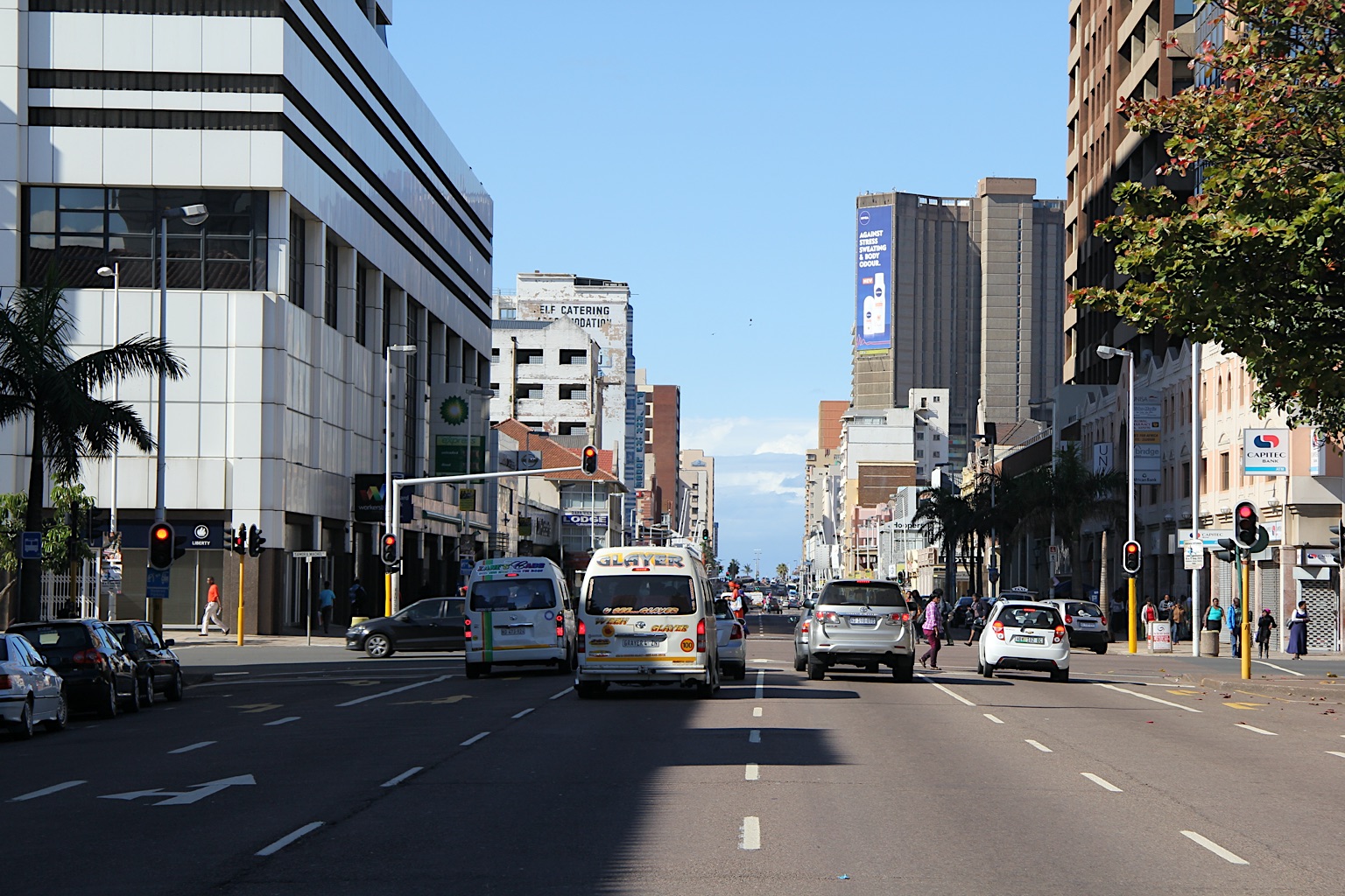 Druk, erg druk zeg maar rustig. Soms wel wat beangstigend eerlijk gezegd. Heel veel donkere medemensen die ons als rariteit bekijken. Slechts 9% in deze stad is blank. Weten we ook eens hoe dat voelt. Durban is groot en niet geweldig mooi. Geen bijzonderheden te zien. Na twee uurtjes heb ik het wel gezien.