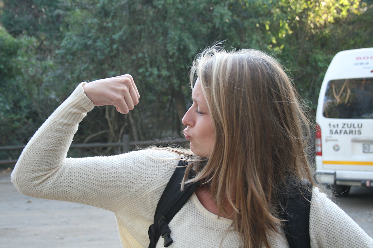 We besluiten om 11 uur naar het Zulu dorp te gaan en ’s middags om 16uur naar de cat rehabilitation. Als het tegen elven loopt, het Zlu dopmis hier maar een paar minuutjes vandaan, hebben de kids ineens geen zin meer. We besluiten dus maar samen te gaan.