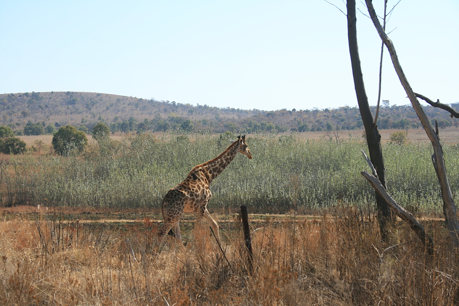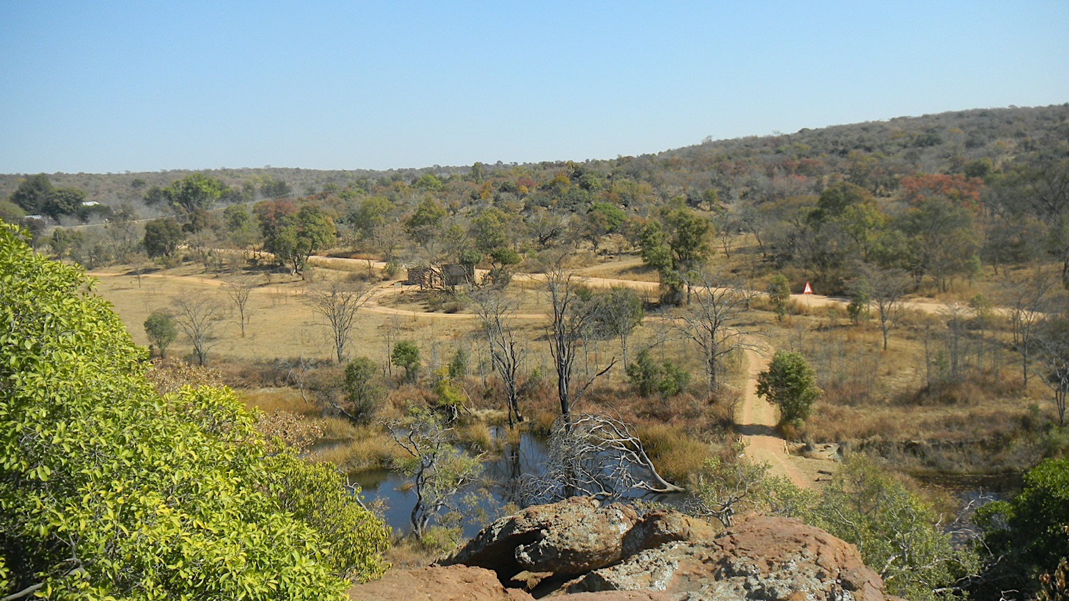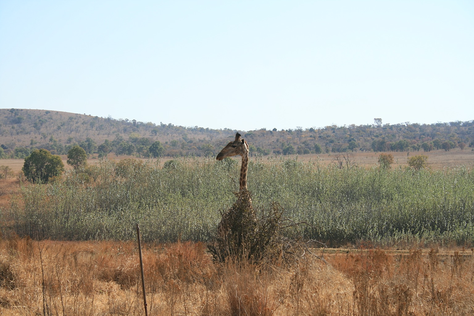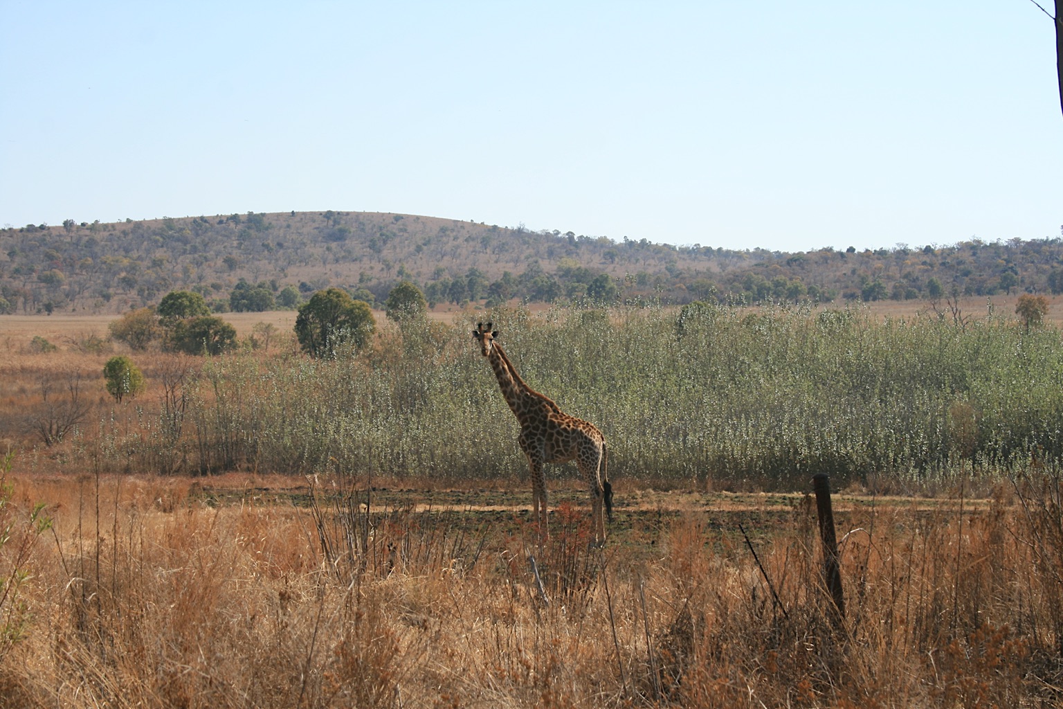 Als mijn zonnebril is teruggevonden kunnen we eindelijk vertrekken in onze rode Kia. Rutger rijdt het eerste stuk, het gaat hem prima af. We moeten vandaag ongeveer 350km afleggen naar Hannah Game Lodge in Ohrigstad. Veel te zien onderweg. het is doorgaans wel dor en kaal. Allemaal prachtige oude Nederlandse namen, waarvan Hongerland wel de markantste is. Deze naam is gegeven door de Voortrekkers die daar maar geen goede oogst konden krijgen.