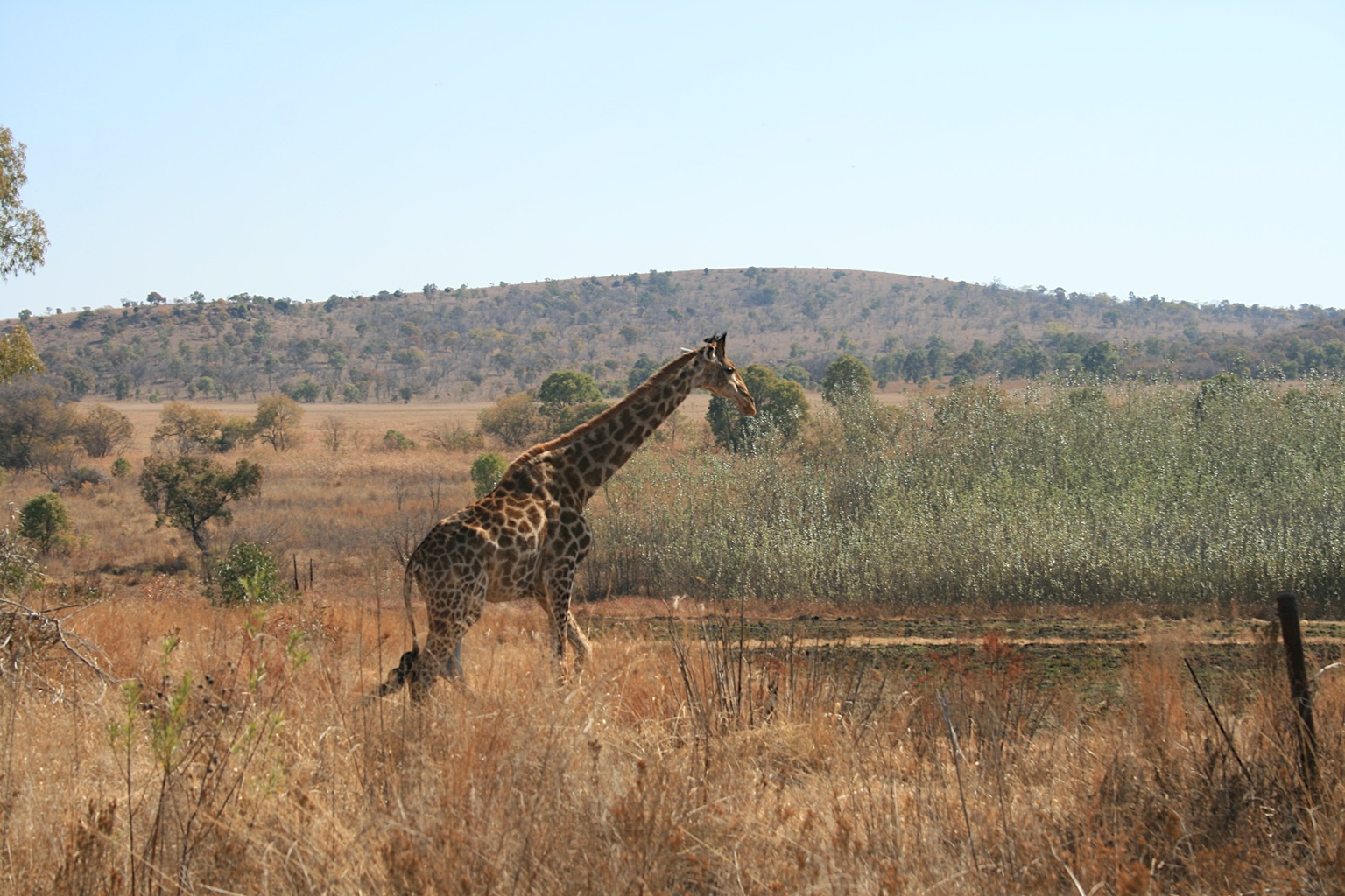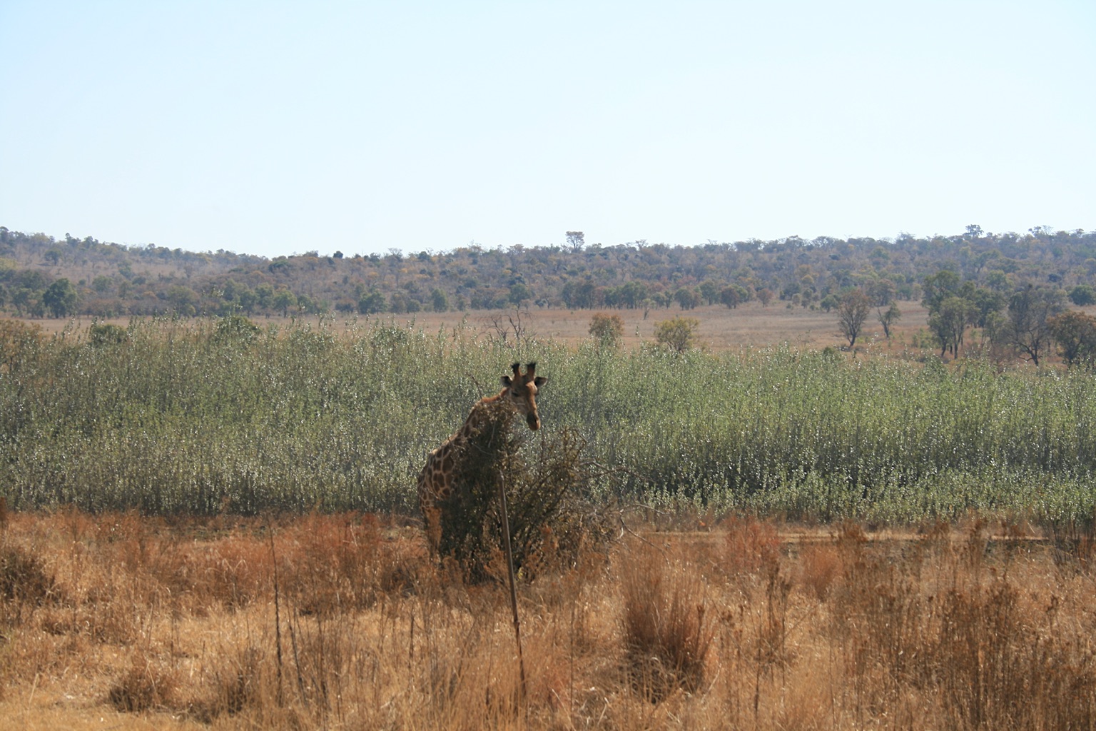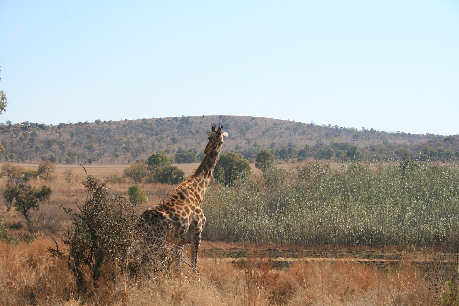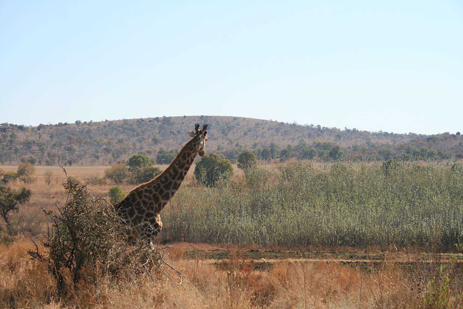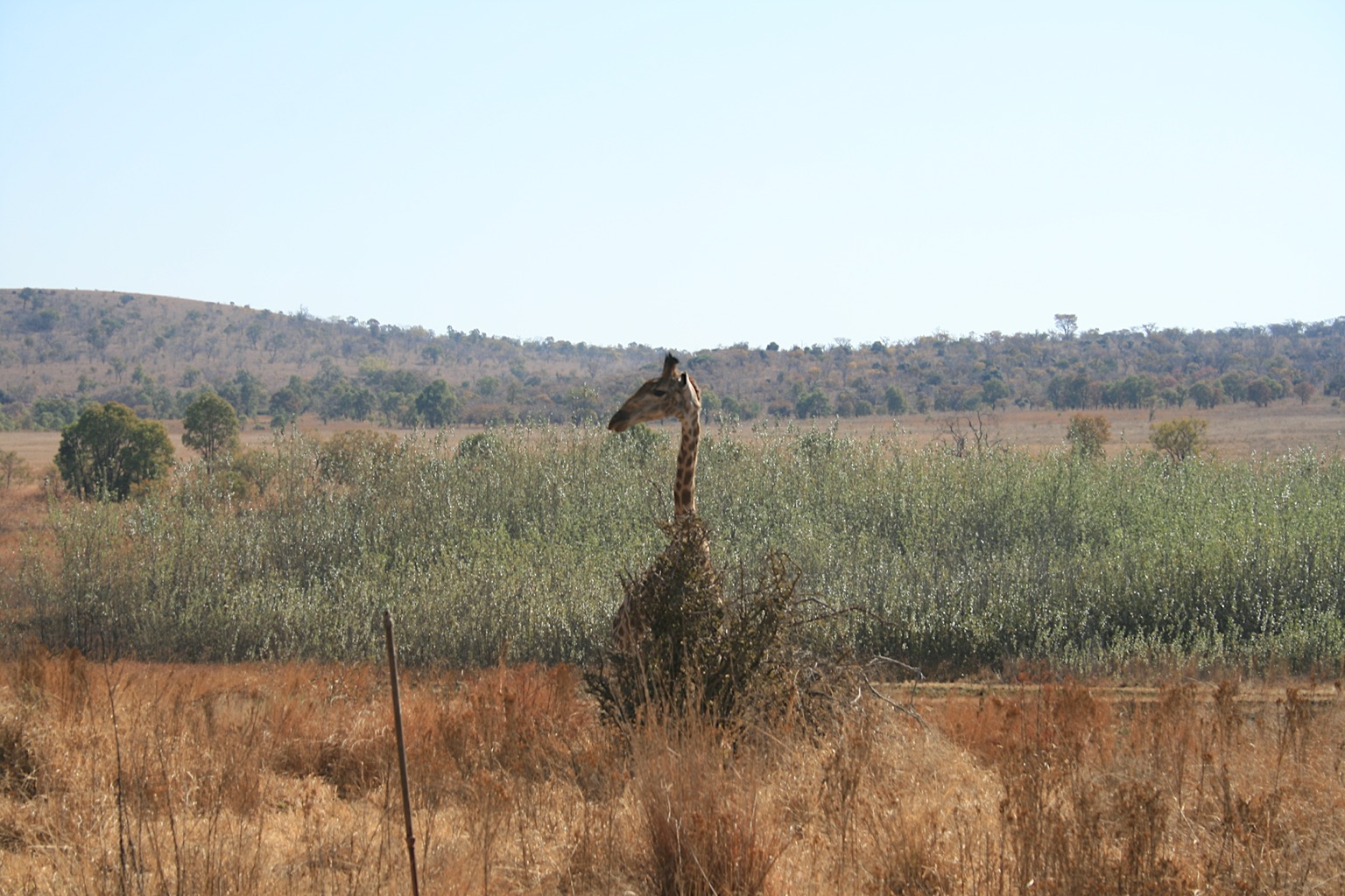 Als mijn zonnebril is teruggevonden kunnen we eindelijk vertrekken in onze rode Kia. Rutger rijdt het eerste stuk, het gaat hem prima af. We moeten vandaag ongeveer 350km afleggen naar Hannah Game Lodge in Ohrigstad. Veel te zien onderweg. het is doorgaans wel dor en kaal. Allemaal prachtige oude Nederlandse namen, waarvan Hongerland wel de markantste is. Deze naam is gegeven door de Voortrekkers die daar maar geen goede oogst konden krijgen.