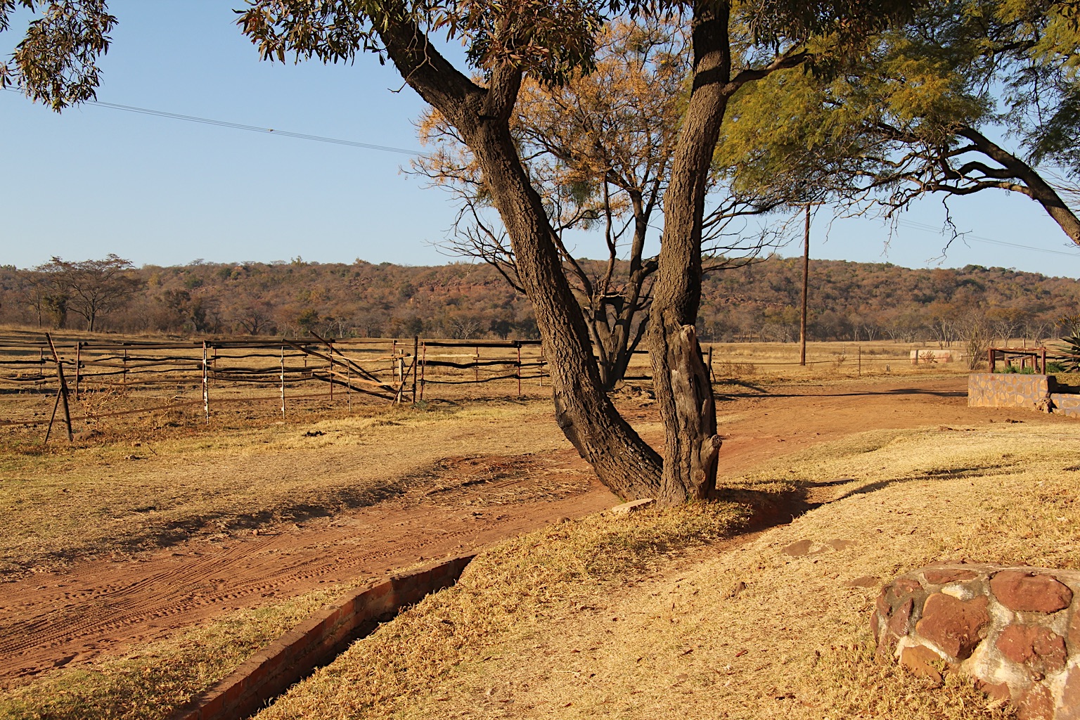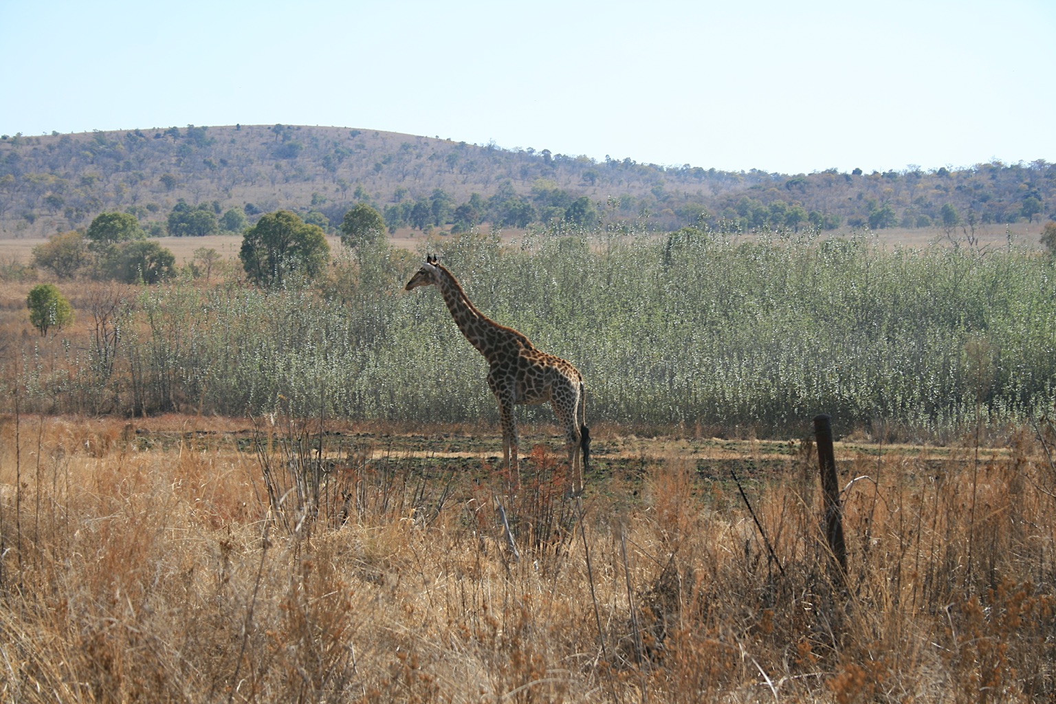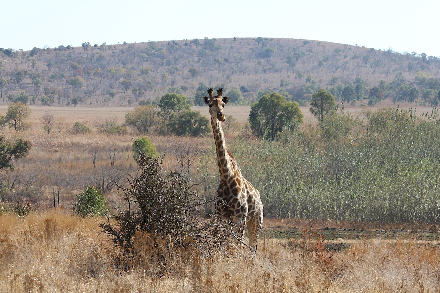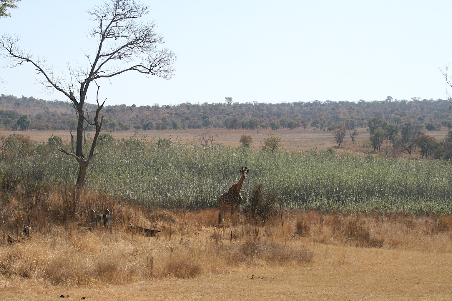 Als mijn zonnebril is teruggevonden kunnen we eindelijk vertrekken in onze rode Kia. Rutger rijdt het eerste stuk, het gaat hem prima af. We moeten vandaag ongeveer 350km afleggen naar Hannah Game Lodge in Ohrigstad. Veel te zien onderweg. het is doorgaans wel dor en kaal. Allemaal prachtige oude Nederlandse namen, waarvan Hongerland wel de markantste is. Deze naam is gegeven door de Voortrekkers die daar maar geen goede oogst konden krijgen.