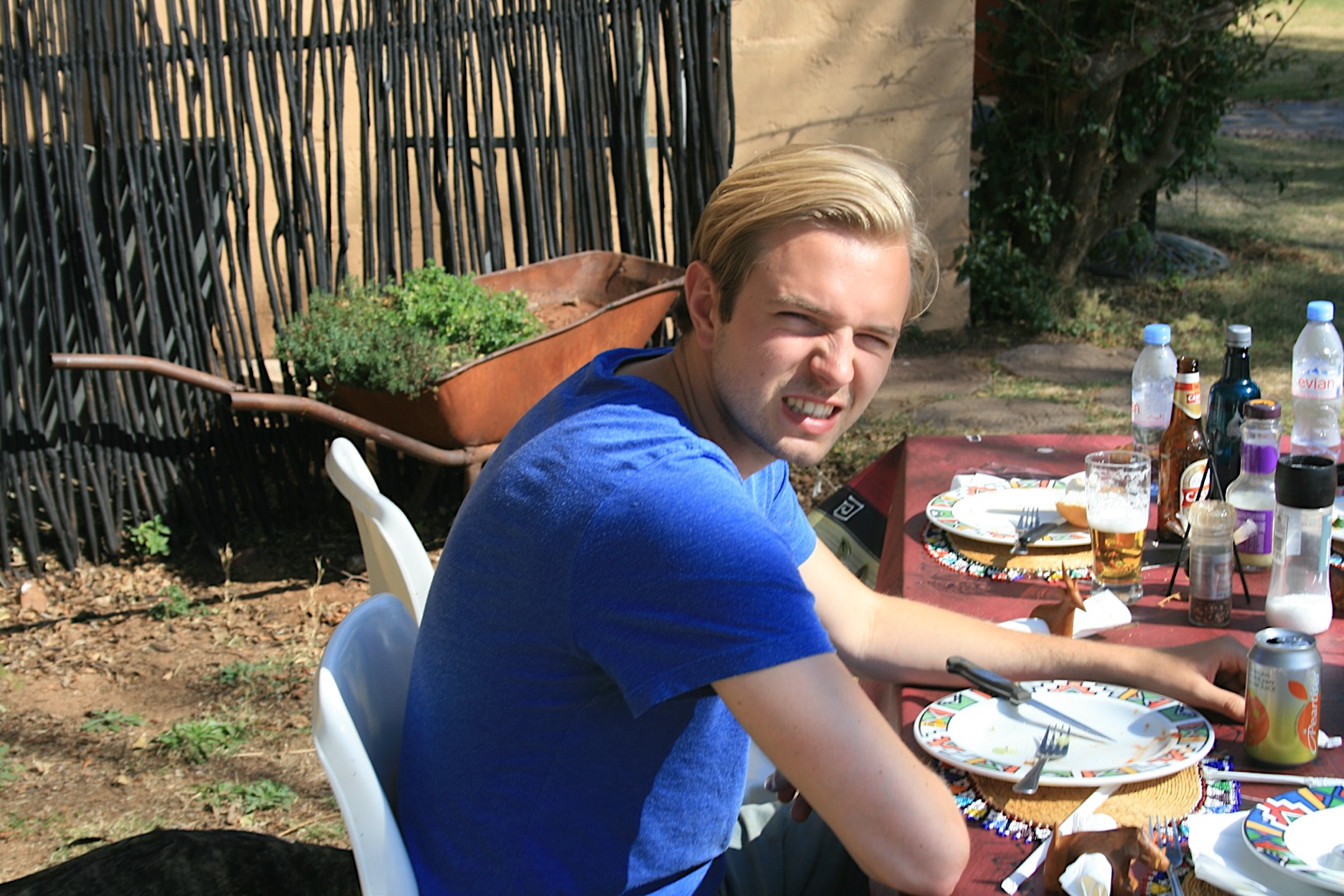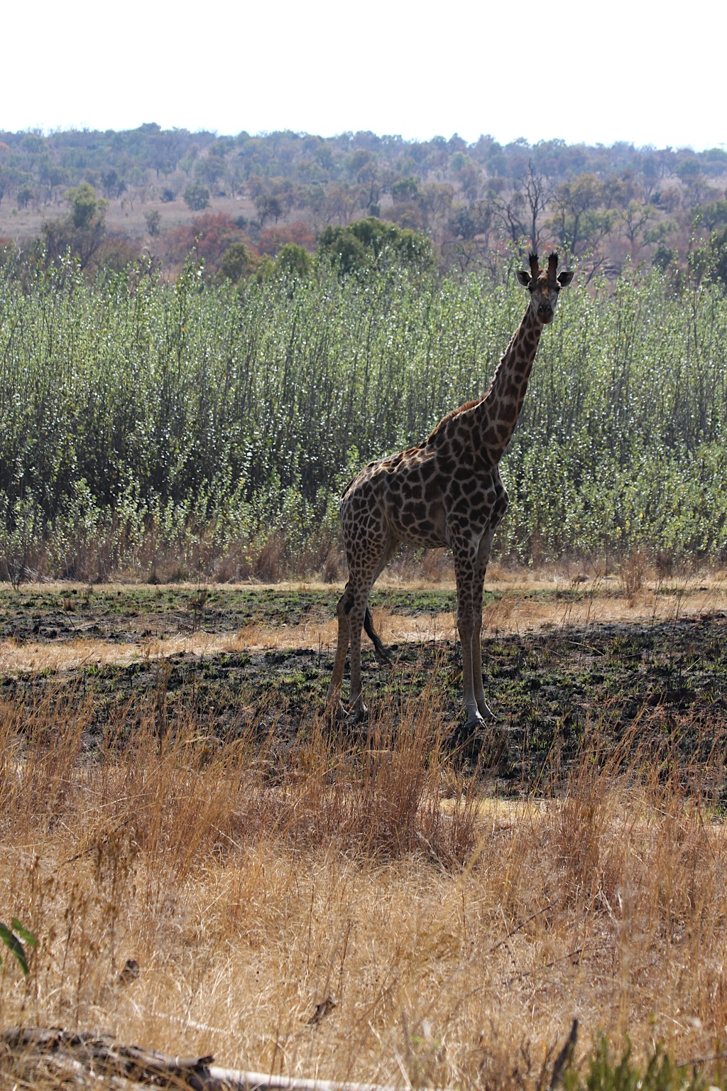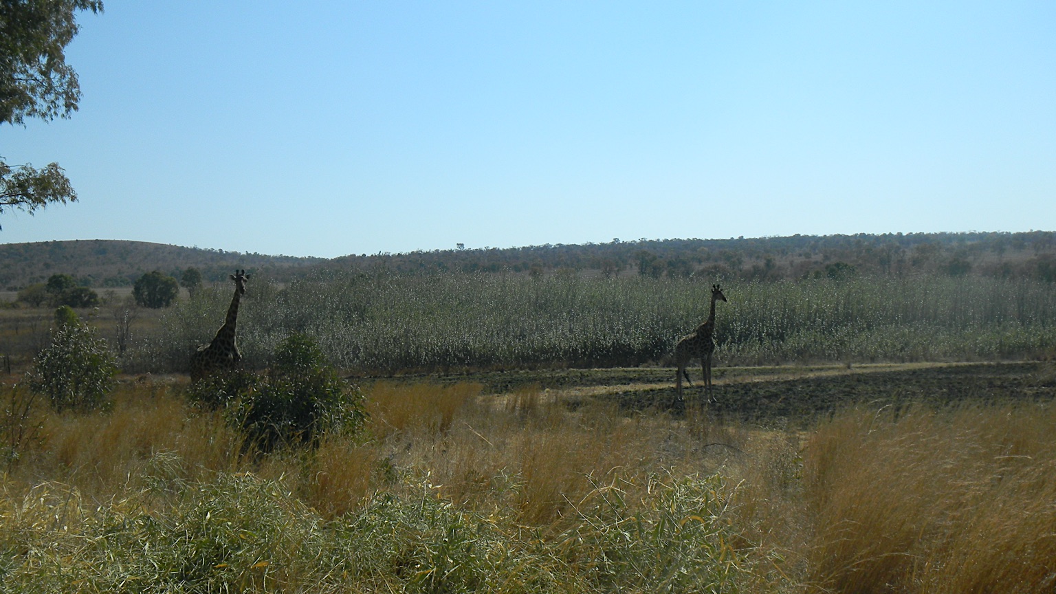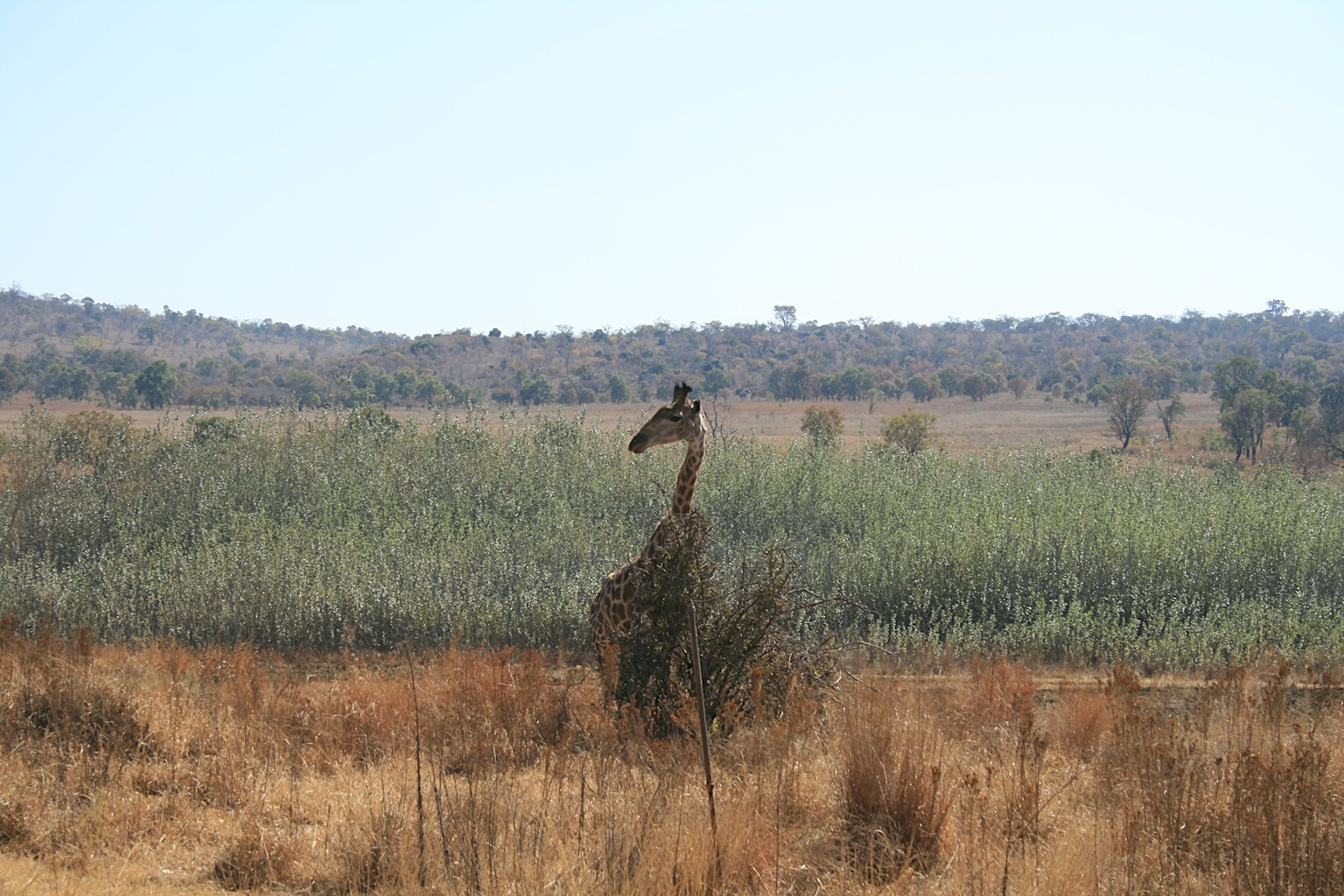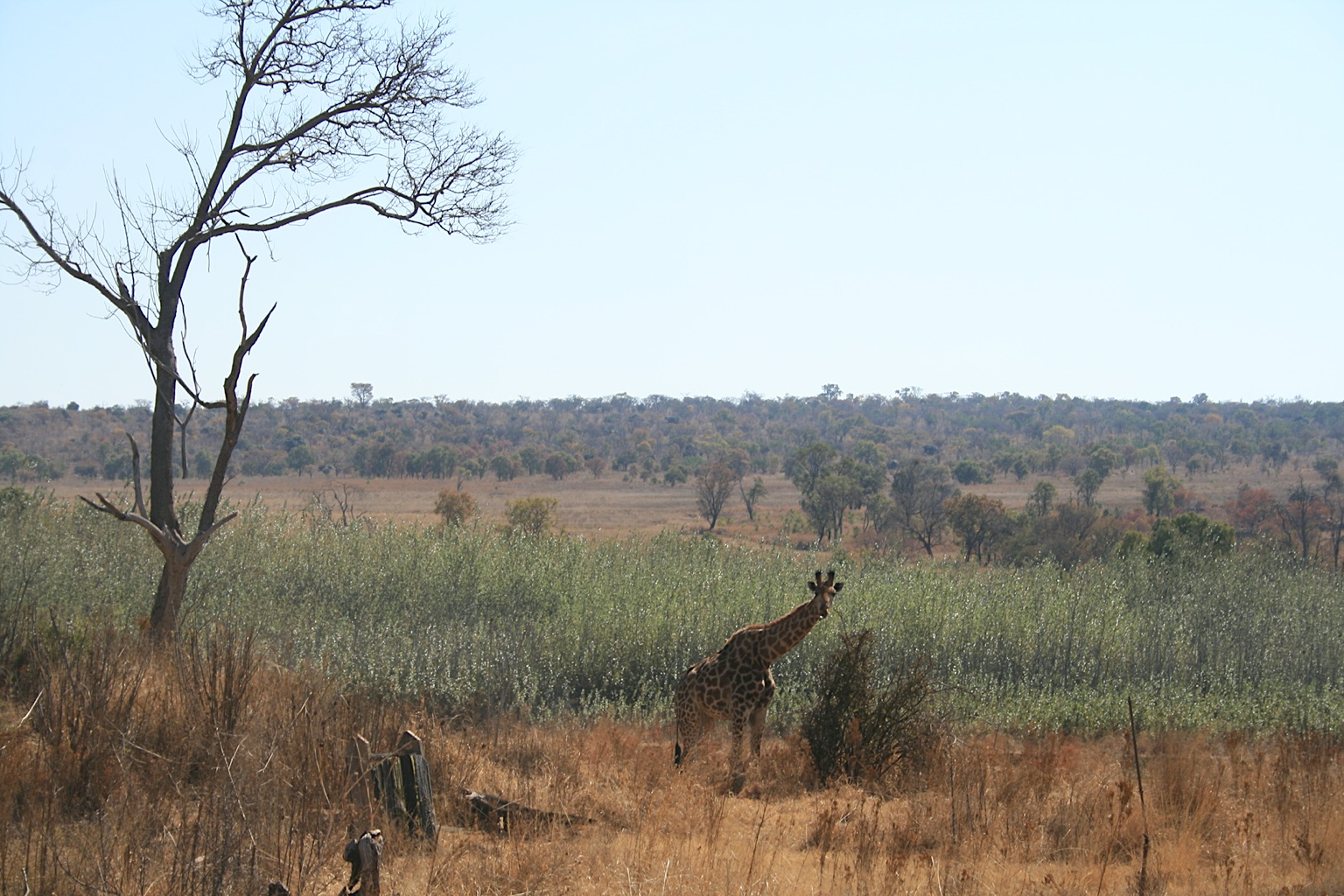 Als mijn zonnebril is teruggevonden kunnen we eindelijk vertrekken in onze rode Kia. Rutger rijdt het eerste stuk, het gaat hem prima af. We moeten vandaag ongeveer 350km afleggen naar Hannah Game Lodge in Ohrigstad. Veel te zien onderweg. het is doorgaans wel dor en kaal. Allemaal prachtige oude Nederlandse namen, waarvan Hongerland wel de markantste is. Deze naam is gegeven door de Voortrekkers die daar maar geen goede oogst konden krijgen.