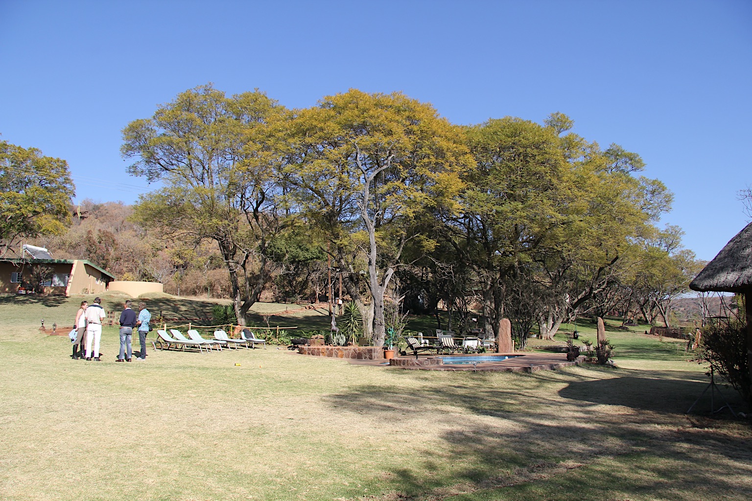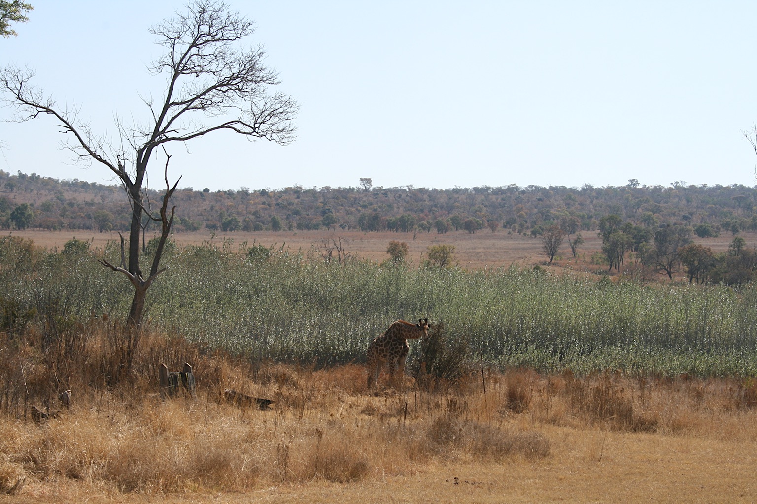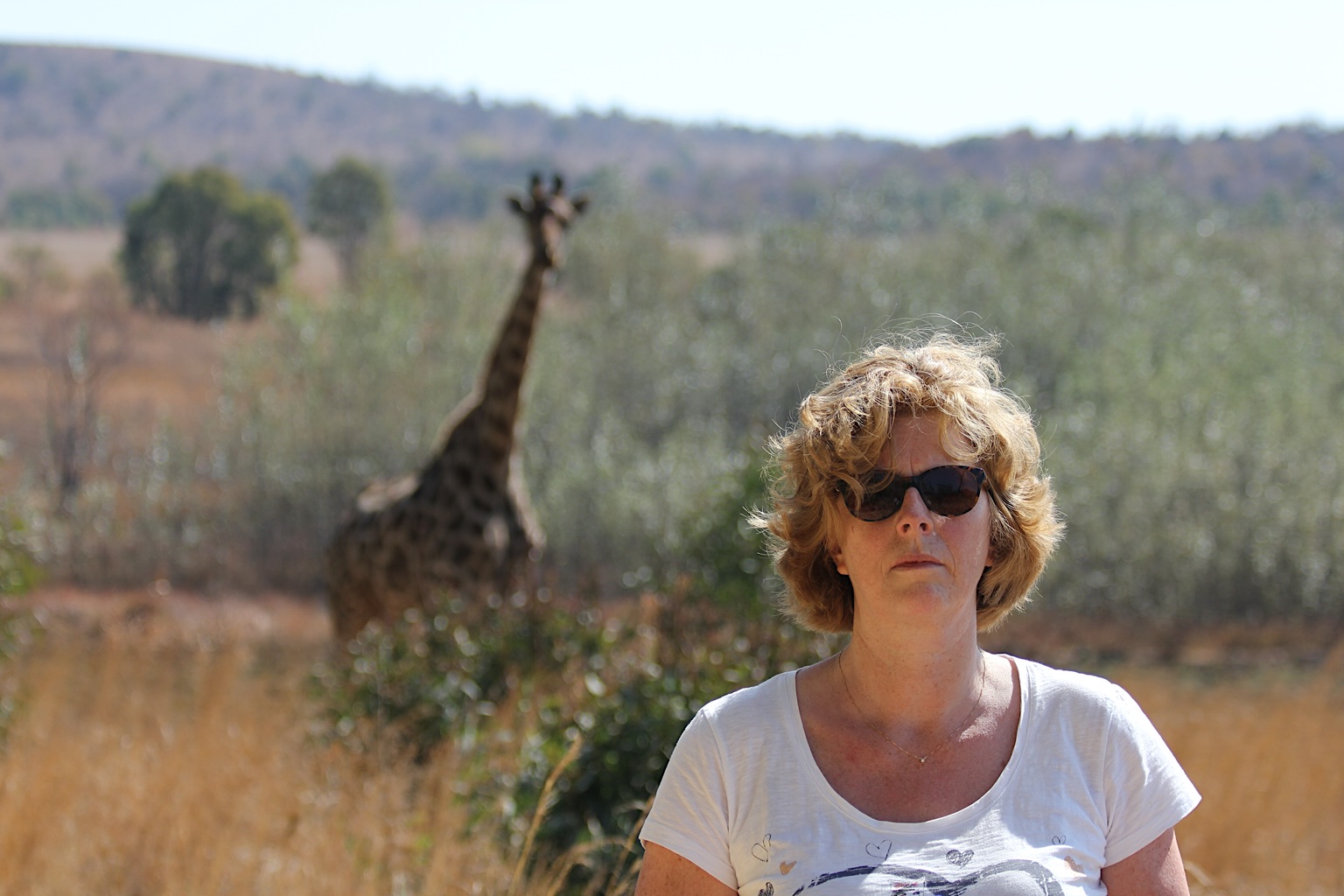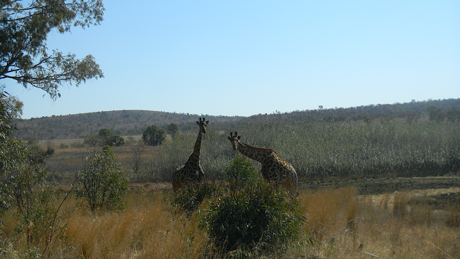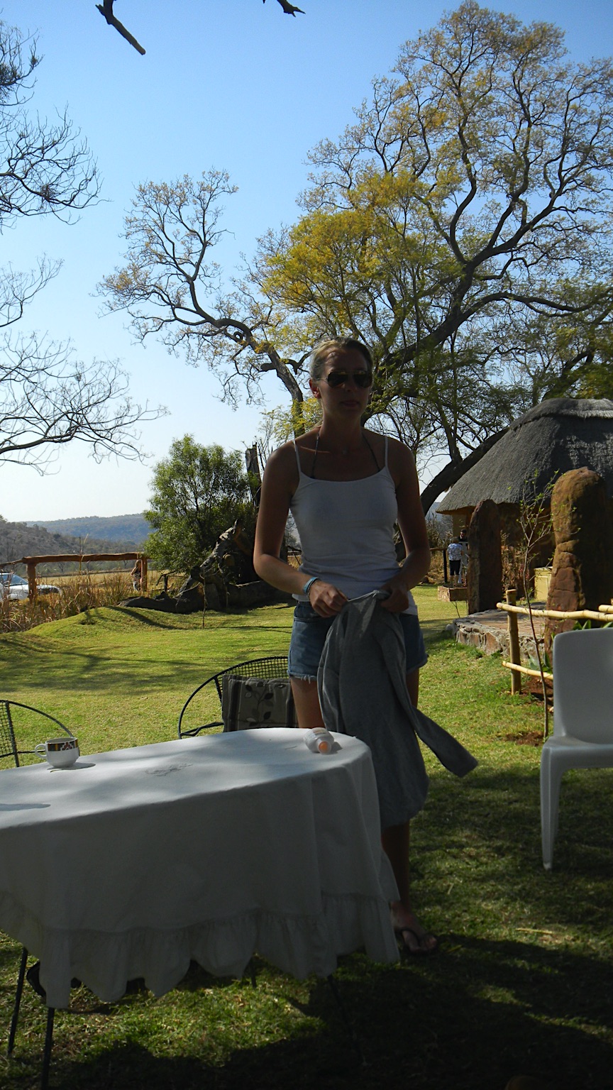 We lunchen na 200 km pannenkoeken in Dullstroom. Ik neem het stuur voor de laatste 100km over. Via Lydenburg ( de plaats waar de malarialijders van Ohrigstad zich verplicht moesten vestigen komen we bij de poort van Hannah Game Lodge. Na de poort rijden we nog 6km het wildpark in. Boven op een heuvel liggen de prachtige en ook luxe lodges. We hebben een prachtig uitzicht over het dal. We eten in het restaurant van Hannah.