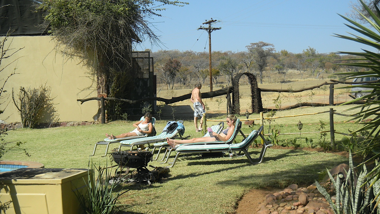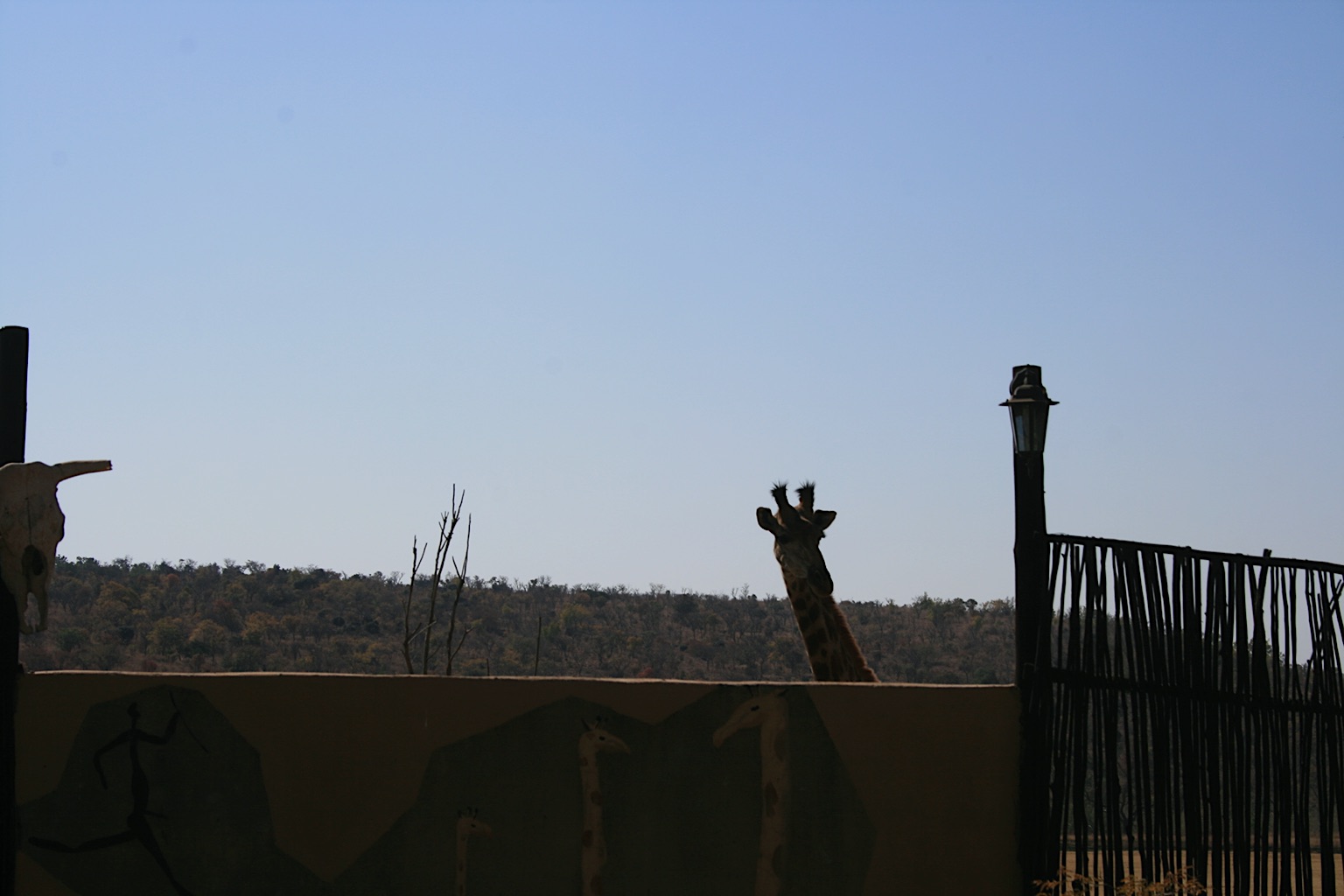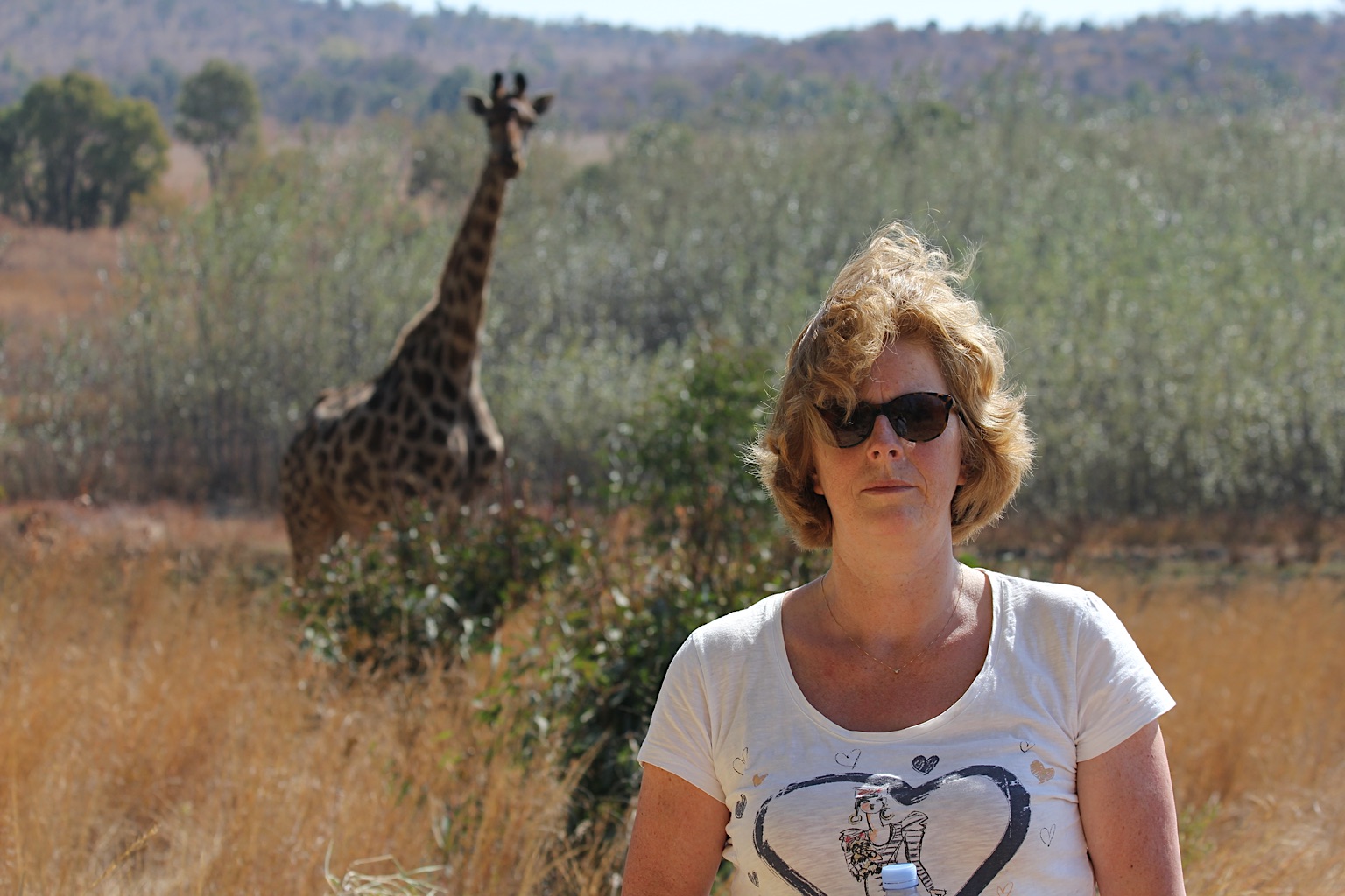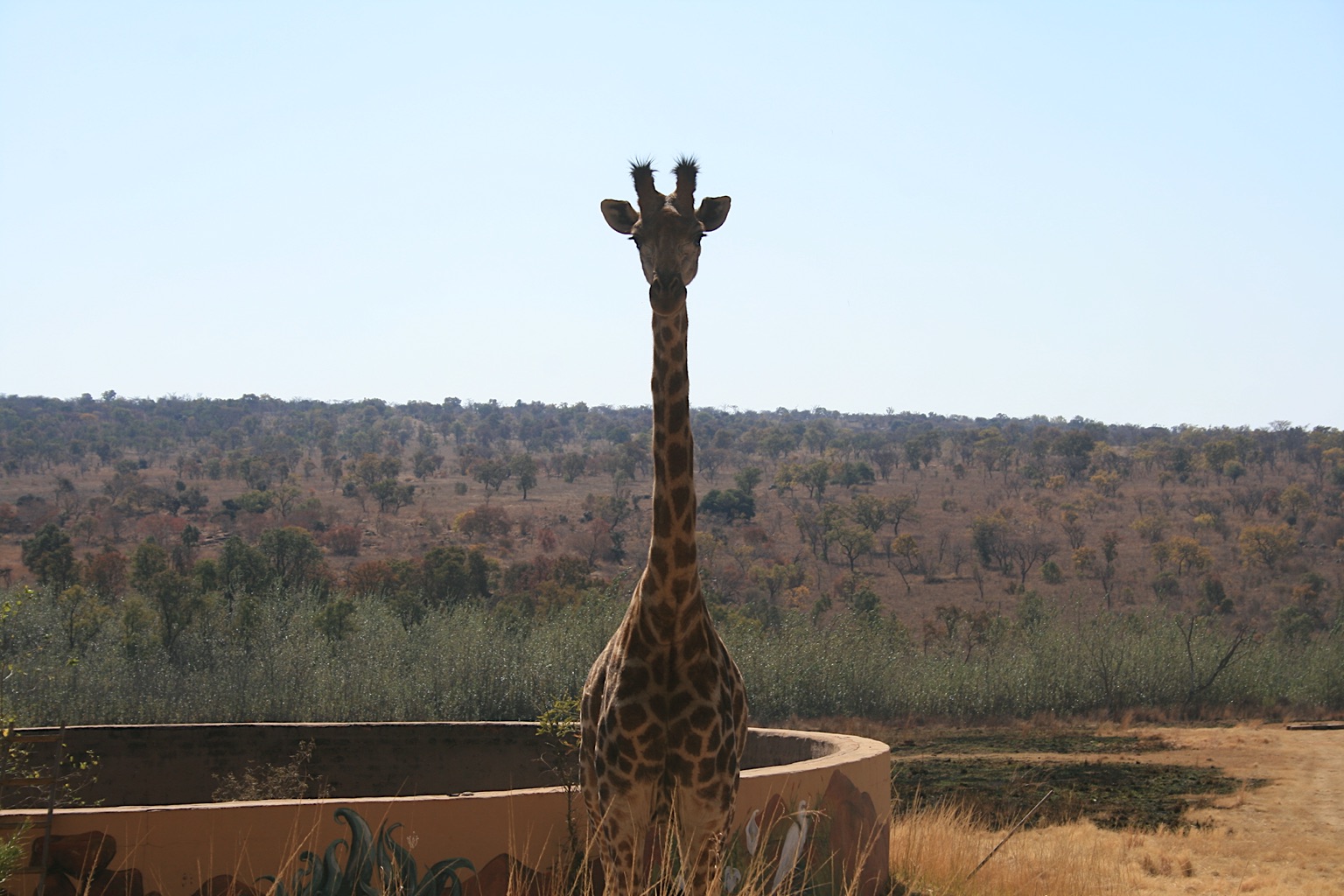 We lunchen na 200 km pannenkoeken in Dullstroom. Ik neem het stuur voor de laatste 100km over. Via Lydenburg ( de plaats waar de malarialijders van Ohrigstad zich verplicht moesten vestigen komen we bij de poort van Hannah Game Lodge. Na de poort rijden we nog 6km het wildpark in. Boven op een heuvel liggen de prachtige en ook luxe lodges. We hebben een prachtig uitzicht over het dal. We eten in het restaurant van Hannah.