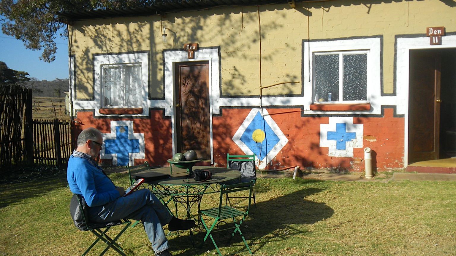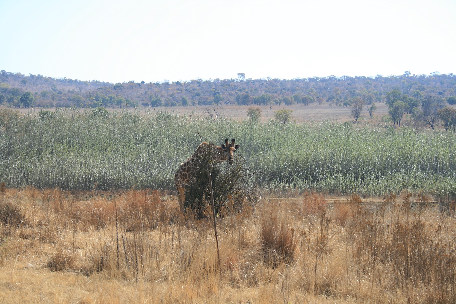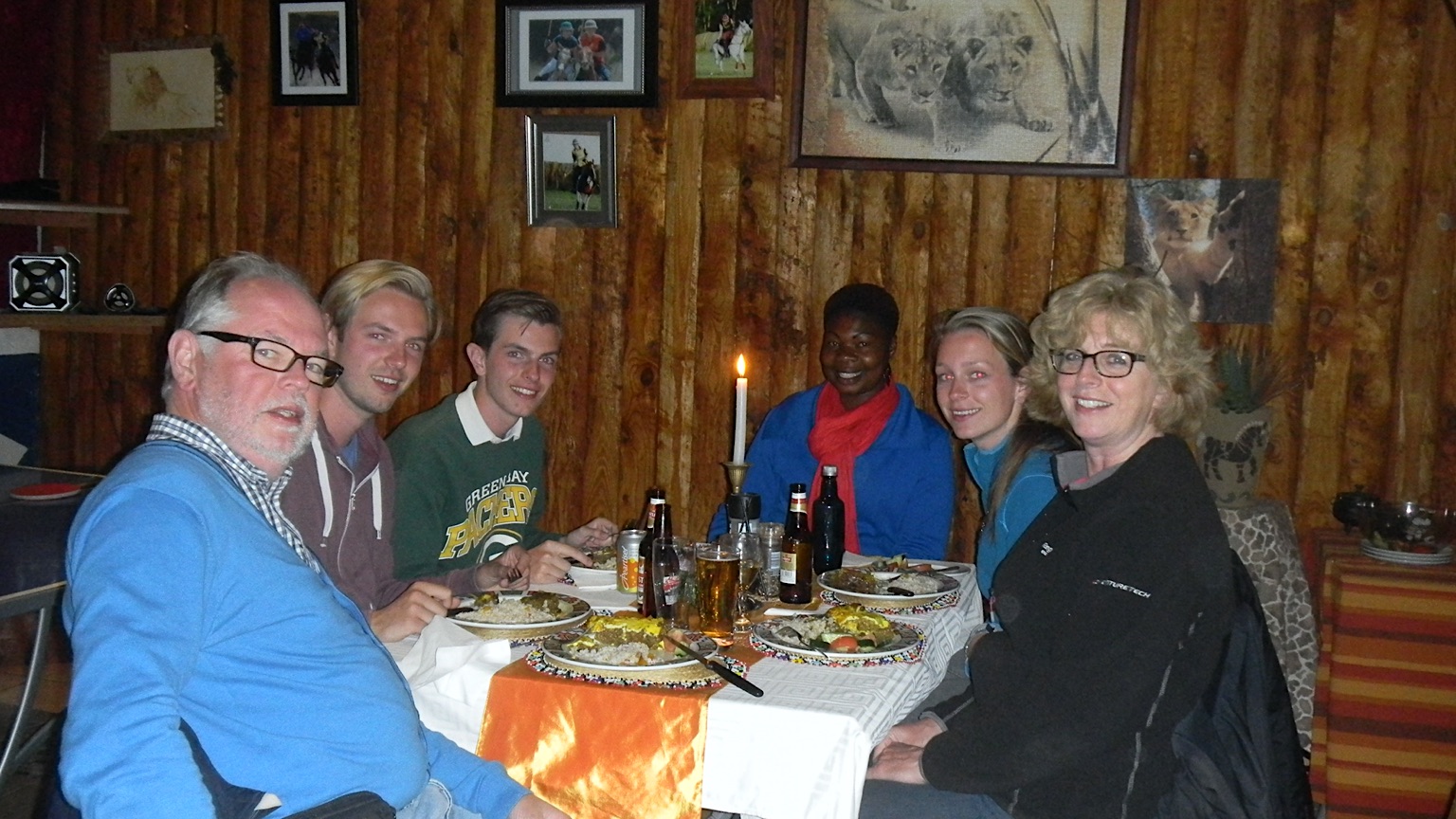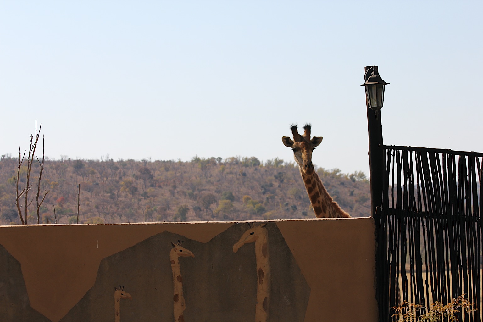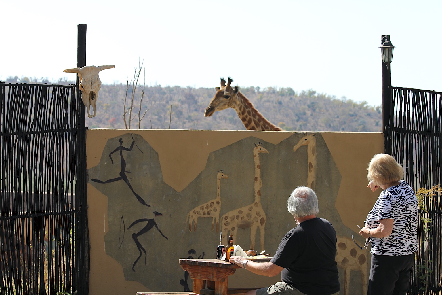 We lunchen na 200 km pannenkoeken in Dullstroom. Ik neem het stuur voor de laatste 100km over. Via Lydenburg ( de plaats waar de malarialijders van Ohrigstad zich verplicht moesten vestigen komen we bij de poort van Hannah Game Lodge. Na de poort rijden we nog 6km het wildpark in. Boven op een heuvel liggen de prachtige en ook luxe lodges. We hebben een prachtig uitzicht over het dal. We eten in het restaurant van Hannah.