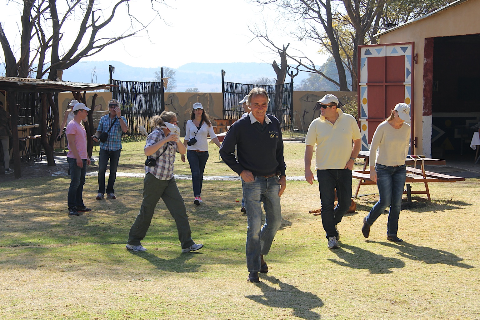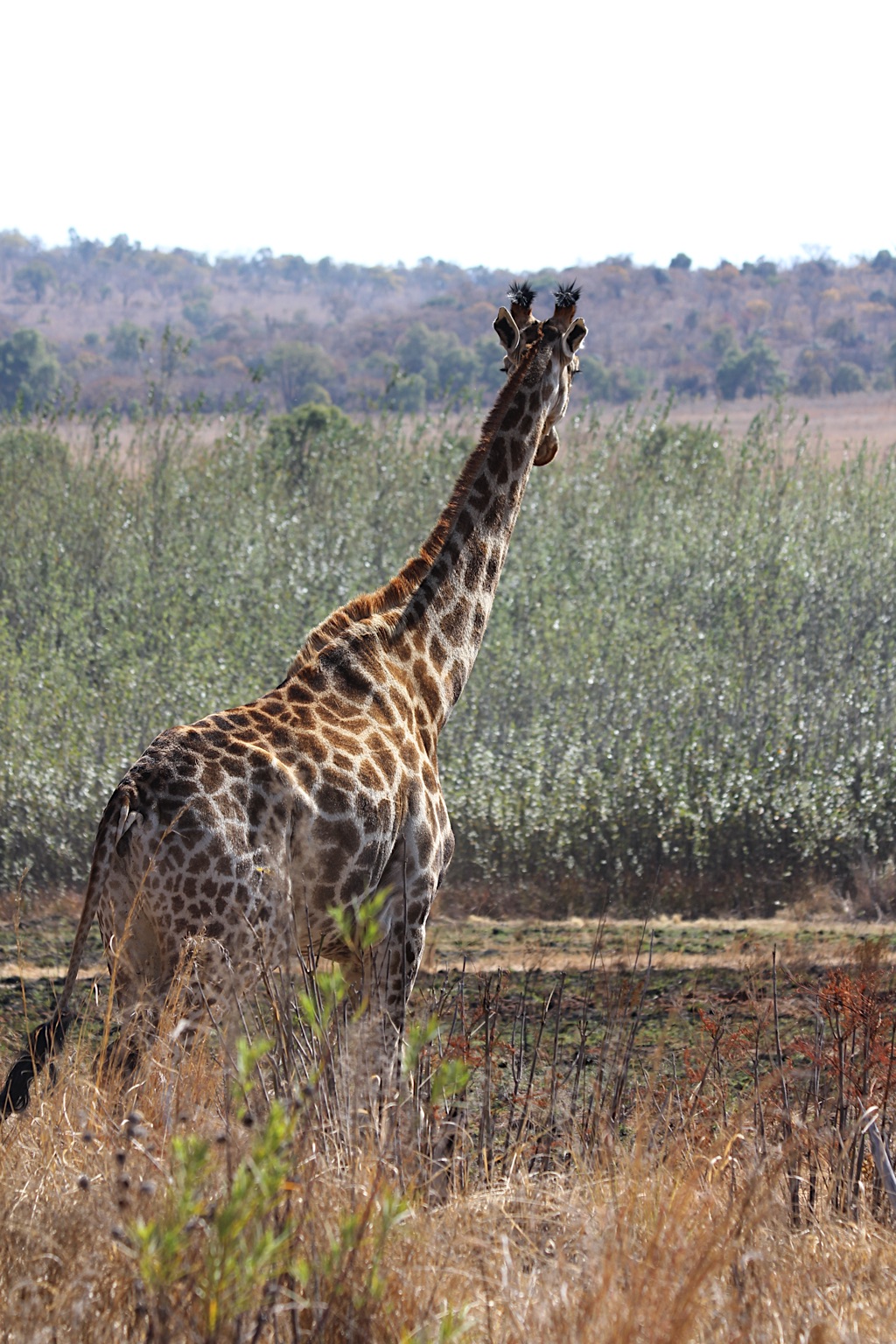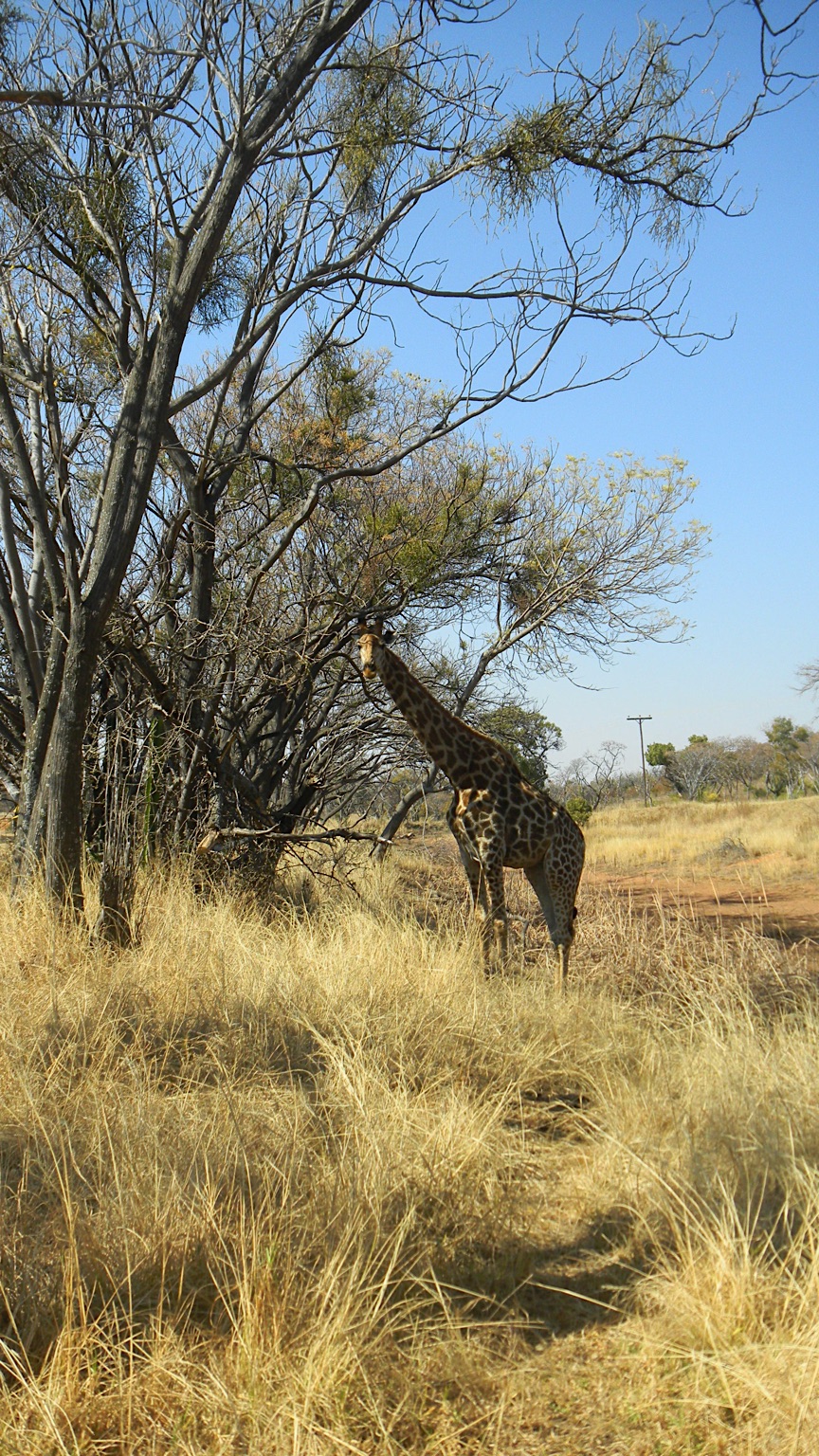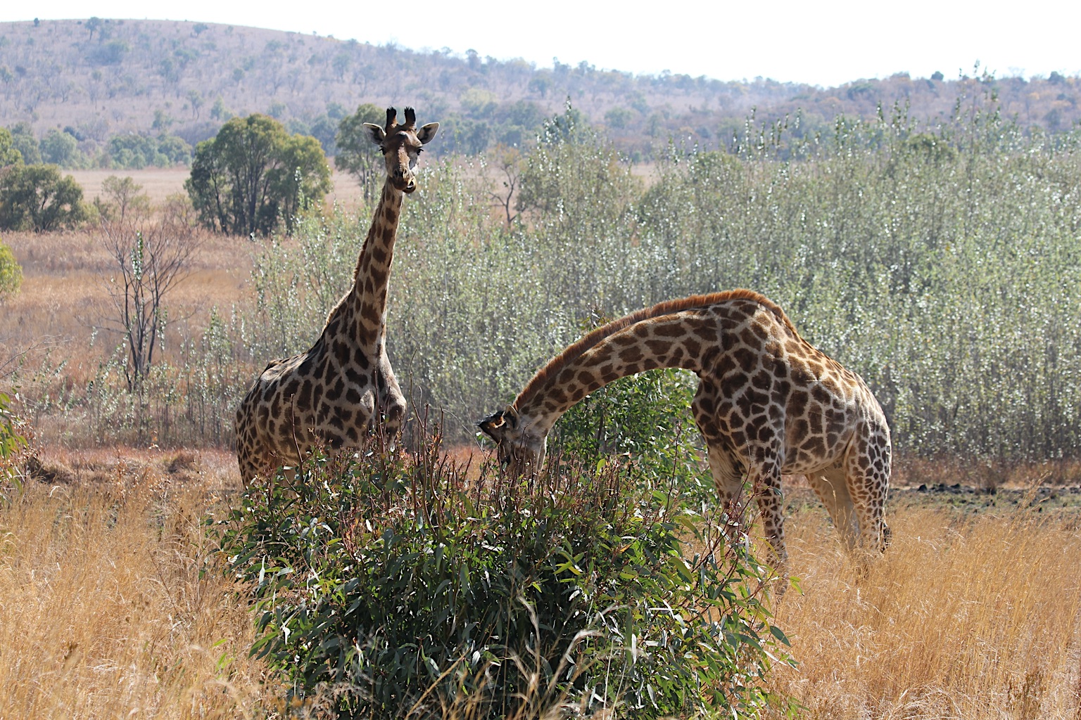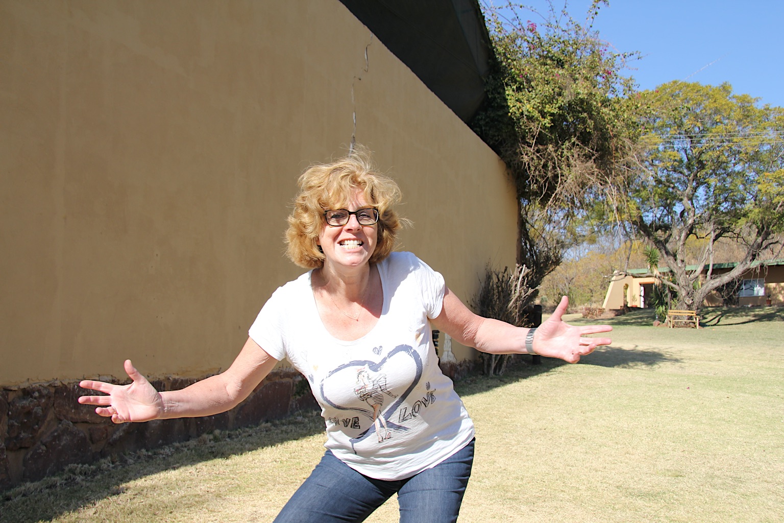 We lunchen na 200 km pannenkoeken in Dullstroom. Ik neem het stuur voor de laatste 100km over. Via Lydenburg ( de plaats waar de malarialijders van Ohrigstad zich verplicht moesten vestigen komen we bij de poort van Hannah Game Lodge. Na de poort rijden we nog 6km het wildpark in. Boven op een heuvel liggen de prachtige en ook luxe lodges. We hebben een prachtig uitzicht over het dal. We eten in het restaurant van Hannah.